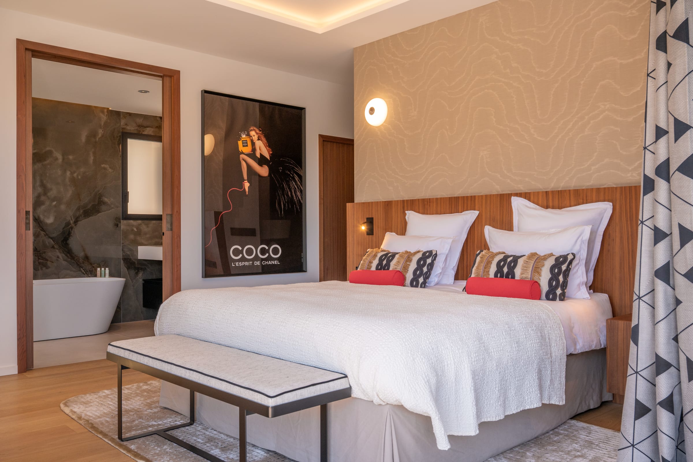 Suite 3: modular bed 180 x 200 cm, composed of 2 mattresses of 90 x 200 cm (double configuration or separate beds)