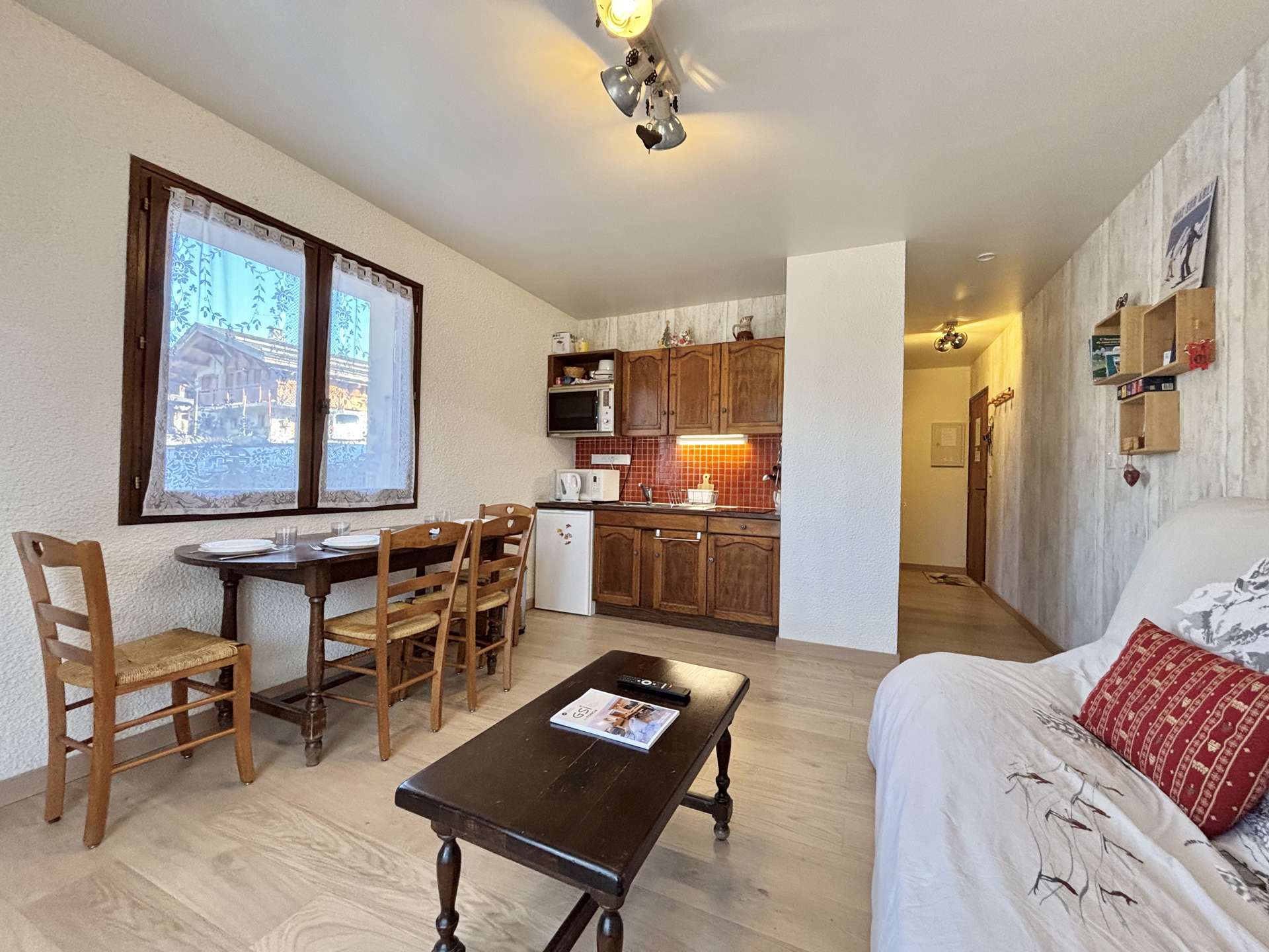 It is ideally located, 50 metres from the slopes, shops and village centre.