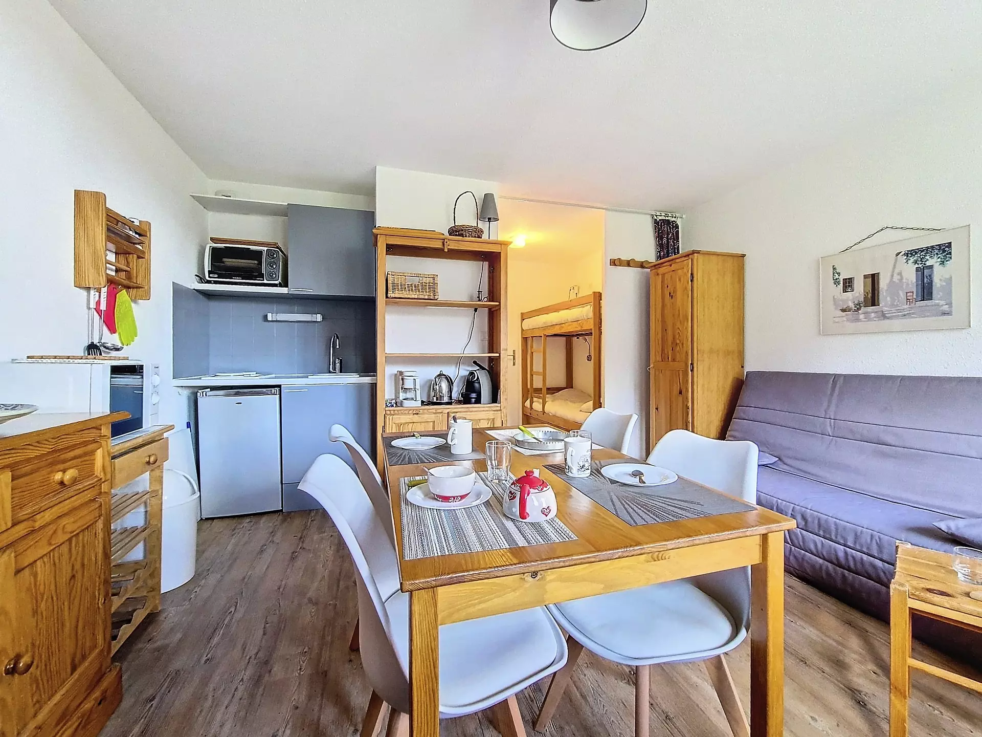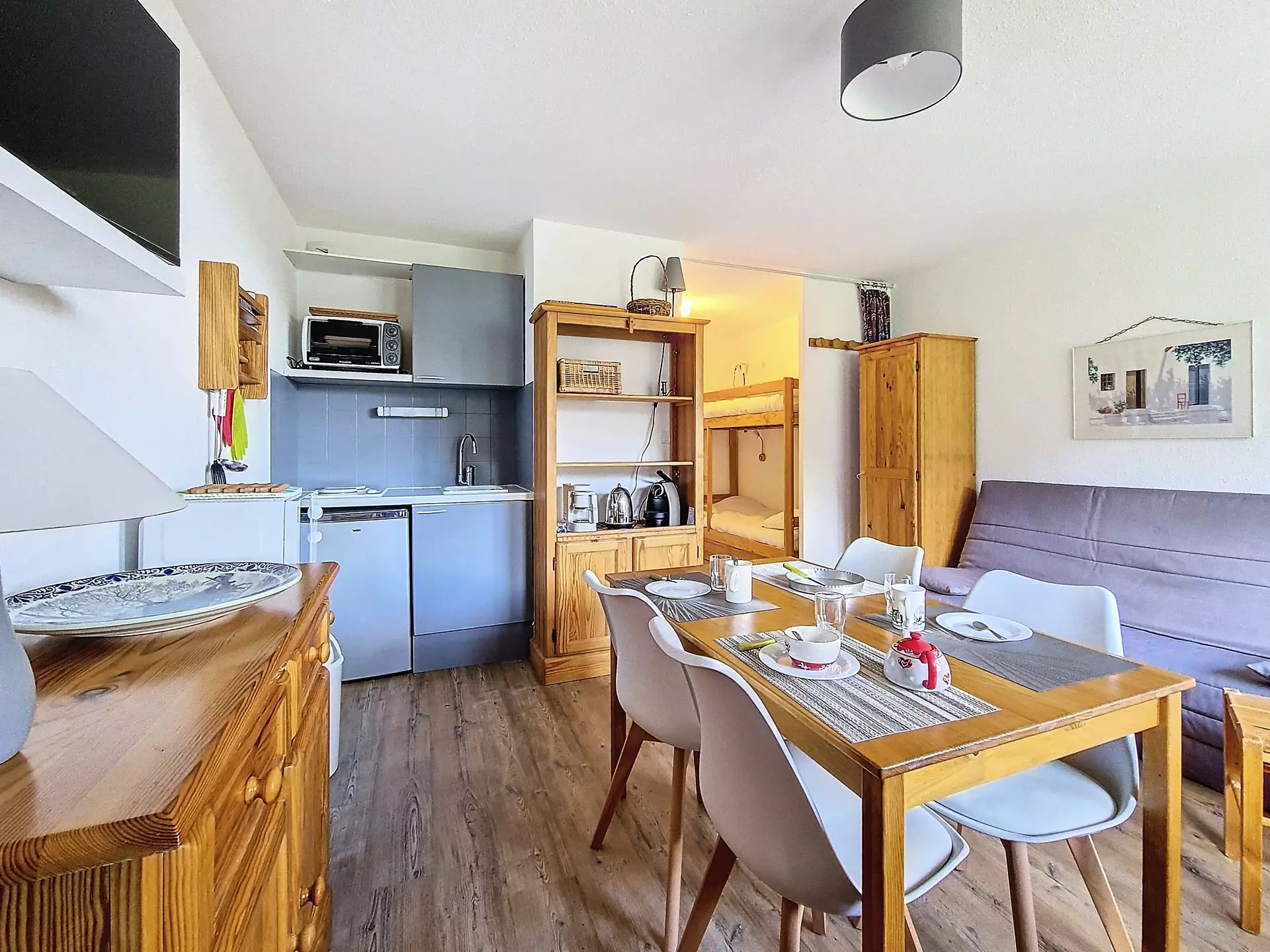 Mountain corner (entrance separated from the living room by a curtain): 2 single bunk beds.