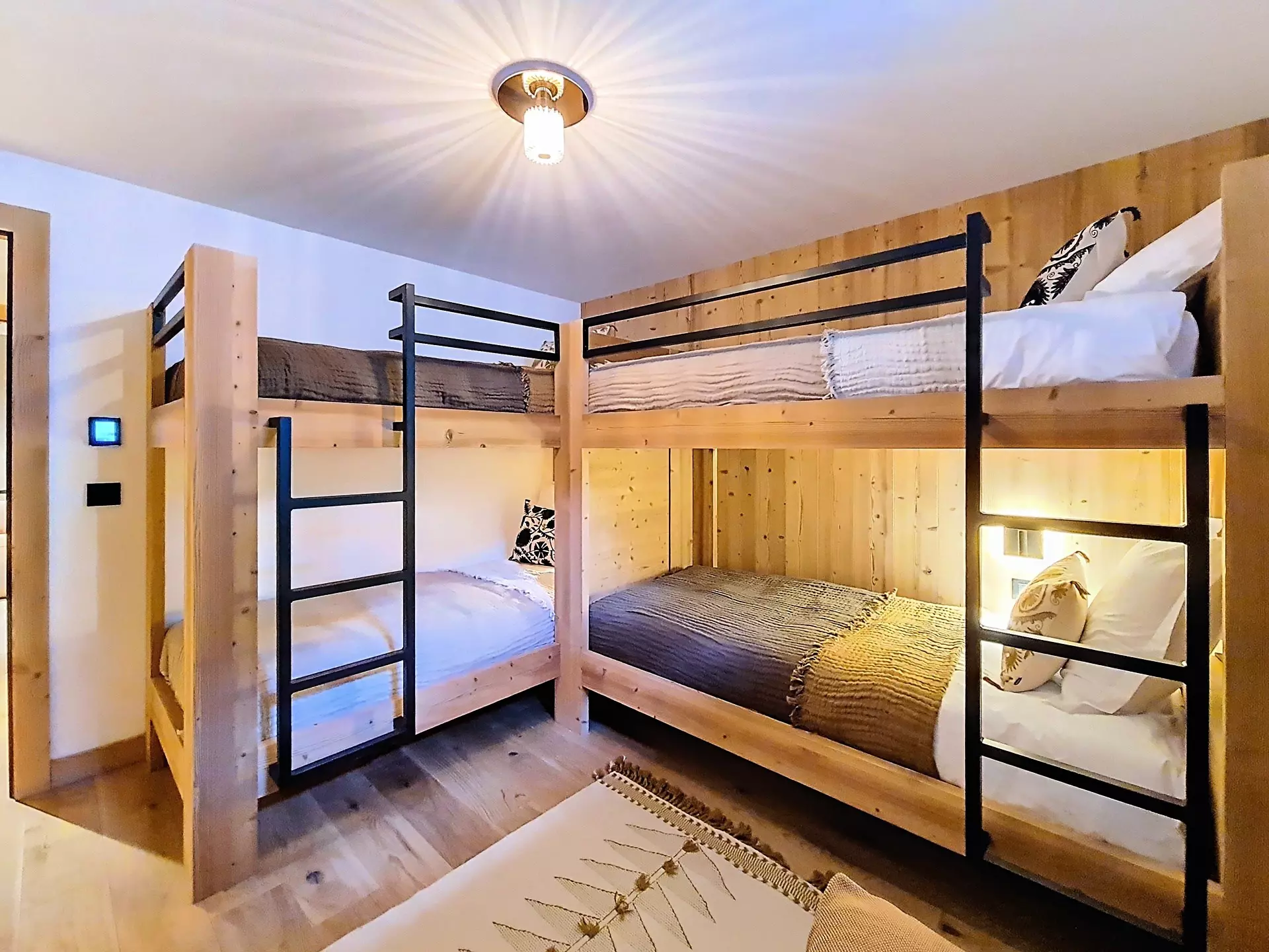 Bedroom 3 en suite: 2 x 2 bunk beds with its adjoining shower room and washbasin.