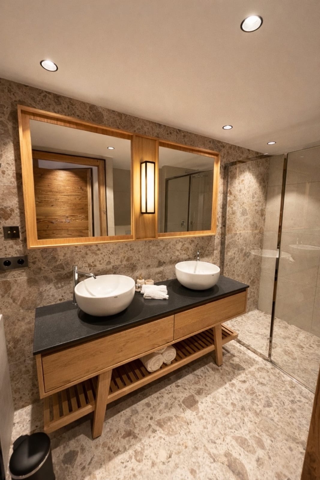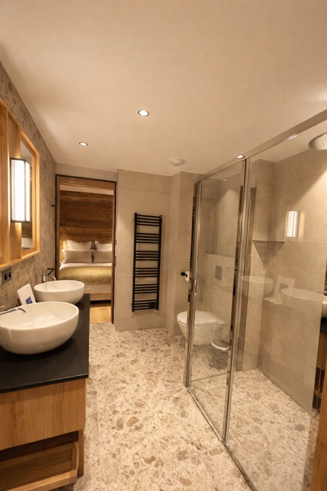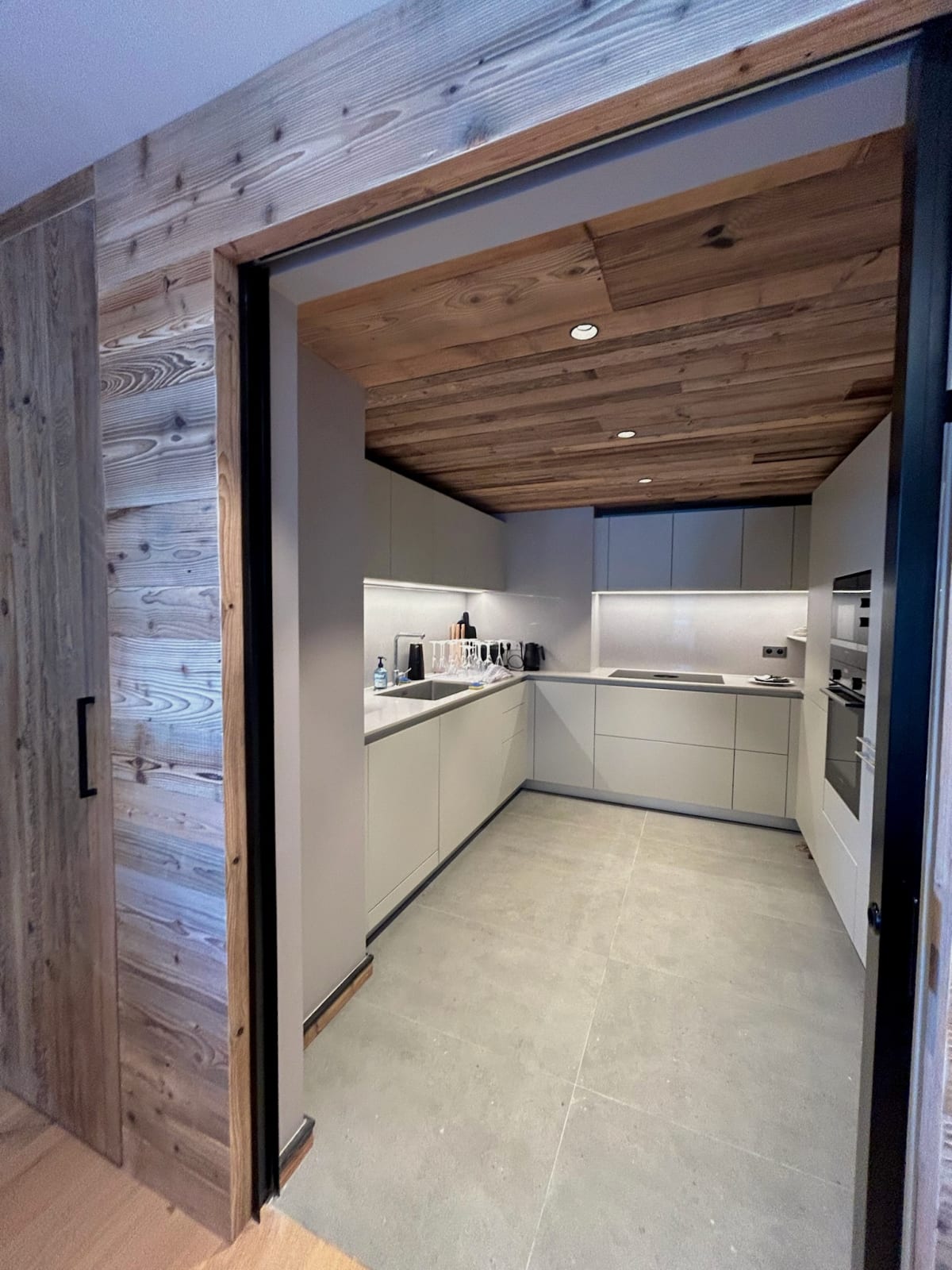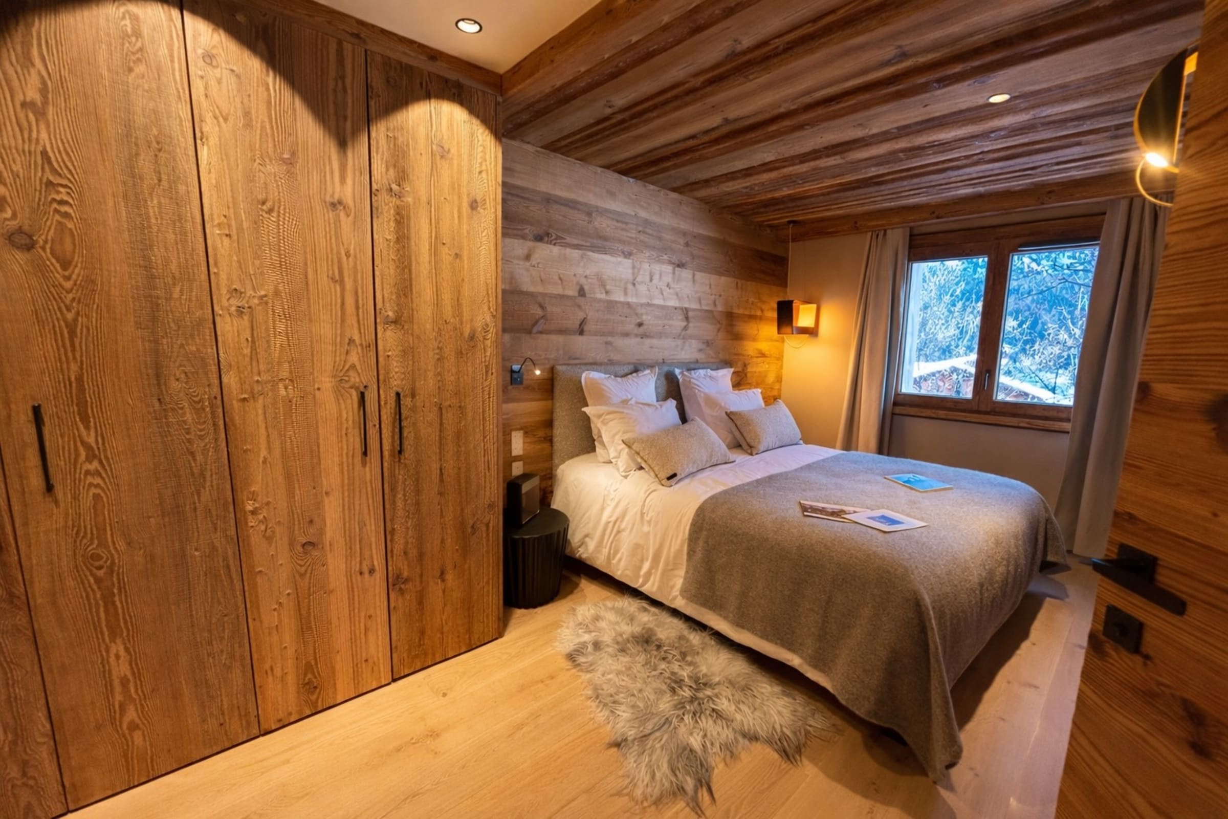 In Méribel (Morel area), Alpenglow is a stylish 125 m² apartment on the floor of a high-end residence, close to shops and around 100 m from the Morel chairlift. It features a warm alpine atmosphere with aged wood finishes, a bright living room with an ethanol fireplace, a fully equipped kitchen, a dining area, and a terrace with stunning mountain views.