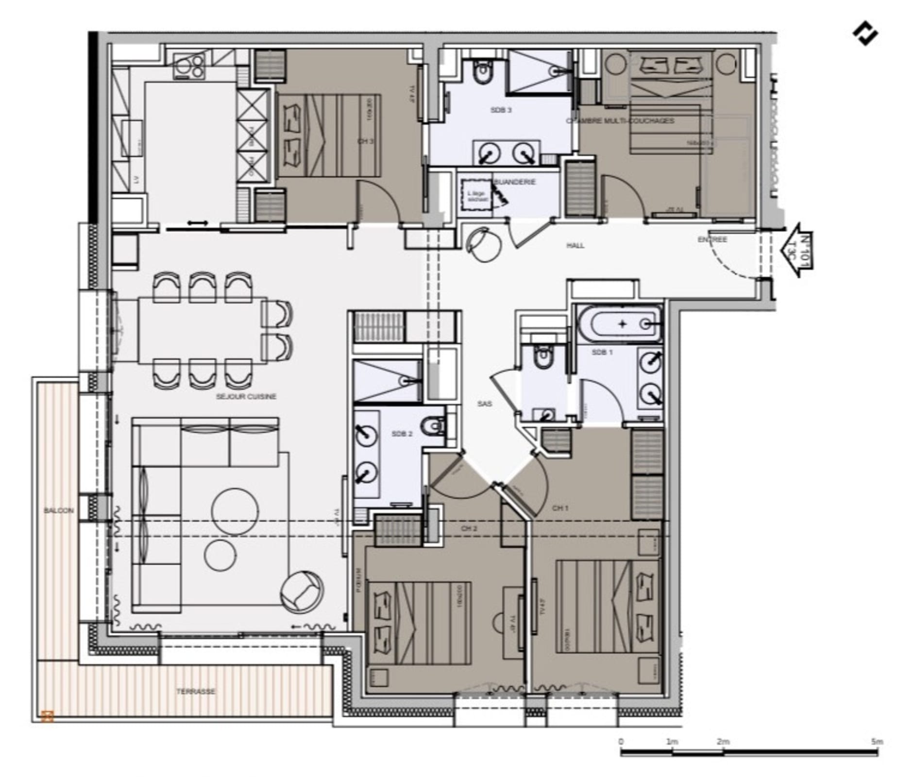 Perfect for families or friends, the apartment sleeps up to 9 guests with 4 bedrooms and 3 bathrooms. For convenience, you also have two covered parking spaces and a ski locker in the residence.