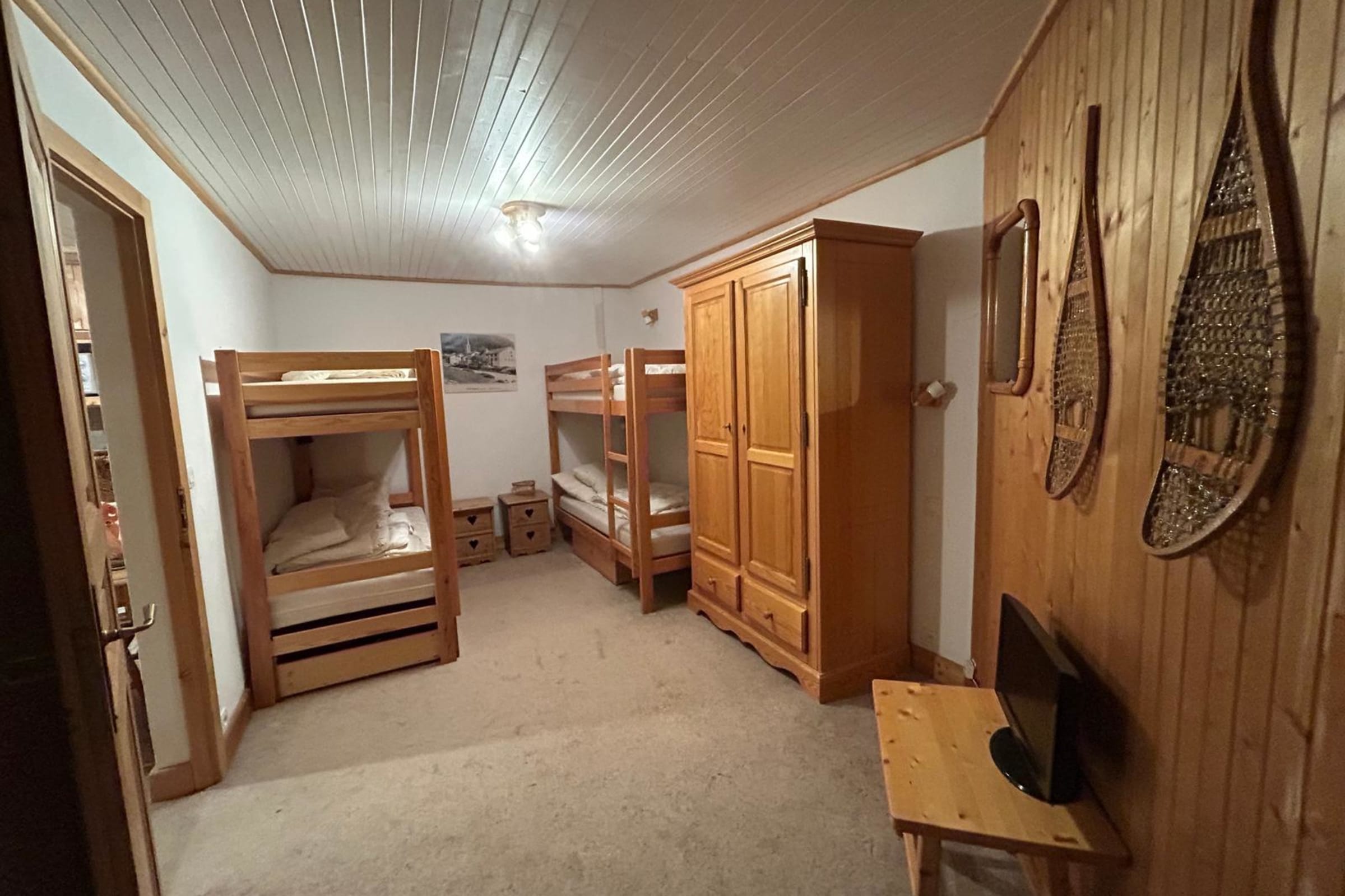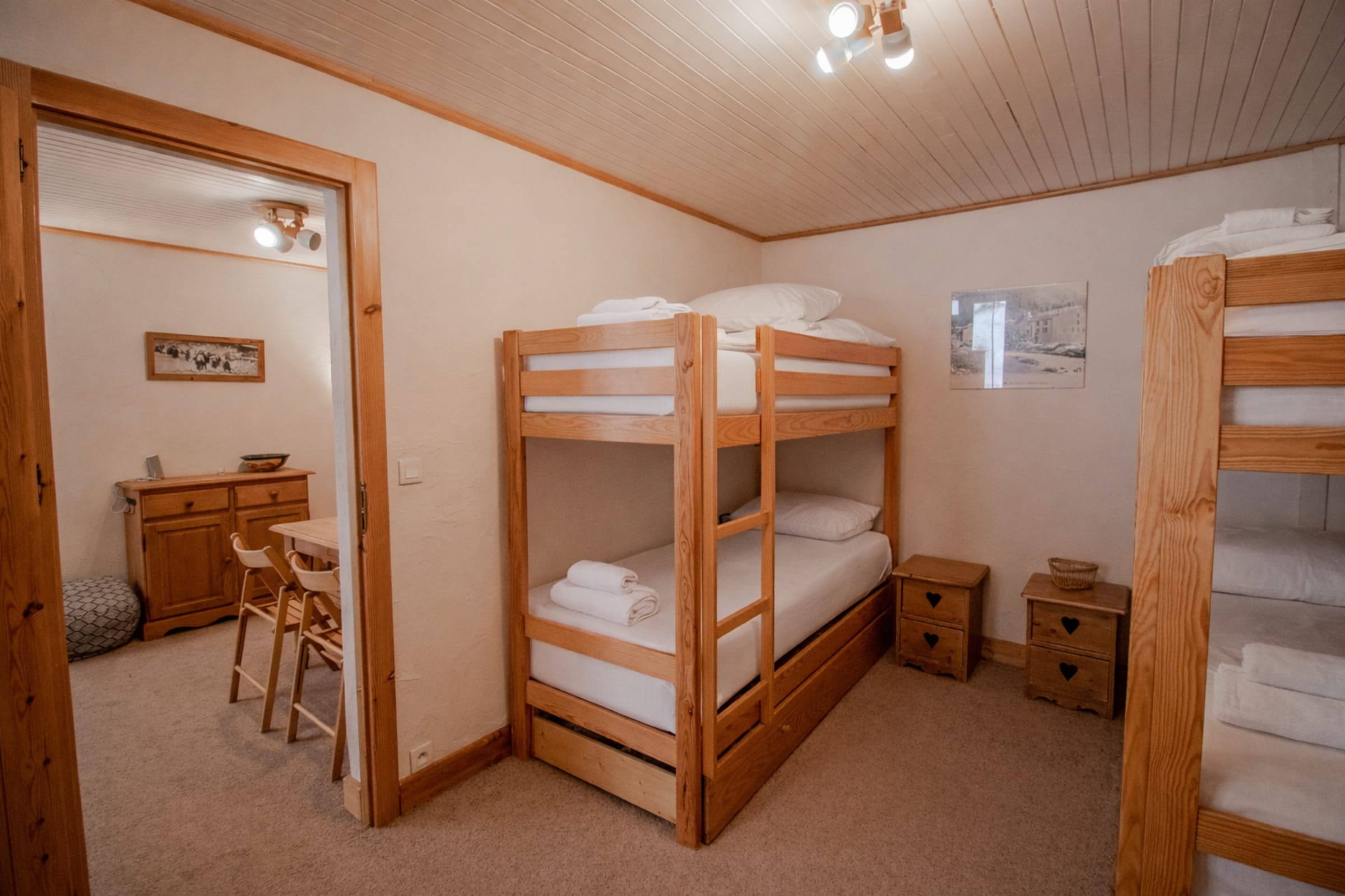 - One bedroom sleeping 4 with two bunk beds (4 single beds in total) and storage wardrobes