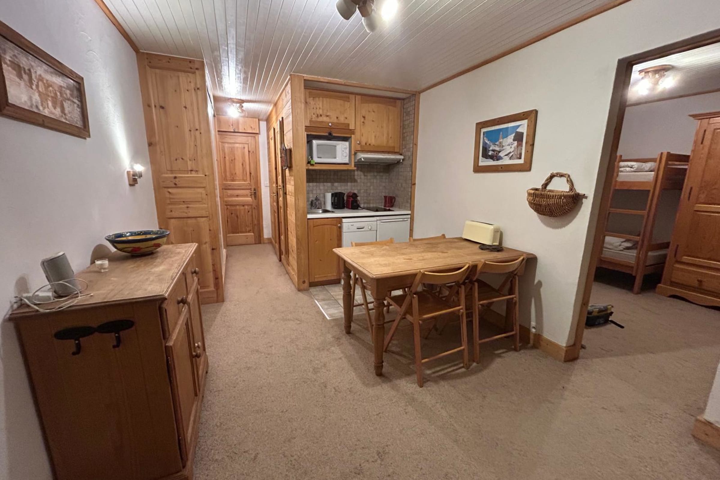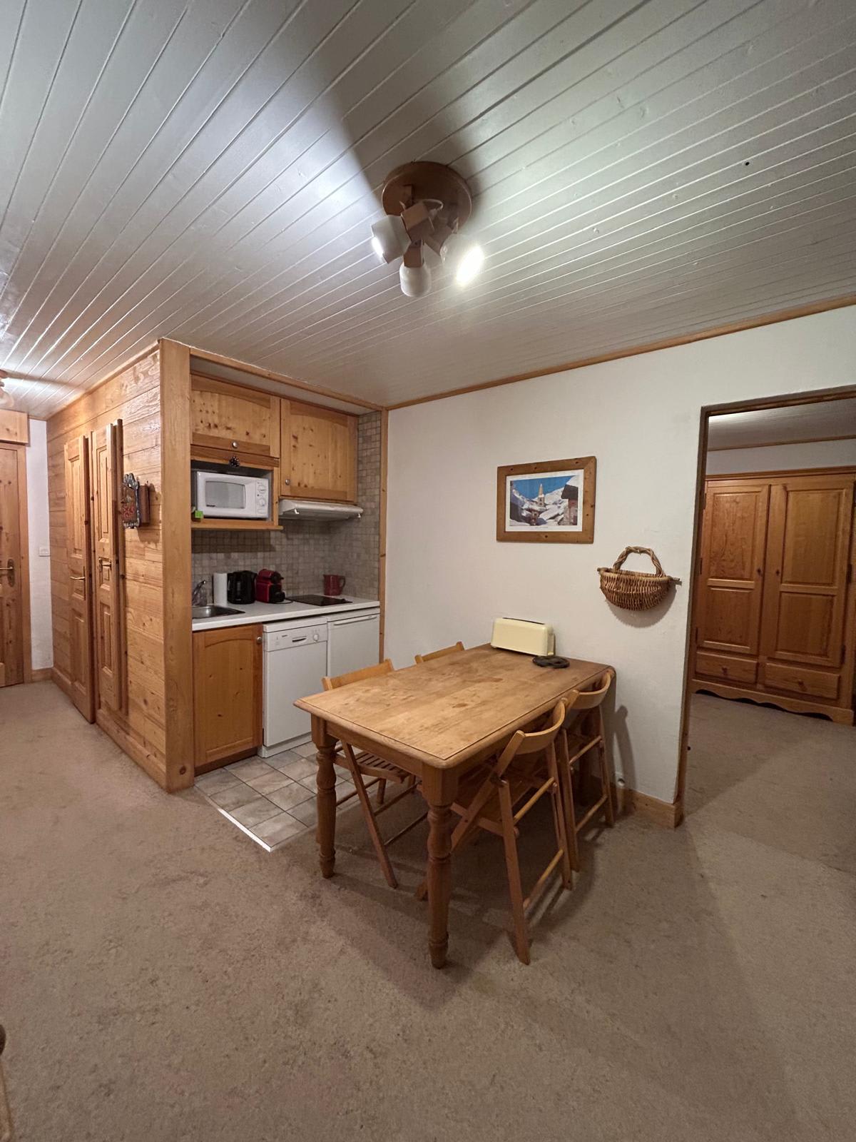 Ideally located in the heart of Val d’Isère and just 500 m from the slopes, this cosy, practical apartment for up to 4 guests includes: