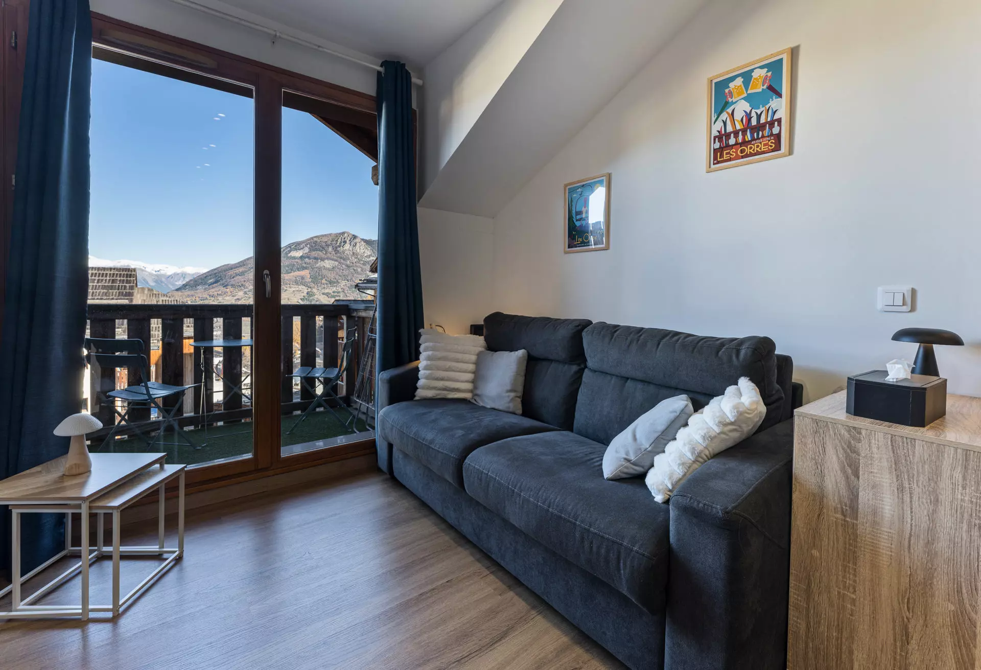 This spacious 33 m² apartment comprises an entrance hall with storage, a living room with a fully equipped kitchen including a dishwasher, combination microwave/oven, Nespresso coffee machine, kettle, toaster, etc.; a lounge with a television; and a dining area seating six. You can also enjoy a balcony overlooking the charming shopping square, the heart of the Orres 1800 resort.