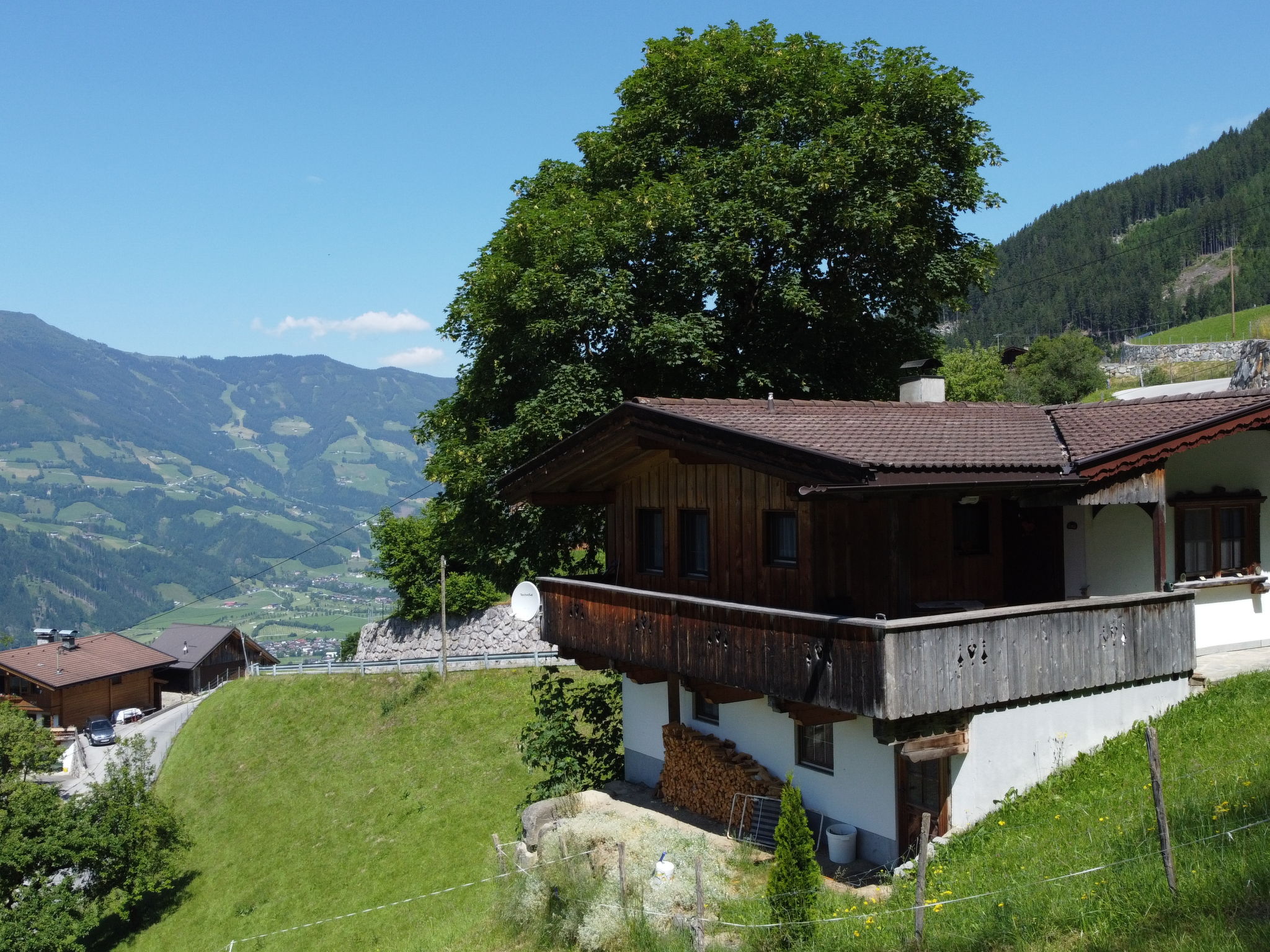 Gattererberg 5 km from Kaltenbach: Located in a beautiful panoramic position, cosy rustic chalet "Hamberg Hütte". Above Stumm, in the district of Gattererberg 4 km from the centre of Stumm, 5 km from the centre of Kaltenbach, in a quiet, sunny position on a slope, 5 km from the lake. Private: property. Terrace, garden furniture, barbecue. In the house: WiFi, infrared sauna (all included), central heating system. Motor access to the house. In Winter: please take snow chains. Parking at the house. Supermarket 4 km, restaurant 1 km, bus stop "Gattererberg Hauleit" 110 m, railway station "Kaltenbach-Stumm Bahnhof" 4.9 km, outdoor swimming pool 4 km, thermal baths "Erlebnistherme Fügen" 10 km, bathing lake 5 km. Tennis 5 km, walking paths from the house 10 m, gondola lift 4.8 km, skisport facilities 4.8 km, cross country ski track 4 km, ice rink 6 km. Please note: car recommended.