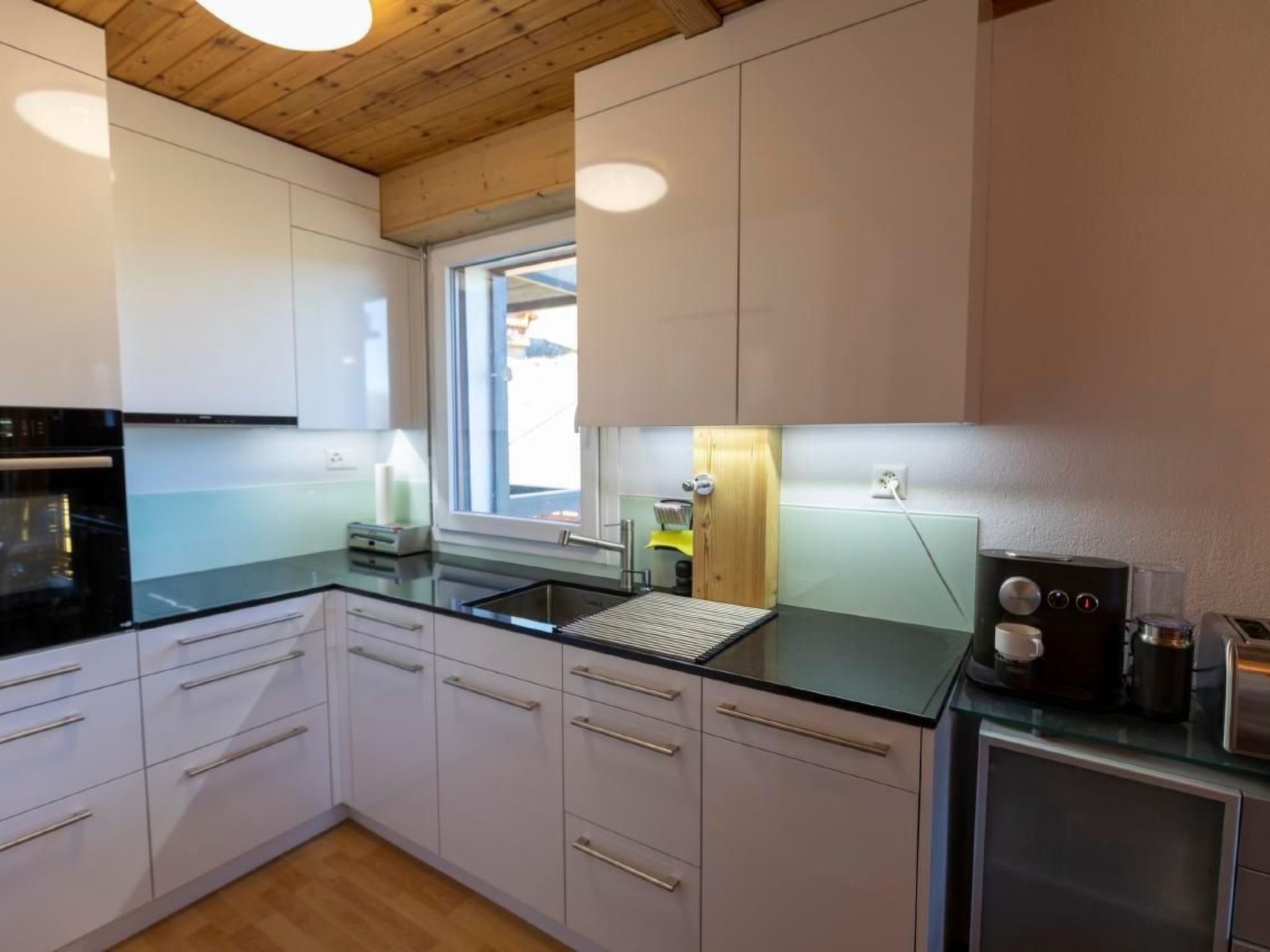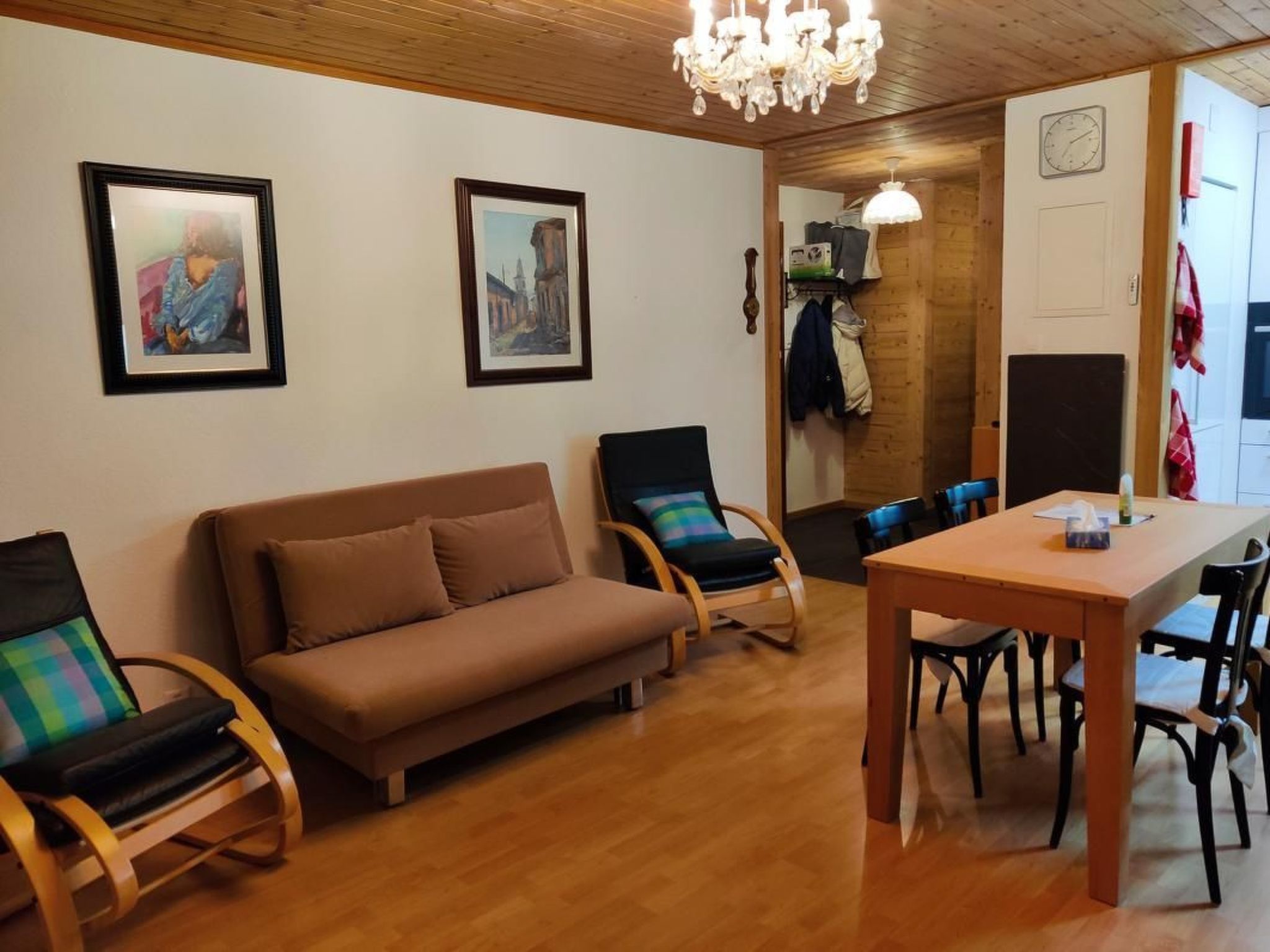 Completely renovated in 2020. The Appartment consists of 2 sleeping rooms, each with a separate bath-room and a living-room with guest-toilet. There is a modern kitchen. Each sleeping-room has two beds 200x80cm . A parking is available in the front of the chalet. Bed-linens are to rent on place. In the living-room is a sofa of 1.4m large which can be extended to a bed.