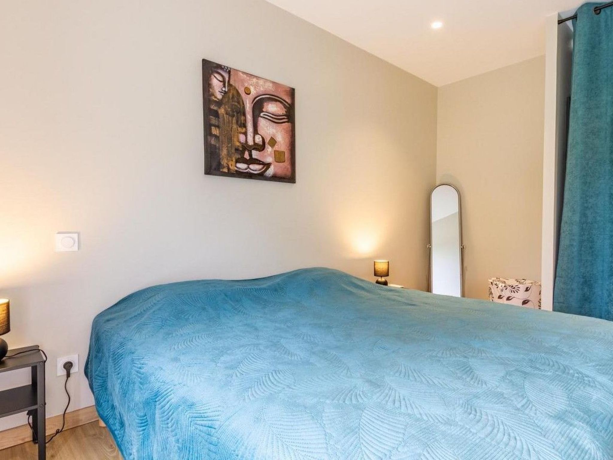 Air conditioning and underfloor heating throughout the house ensure a pleasant atmosphere whatever the season. The bedroom has a 180x200 king-size bed for couples, which can be converted into 2 single beds for families or friends.