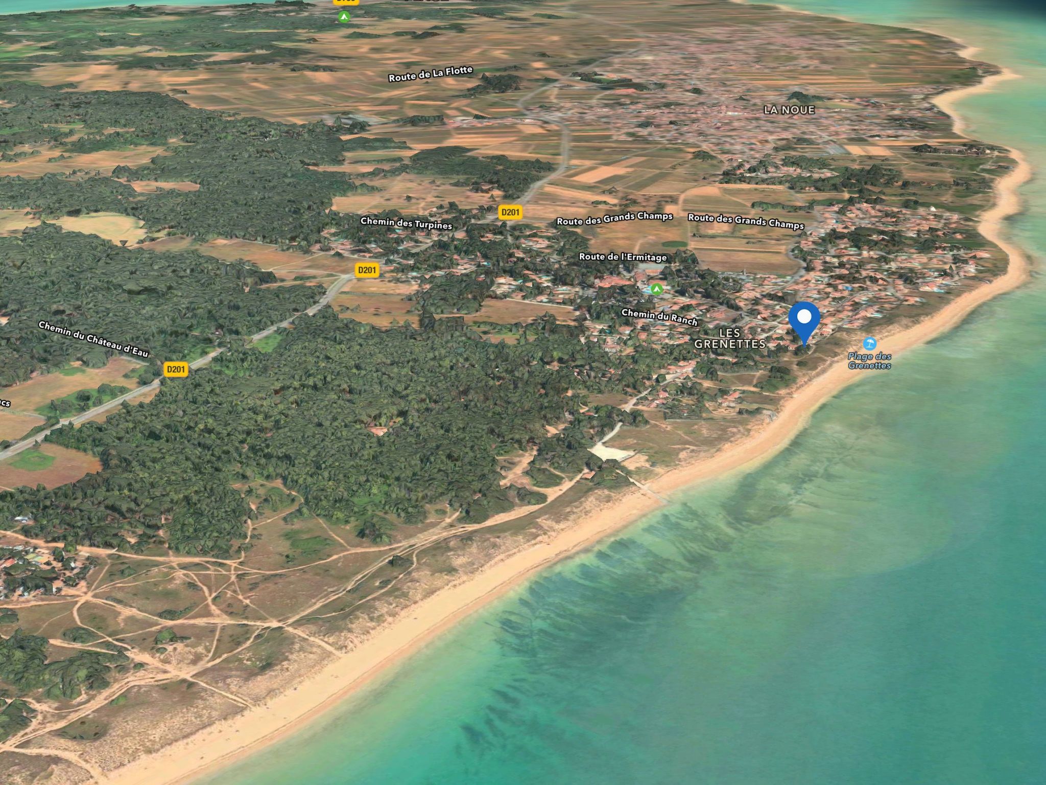 Location: The Grenettes site, which is highly protected, is located in a wooded area between the villages of Sainte-Marie and Bois-Plage. Between the pine forest and the dune, it is the last property before the beach. The Quéreux du Fond des Grenettes lives up to its name and is only used by 2 or 3 local residents. On the other side of the house, a small sandy path leads down to the beach, just a few dozen metres away... NOTICE TO PEDESTRIAN FISHERS!!! take advantage of direct access to an area renowned for fishing on foot: prawns, whelks, scallops, oysters in large quantities, angling, etc...