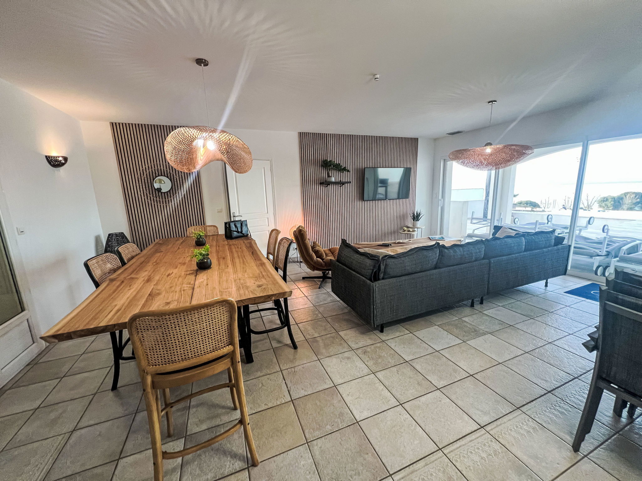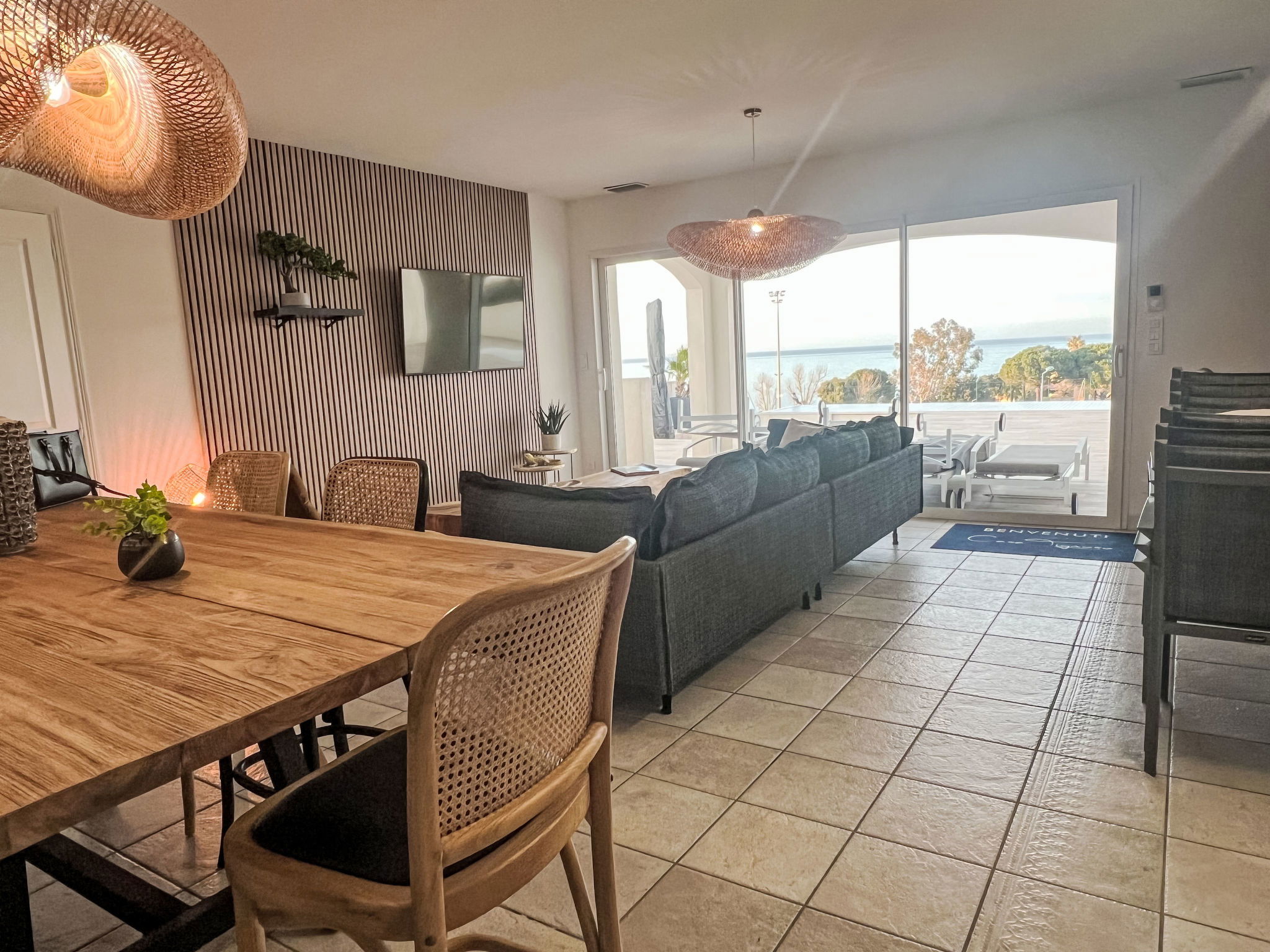 The villa nestles in a privileged setting, just 400 metres from the sea and pet-friendly beaches. Everything you could possibly need is close by, with a bakery and mini-market just a short walk away, the town centre just 600 metres away and watersports opportunities 2 km away. Whether you want to explore the area, enjoy the local cuisine or simply relax on the beach, everything is within easy reach.