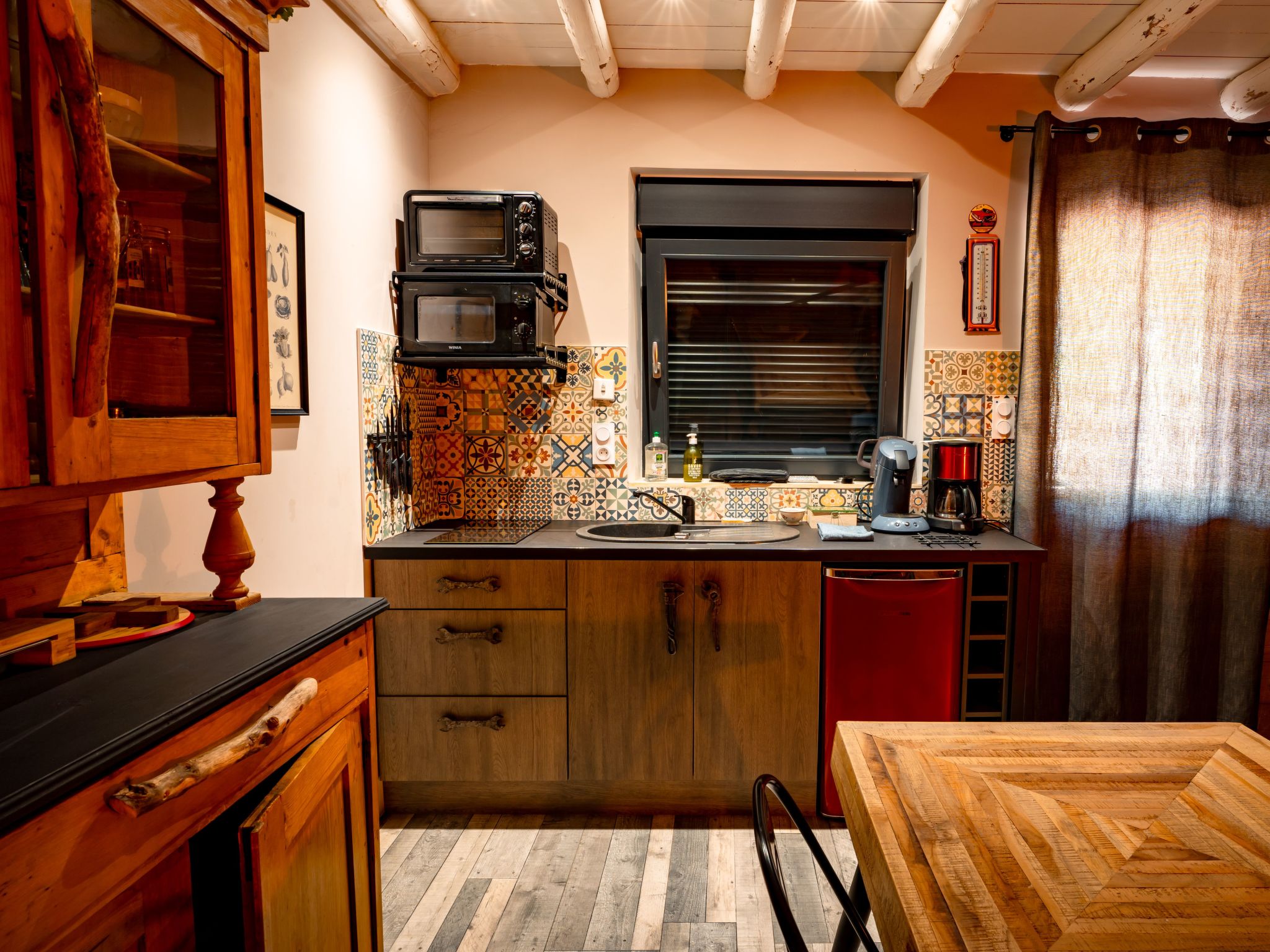 The gîte has been tastefully and carefully decorated to create a cosy, warm and relaxing atmosphere, and offers a high level of comfort with its many facilities: