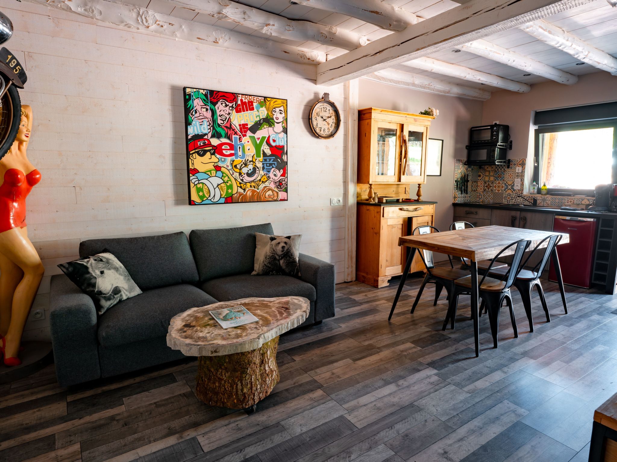 At an altitude of 850 m, in the heart of the Vosges mountains, Le garage de Léon is an exceptional 50 m² gîte for 2 to 4 people. Set in lush greenery, you'll love its unusual, unique, vintage-industrial decor...