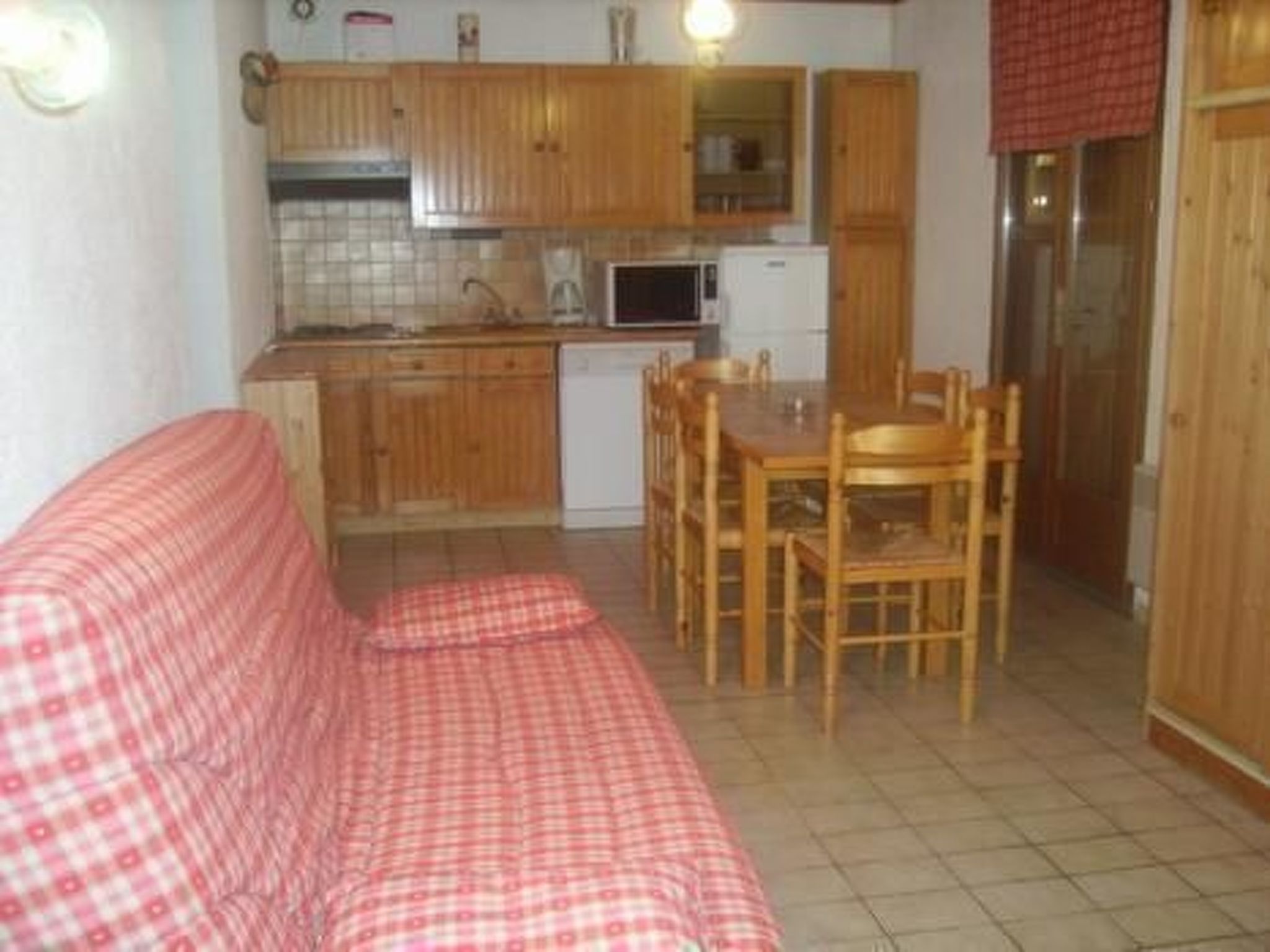 - Well-equipped mountain decor: bathroom with shower .2 bunk beds for 1 person 90 x 190:+ wardrobe: 1 bedroom 1 bed 140 + 1 bunk bed 90 .living room-kitchen 1 sofa bed for 2 people (with a very good mattress): fitted kitchen, microwave oven, fridge with freezer, extractor fan, electric kettle and coffee maker, food processor, TV. hot plate, dishwasher, toaster, L V, TV, TNT, DVD player etc.. Shared laundry room, private parking. Located at'entrée de la station .