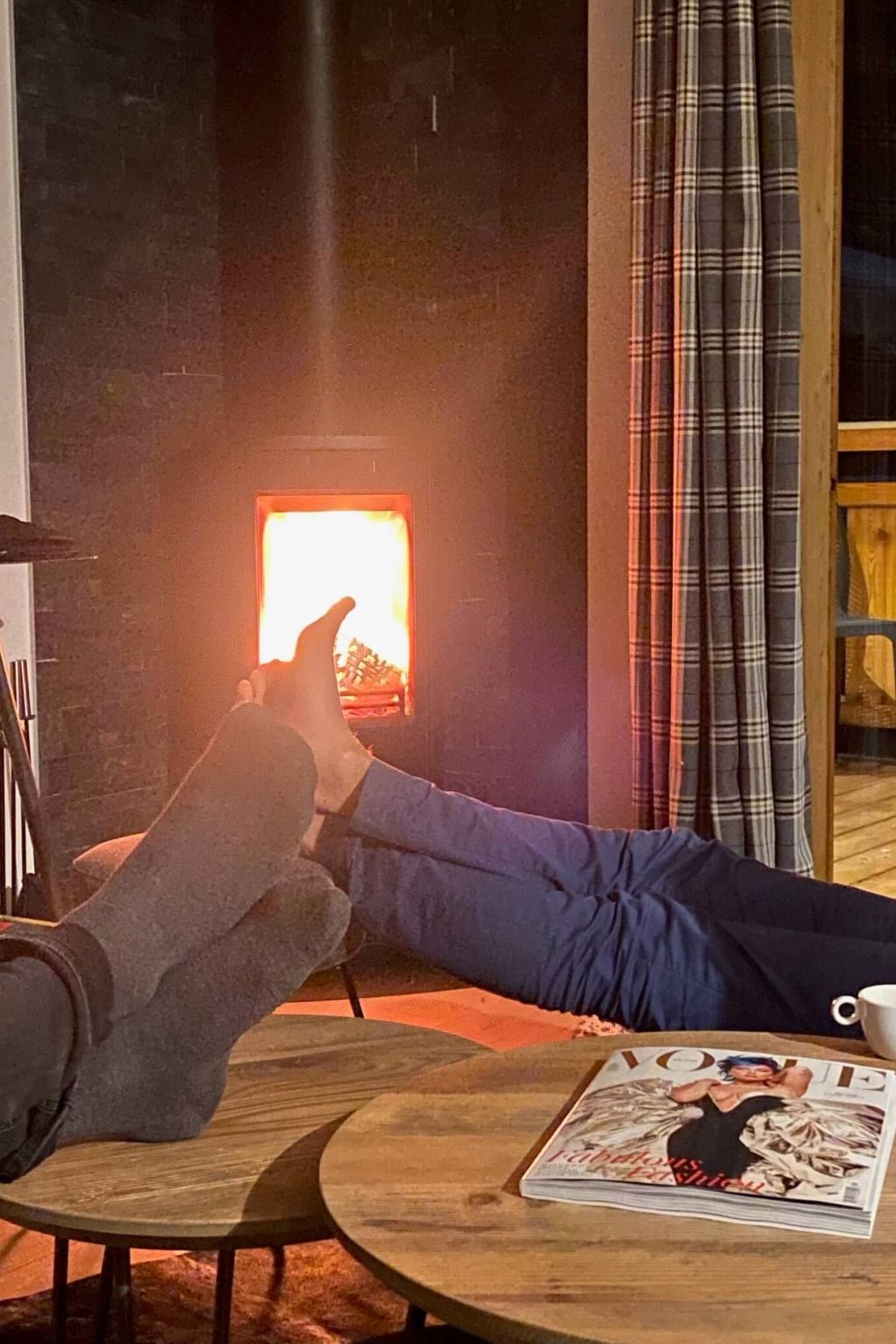 Our three-bedroom chalet comfortably accommodates 8 guests (and up to 10 if needed). The kitchen is fully equipped to make meal preparation and cleanup effortless, with a full fridge, oven, stove, dishwasher and a Nespresso coffee machine. Underfloor heating and the log burner in the living room will keep you cozy while you enjoy magnificent views.