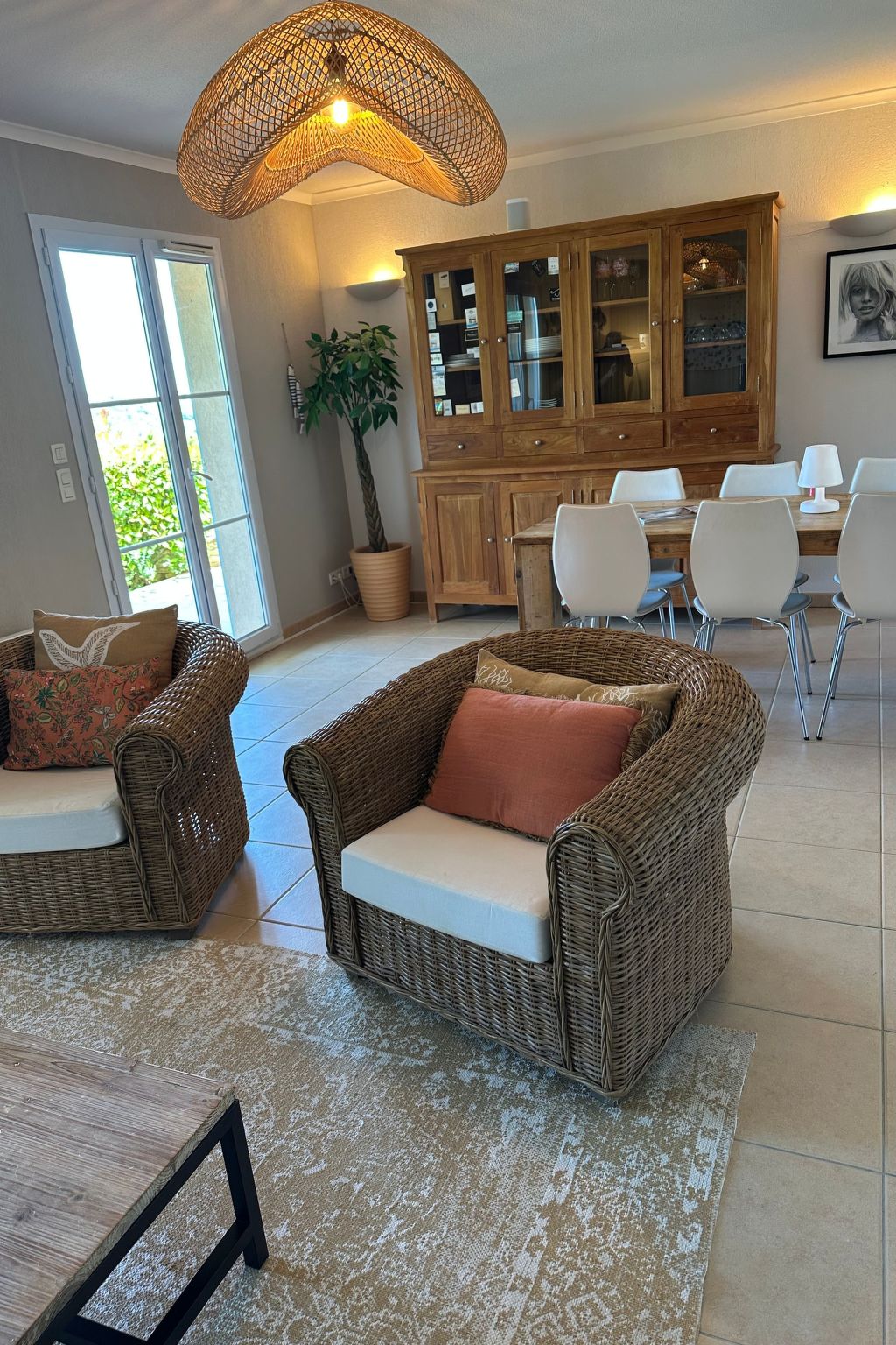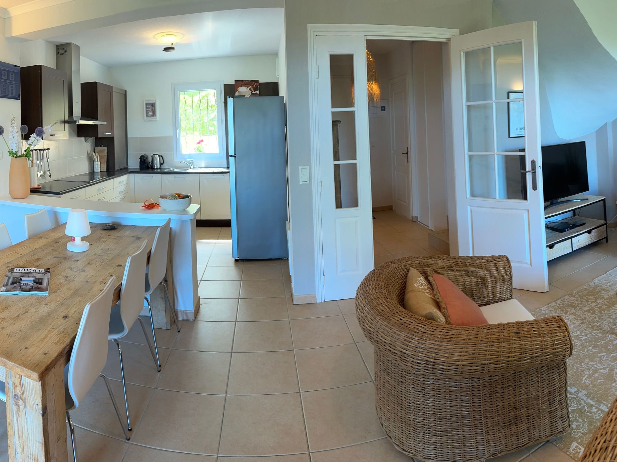 The villa is a luxurious modern holiday home in a small private domaine on the Cote D' Azur with its own garden and terrace overlooking the sea. All modern comfort is available : modern kitchen, washing machine, sat tv, wifi, streaming radio, bbq, 2 bathrooms, 3 bedrooms, 2 toilets The villa is located 1,5 km. from the beach , 3 minutes by car, restaurants and shops 5 minutes away. Ste Maxime is at short distance, where many activities take place in the summer months Nearby you can make beautiful walks in the Massif des Maures, a large nature reserve. Of course there are many possibilities for water sports. From the port there is a regular boat connection to St Tropez. Les Issambres is also a good base for the surrounding cities, such as Frejus, Cannes, Nice and Monaco. A little further away is Aix en Provence , well worth a visit , making Villa Les Coralines an ideal summer and winter holiday home . The resort of Les Issambres has a long coastline with many sandy beaches . There are beaches where you can stay for free and there are beaches where you can use a place with deckchair and parasol for a fee.