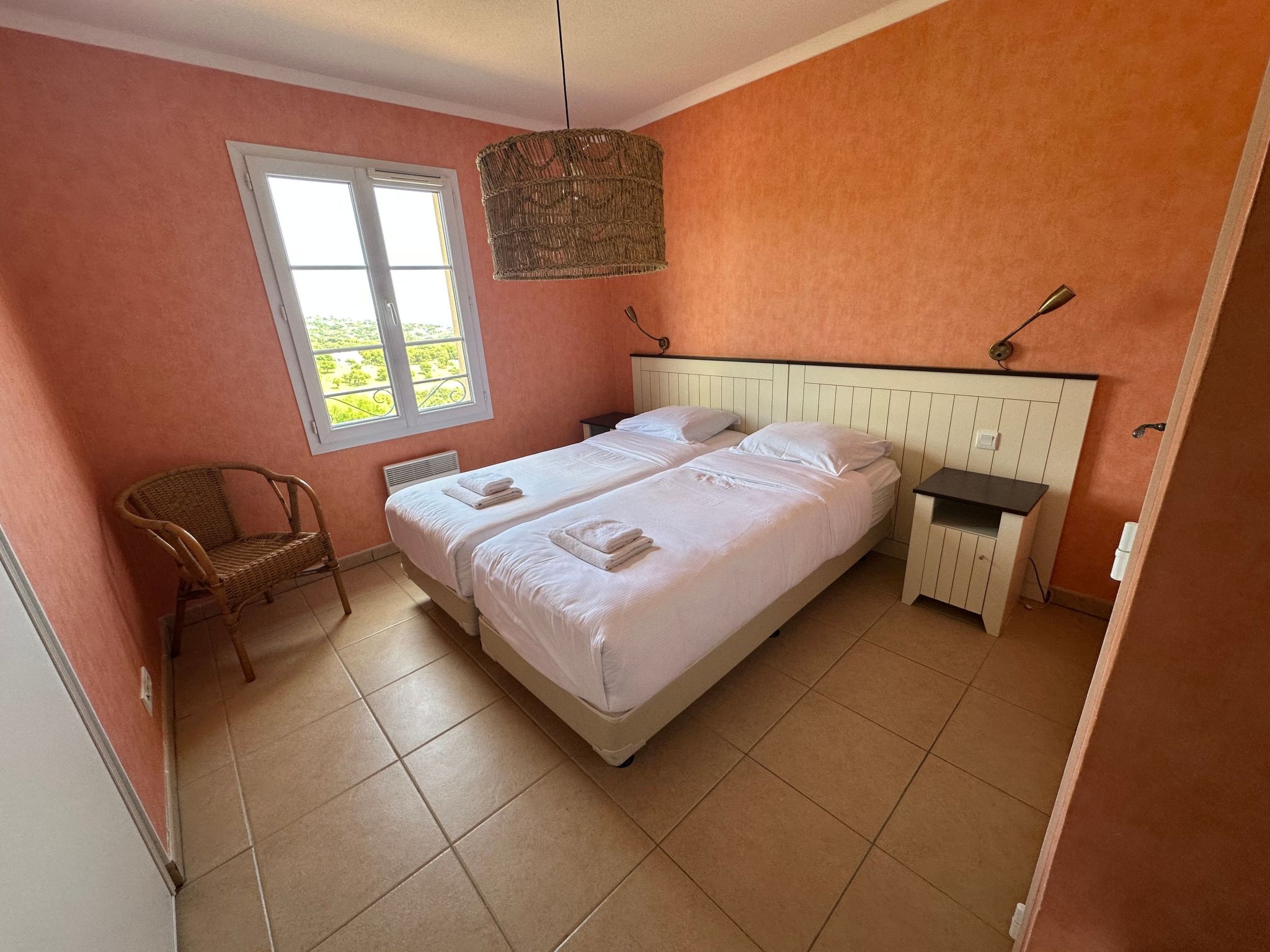 3 bedrooms (2x boxspring, 1x bunk bed, 1x extra child's bed) 2 bathrooms (with hairdryer) 2 separate toilets Luxuriously furnished living room (satellite TV, DVD, CD, bluetooth radio) WIFI available Modern kitchen (dishwasher, combi oven, Nespresso) Washing machine Garden with front and side terrace (6 chairs, loungers available) Terrace with sea view BBQ Large communal (outdoor) swimming pool