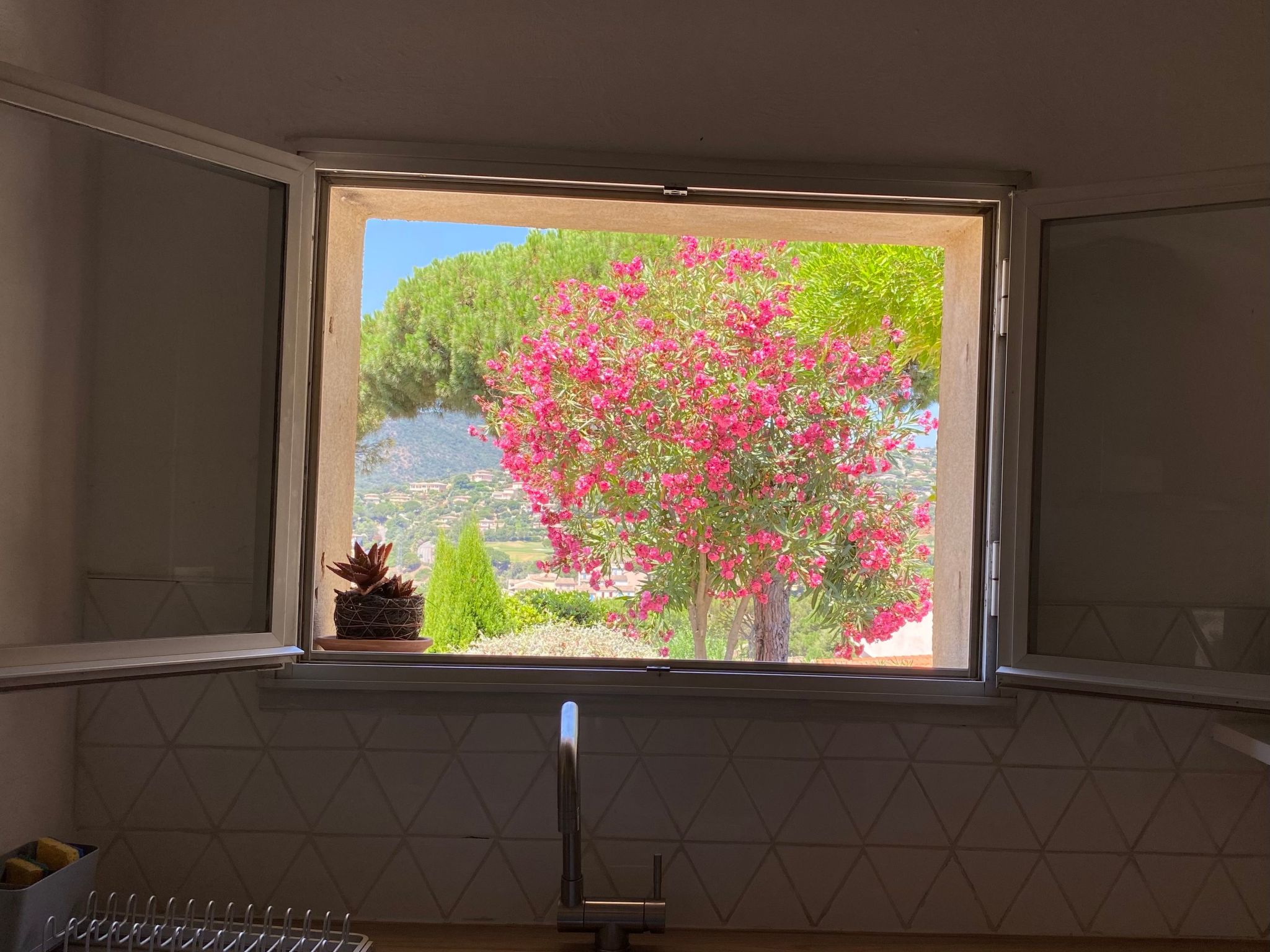 You want the sun, the blue sky, the sea, the scents of the Midi and the peace and quiet of a little corner of paradise. Come and stay in our Provençal villa (rated 3 stars), which offers you an idyllic setting on the Côte d'Azur where you can give yourself over to your heart's content. With a flower-filled, enclosed garden of around 400 m2, bathed in the scent of umbrella pines, cypresses, mimosas, lavender and oleanders, it welcomes you with living room, dining room, 2 bedrooms, 5 beds, bathroom with walk-in shower, separate WC, 2 terraces, one of which 70m2 in Bavarian flagstone with a beautiful, uninterrupted view over the golf course and pinewoods; charming pergola covered with plants and flowers. In one of the most sought-after areas of Ste Maxime, free access (approx. 500 m away): large 20x10 m swimming pool, children's pool, open from 1 May to 30 September. 5 tennis courts. Our mazet is located in an exceptional geographical situation, close to the beach and the town centre, with a very beautiful view, in the peace and far from the famous summer traffic jams of St Tropez.- The residence is completely protected, you can park your car in the private carpark just 30m from the house.- There are not many rentals. Most of the villas are second homes. Some have their own swimming pool. As a result, the residence's large swimming pool (20x10m) is never saturated;- Cycling is perfectly possible in our region. There is a wide, well-marked cycle path nearby that takes you either to the beach or to the town centre. This path extends as far as St Tropez. There's also the old Petit Train des Pignes cycle path (a beautiful, quiet route in the countryside, with sea views) on the Les Issambres side, which stretches for more than 8 km. All the household appliances are of high quality, as is the equipment in the house. Air conditioning and heating (reversible air conditioning) from 1 December 2022;