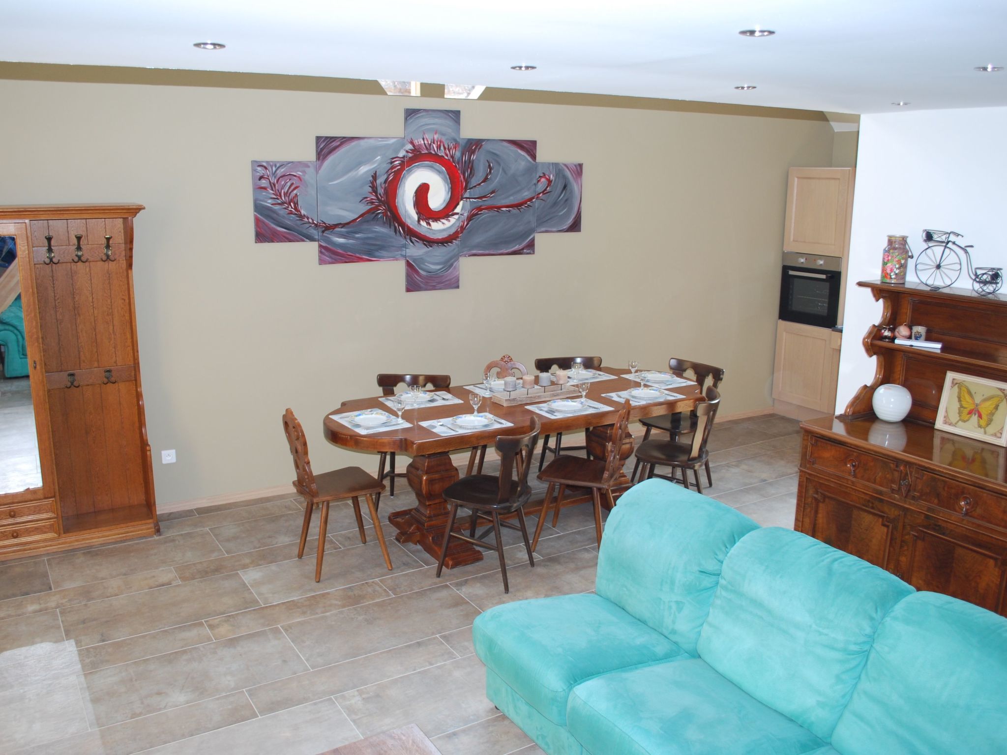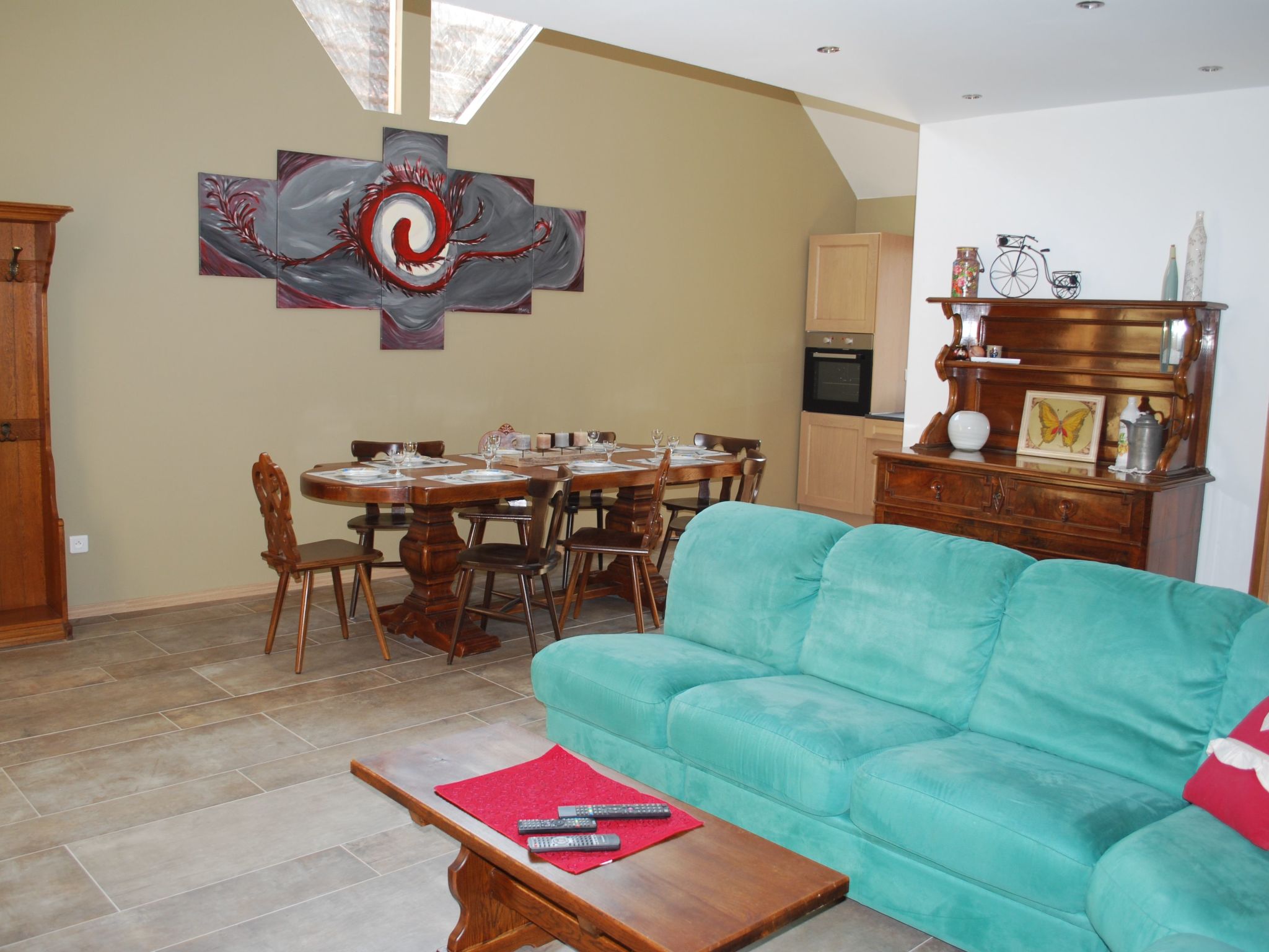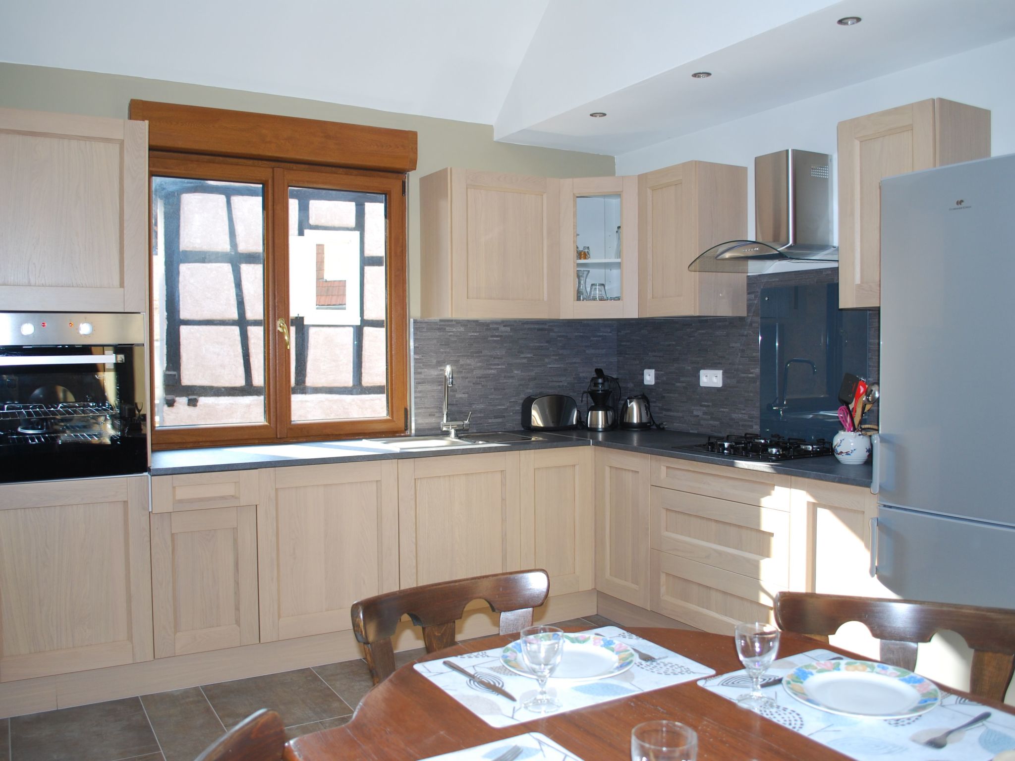 The outside of the gîte is not to be outdone, offering an area with a garden table and barbecue, ideal for outdoor meals or simply relaxing under the Alsatian sky. There is also an enclosed parking space for added security. Electric roller shutters on each window allow you to adjust the brightness and preserve your privacy at all times.