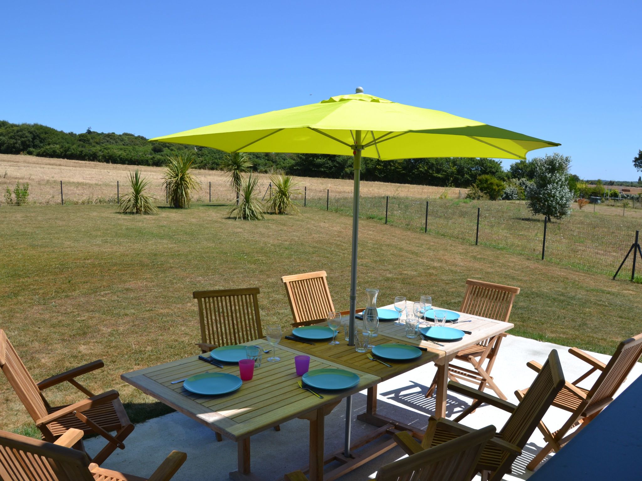 Terrace with garden furniture and barbecue, opening onto a large, fully enclosed garden of 1000 m2, not overlooked.