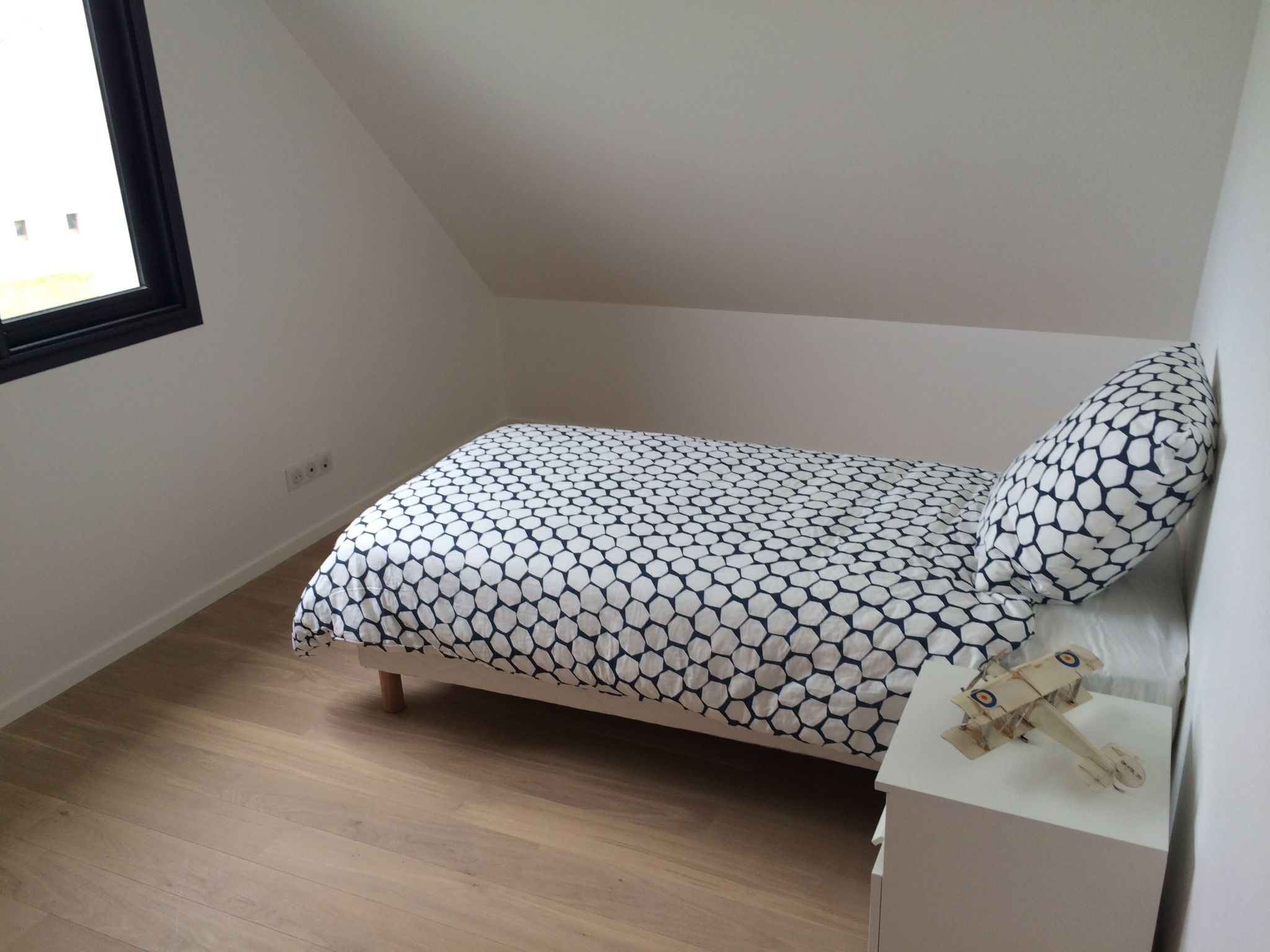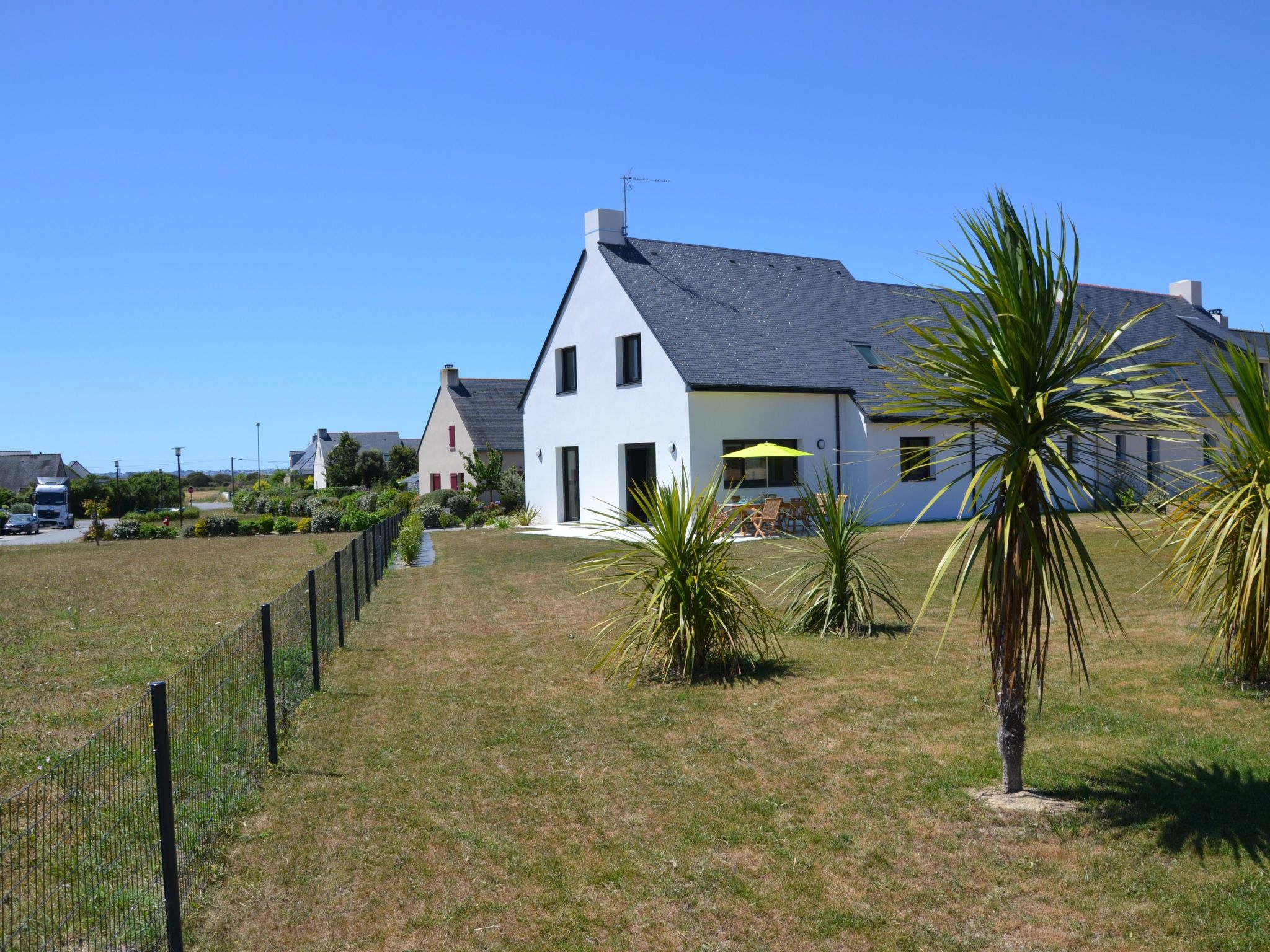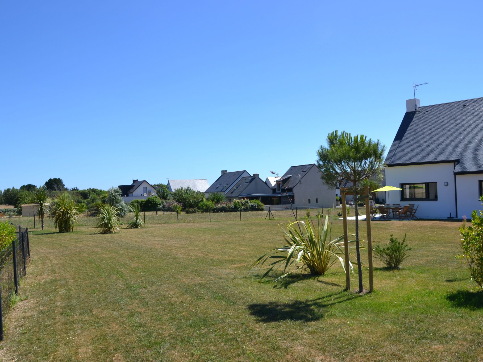 The 134 m² house (4 bedrooms; 2 shower rooms; 2 toilets) sleeps up to 7 people . New furniture, appliances and bedding. Practical double garage for 2 cars, bikes, sailing, surfing, kite-surfing, golfing equipment, etc. . Motorised roller shutters . Cupboards in all bedrooms . Access to the house and ground floor accessible to people of reduced mobility (PRM) On the ground floor: - A large living room with fully-equipped open-plan kitchen (dishwasher, oven, induction hob, microwave, fridge-freezer). Flat-screen TV in the living room - A utility room with washing machine - A bedroom (double bed 160x200), a shower room (Italian shower) and a separate toilet - A garage with motorised door, which can accommodate two vehicles, or bicycles, sailing equipment, etc. The living room opens onto a terrace with garden furniture and barbecue, overlooking a large enclosed garden of 1000 m2, not overlooked.