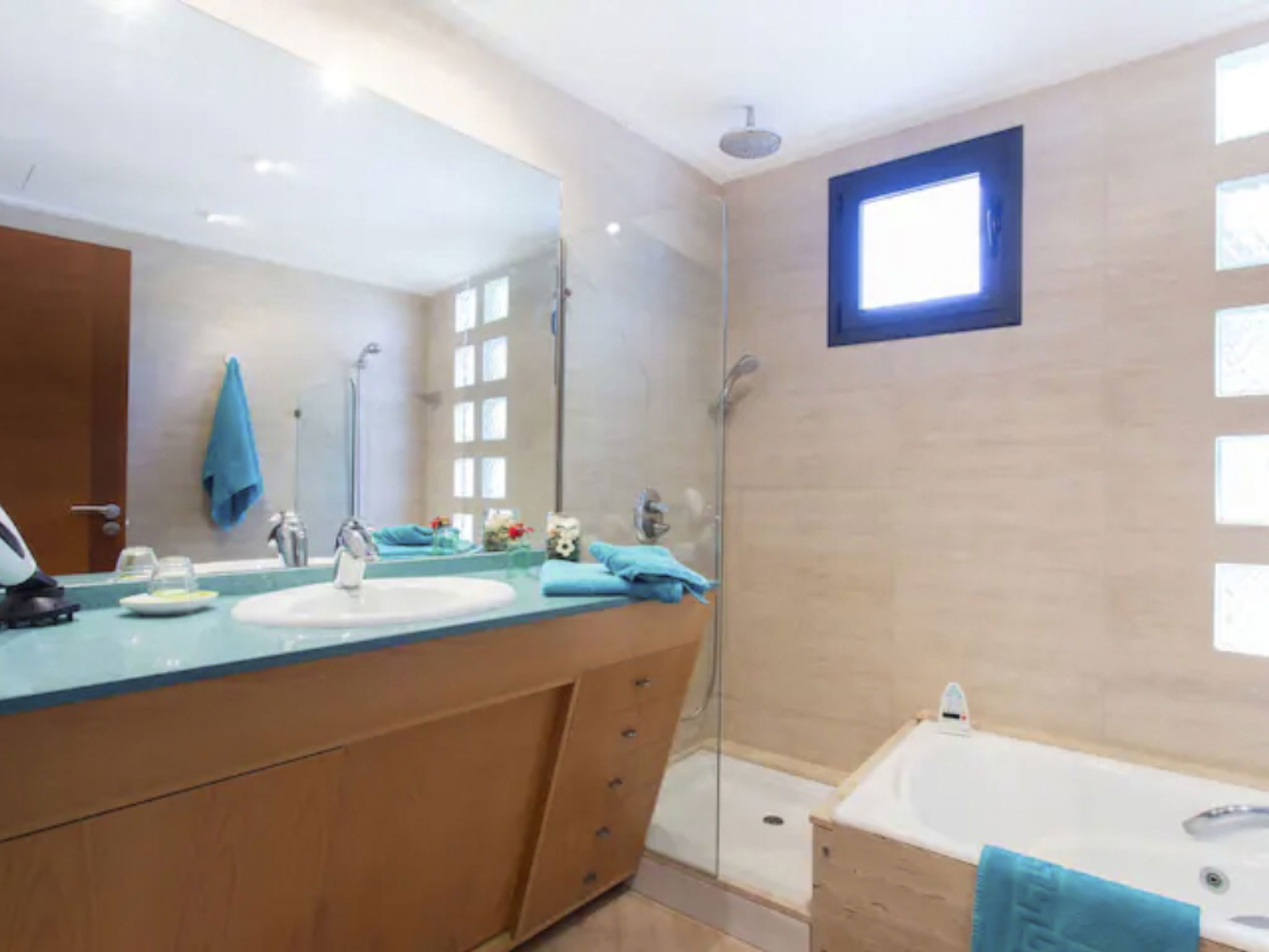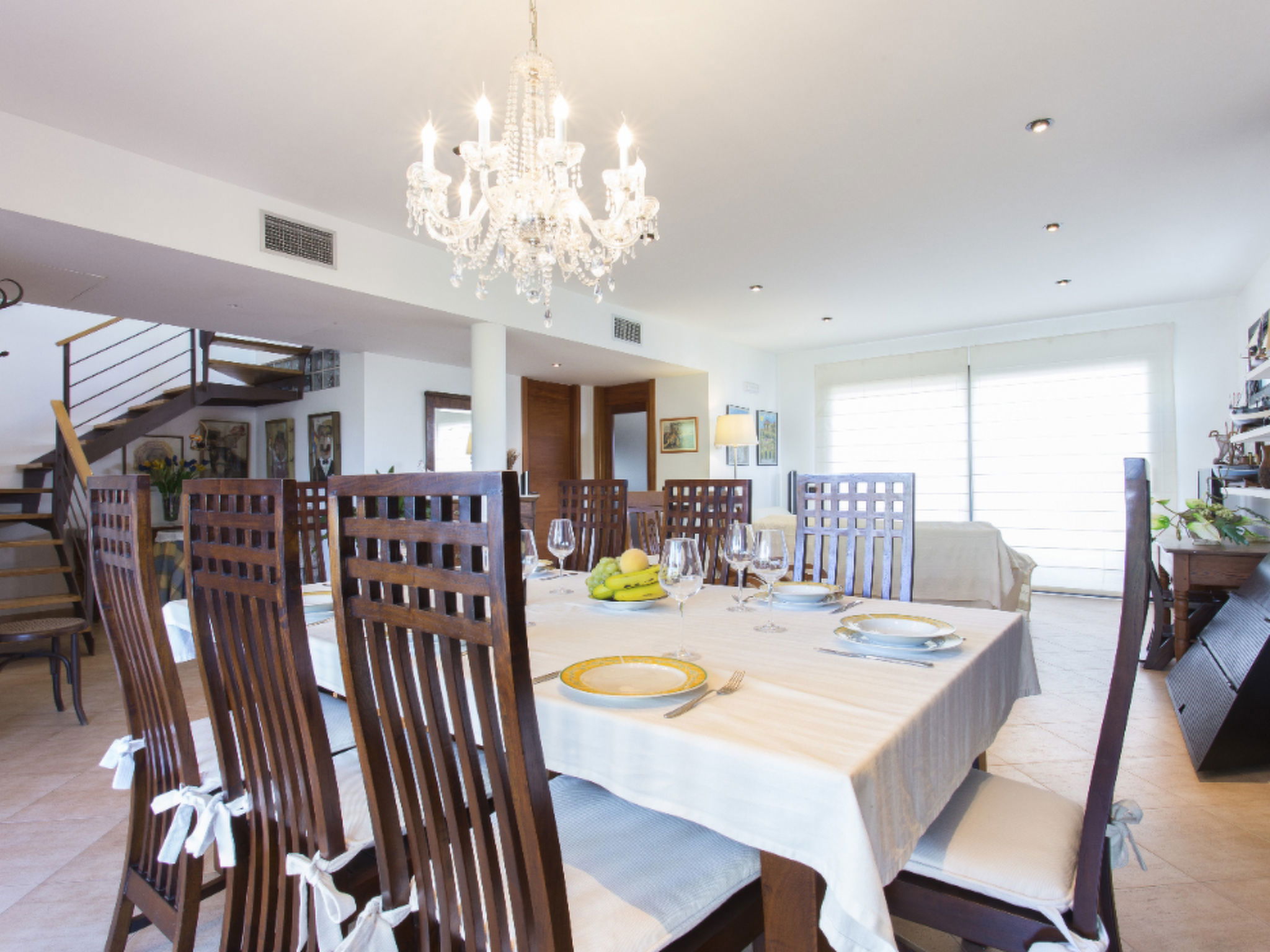 The house has 2 floors. The ground floor is accessed through the garden and there is a front terrace and a back terrace that leads directly to the swimming pool. The ground floor has about 150 m2 where there is a living-dining room, a bedroom with bathroom and the kitchen.