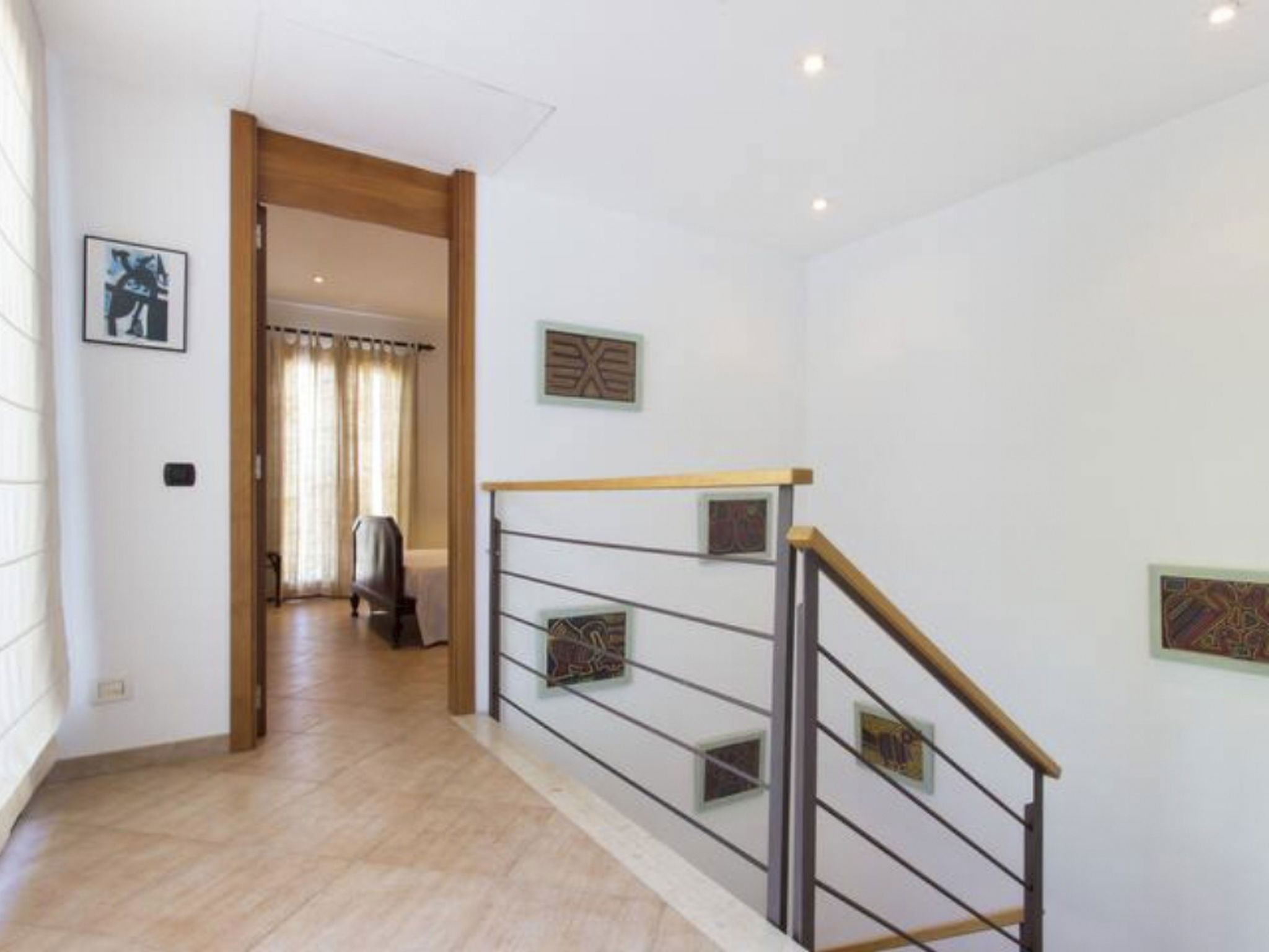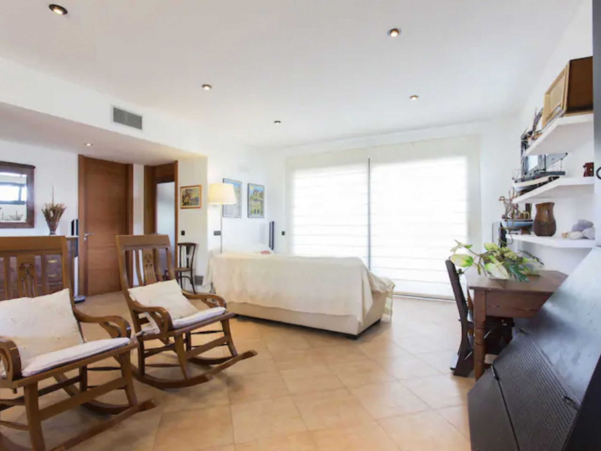 Modern and luxurious villa only 300 metres from the beach. Large garden with beautiful panoramic views, swimming pool, barbecue, wifi, satellite TV, heating and air conditioning. 4 bedrooms and 3 bathrooms. Ideal: Quiet, beach, close to town centre.