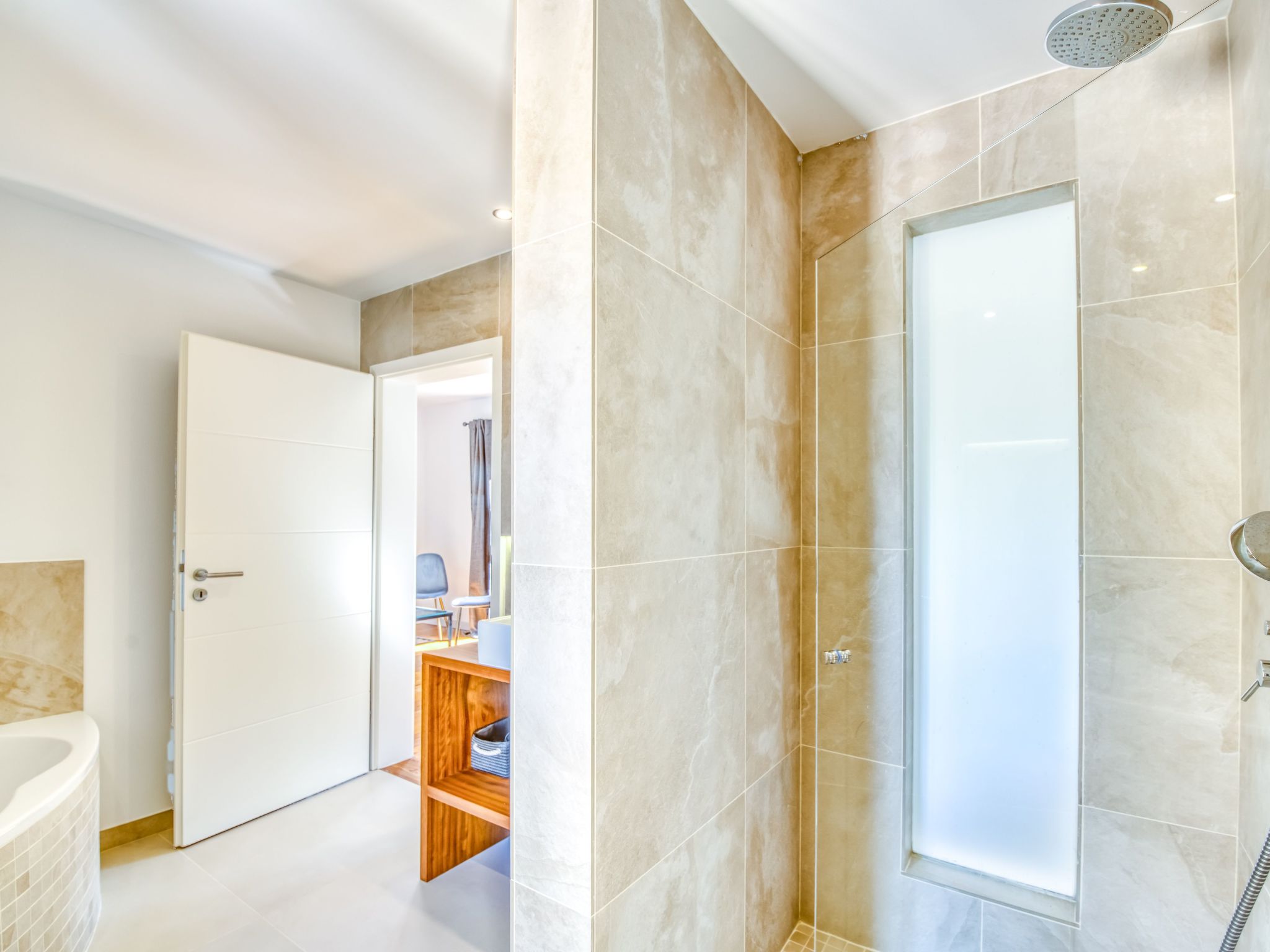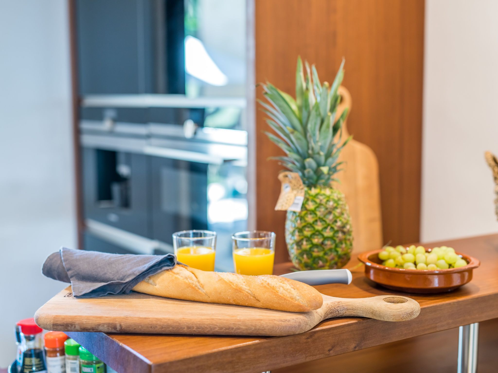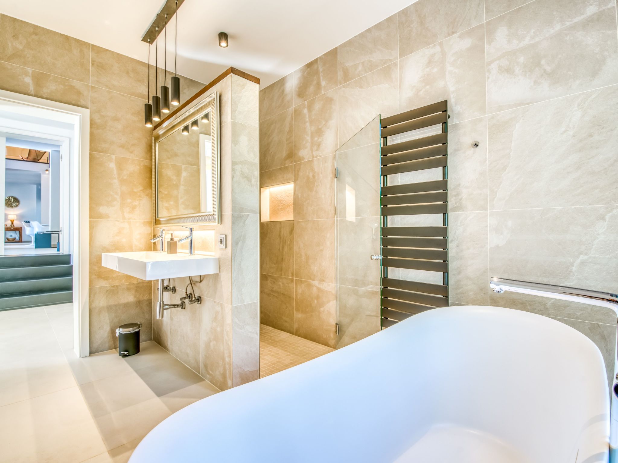 The bedrooms are all air-conditioned, the open, loft-like living/dining room has ceilings up to 7.50 metres high. The bathrooms each have walk-in showers, 3 of them even have a bathtub. In the kitchen you will find both gas and induction hobs, plus of course an oven, steam cooker and a fully automatic coffee machine - all from Siemens. And the barbecue - a large gas barbecue is located on the covered terrace. For the ingredients and the cool drinks, there is of course a large double-sided fridge-freezer combination - if you want to make your own ice cubes... Plus classic bar equipment. We open the bar at the start of the season with a sn of drinks to suit our taste. Over the summer, our guests then bring in what they have drunk themselves and what they love but are perhaps still missing. Then the bar is handed over to the next guest and so on. This is what we call give and take... where everyone leaves their own personal calling card - pure, mixed, as a cocktail or ice-cold on the rocks.