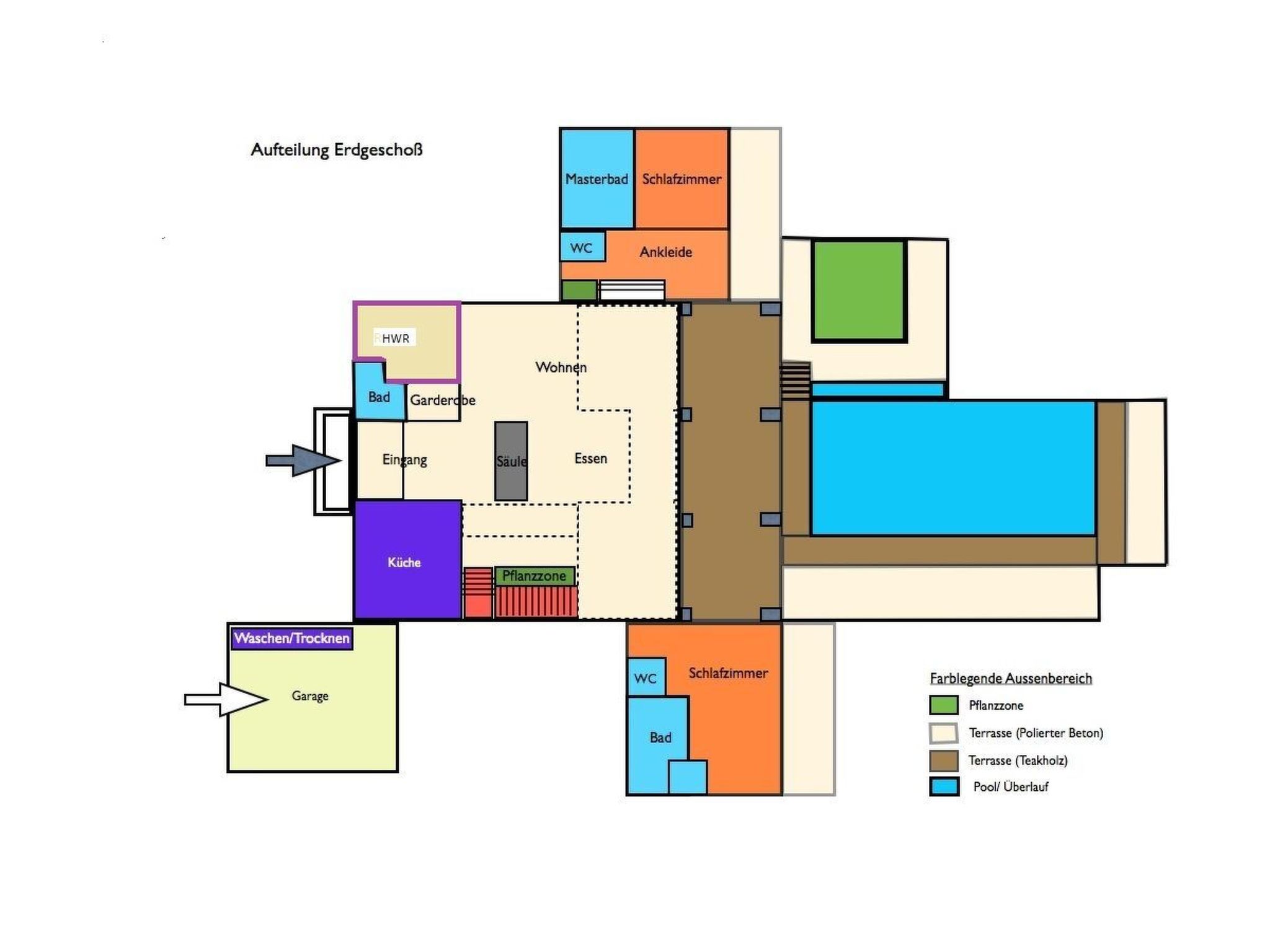 Our pool is operated as a skin- and child-friendly saltwater pool. We do not use strong chlorine additives. It is therefore particularly important to minimise contamination from sun creams, otherwise additional chlorination cycles are necessary in the hot summer months, after which the pool should not be used for 2-3 hours.