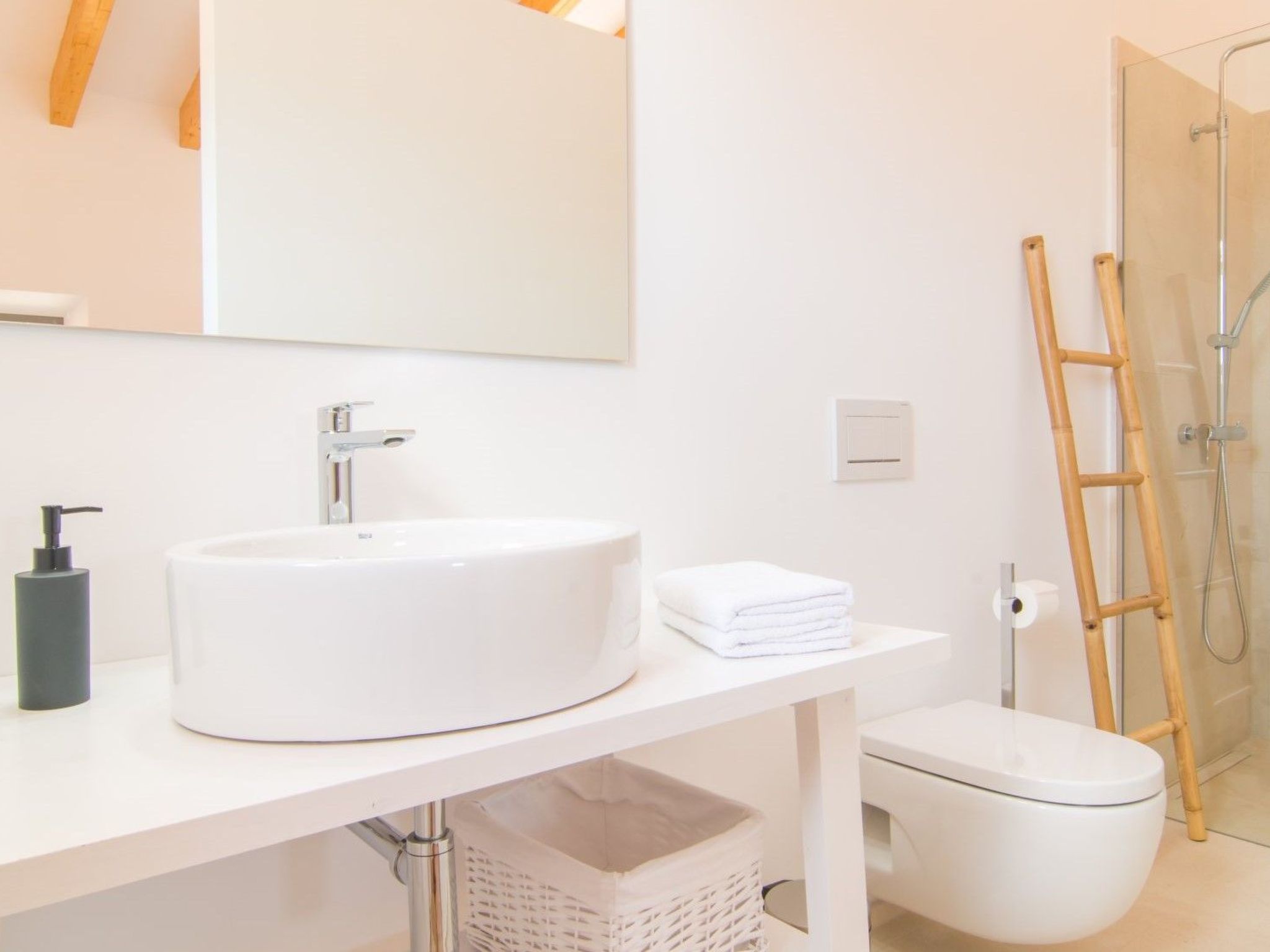 Inside, the house is distinguished by its spacious layout and high-end comforts, ensuring a pleasant stay for all its guests. It benefits from underfloor heating in all rooms, ensuring a warm and cosy atmosphere no matter the season. Practicality is a priority here, with essential features such as a washing machine and tumble dryer for exclusive use, along with a coffee maker, dishwasher, fan and kettle. These amenities make the home not only a visual delight, but also a functional space for everyday living.