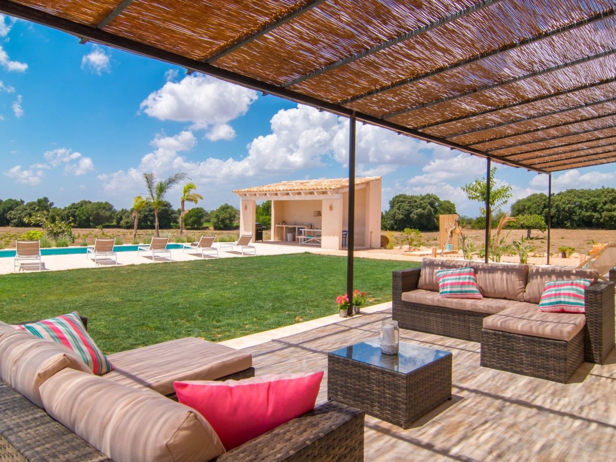 Discover the unique charm of Felanitx in this stunning holiday home, designed to provide comfort and une conciergerie for up to 8 visitors. Seamlessly blending traditional Mallorcan elements with the most avant-garde design trends, this property is an oasis of peace waiting for you. Set on a vast 38,000 m² plot, this home promises to be the setting for a memorable holiday with your loved ones.