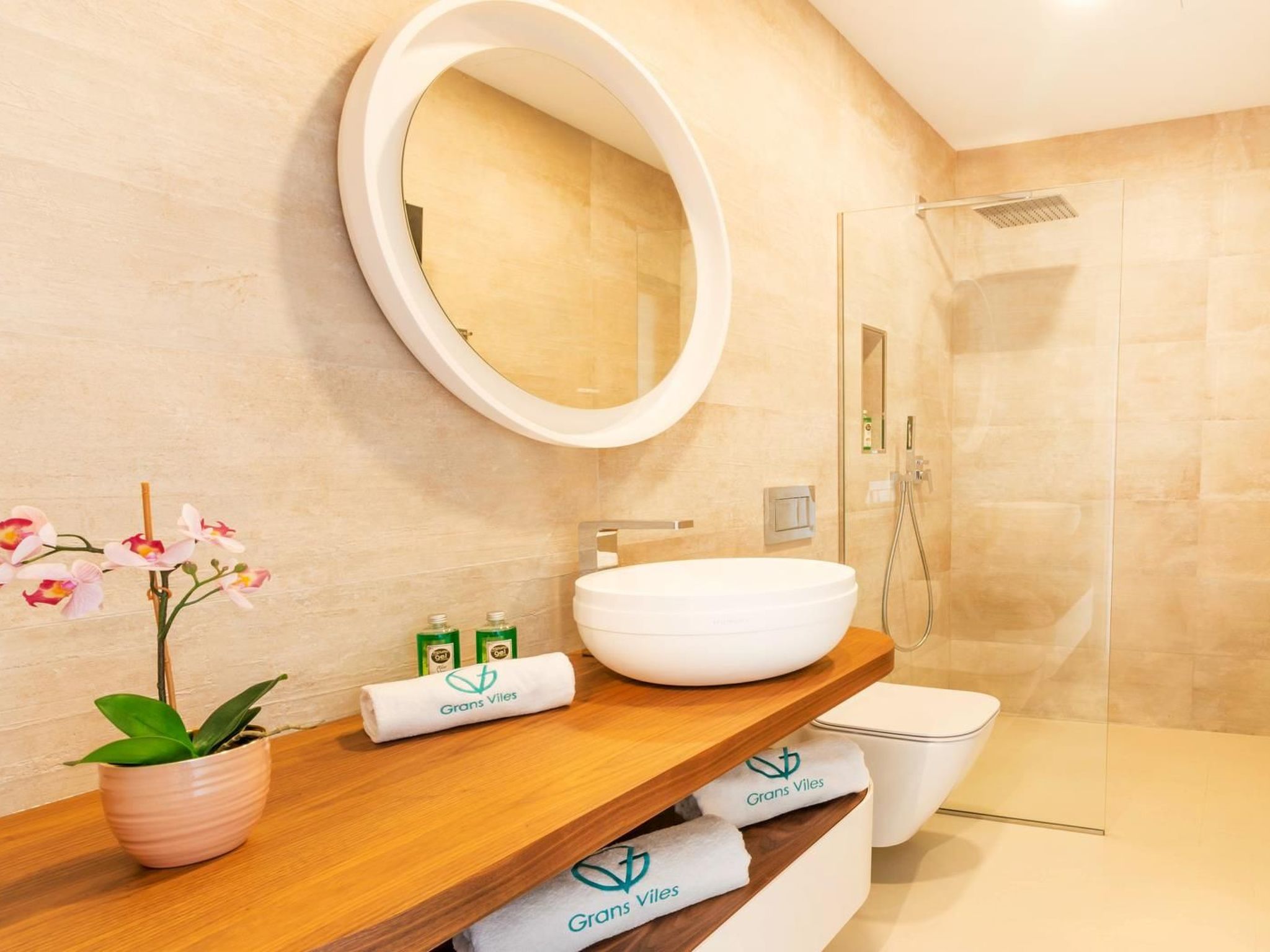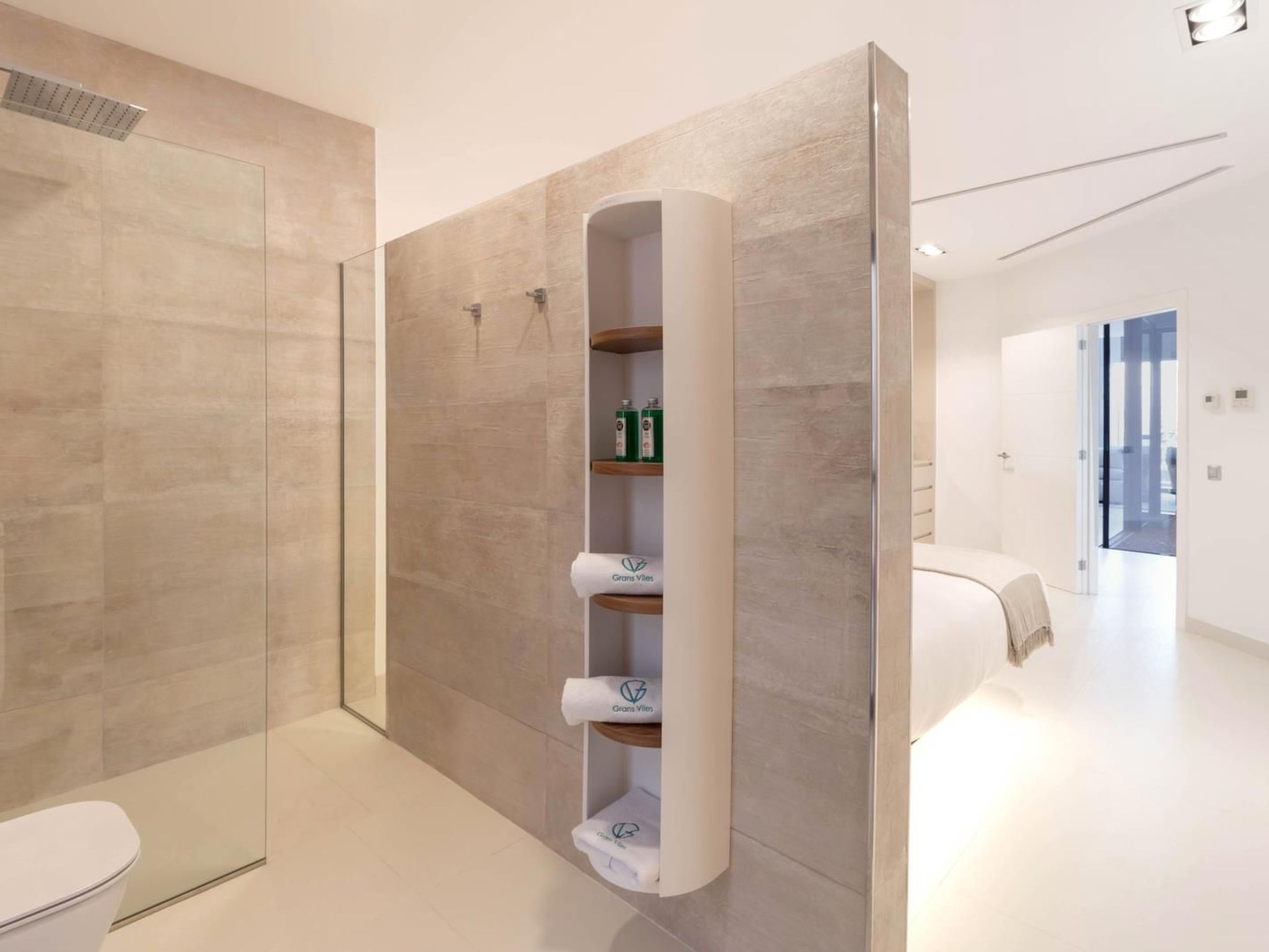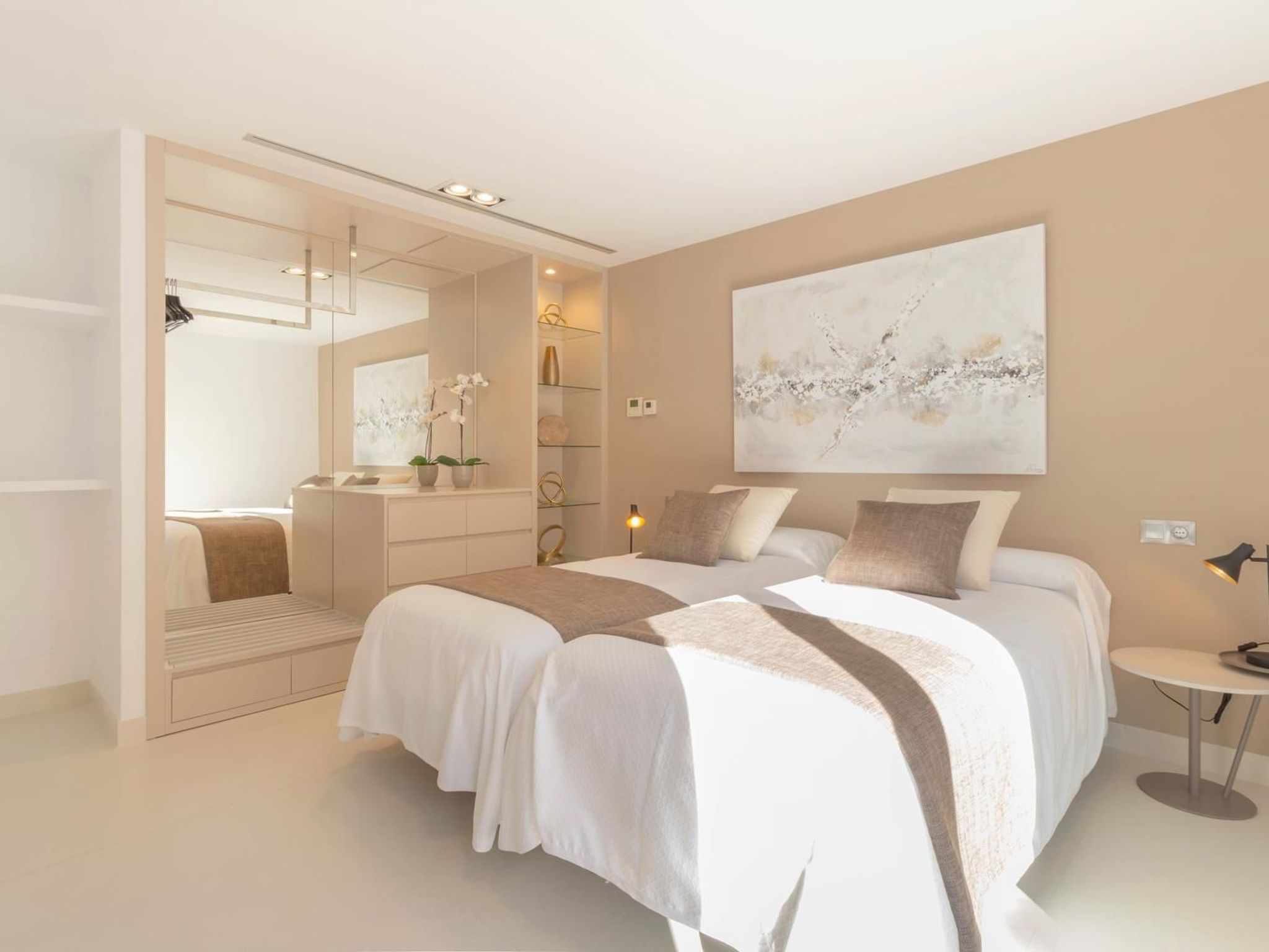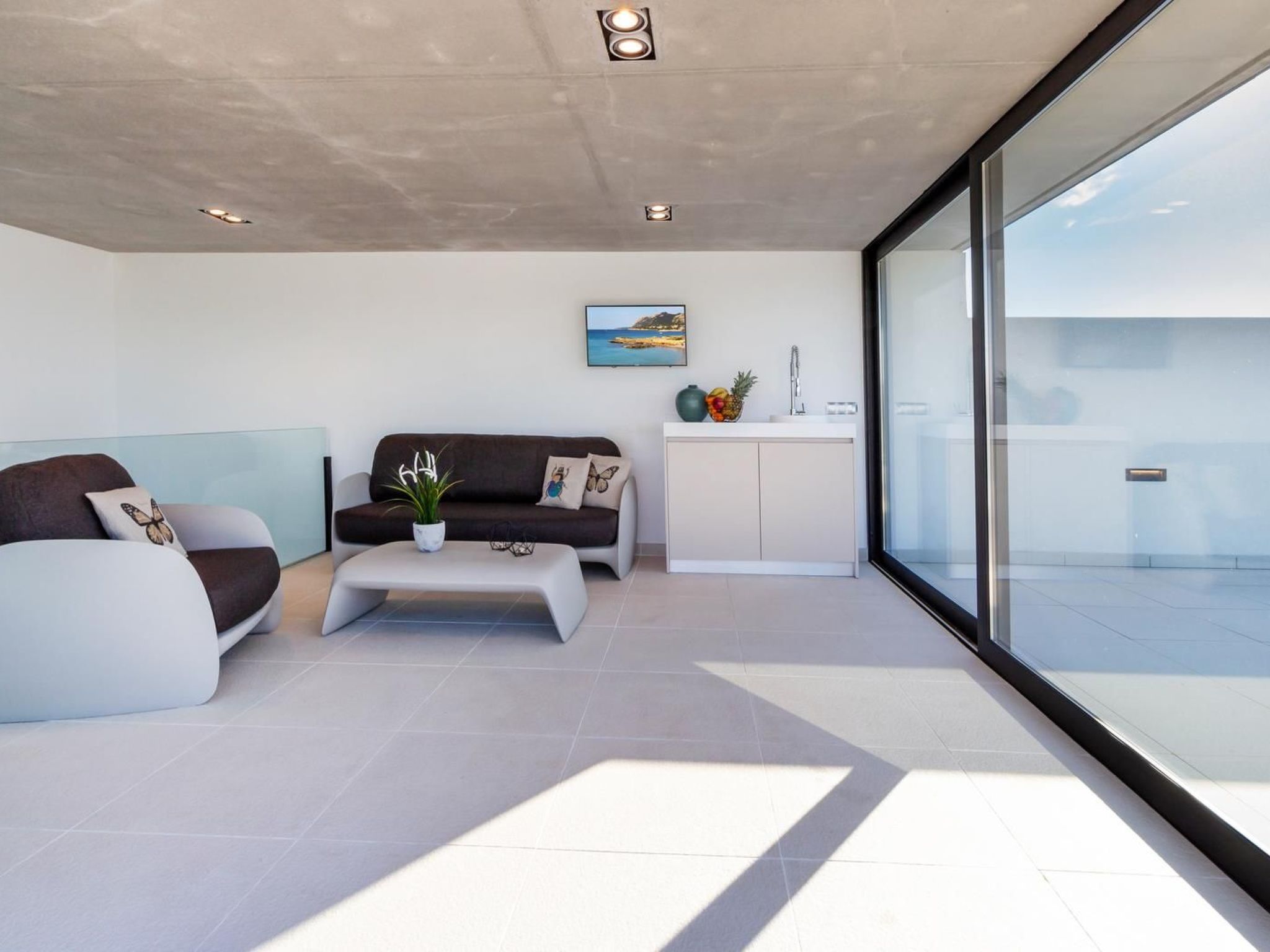 The house has an excellent architectural design, which is accompanied by a spectacular decoration and interior design. The quality of the furniture throughout the house stands out, with the presence of the best brands of high Italian, French, Scandinavian design... such as Cattelan, Lago, Ligne Roset, Arketipo... Behind this furniture there is the signature of great designers such as Philippe Starck, Claudio Dondoli, Marco Pocci, Andrea Lucatello, Sebastian Herkner, Mauro Lipparini, Giuseppe Viganò... The house stands out for its great luminosity and spaciousness, and the unconventional dimensions of the doors and windows are also surprising. Such as the single-leaf entrance doors, which are more than 1.70m wide and 3.50m high, or the garage door, which is almost 6m long. In addition, the privileged location of the house offers magnificent views of the Tramuntana mountain range. In order to be able to enjoy this splendid landscape from practically every corner of the property, the main façade has been equipped with 6 large windows, with the aim of framing the whole of the mountain. The largest single piece of glass is over 5m long and 3m high. The quality and design are still present in the kitchen, taps, bathrooms, toilets... signed by Porcelanosa, as well as in the electrical appliances with brands such as Bosch Neff... The terrace furniture, consisting of outdoor dining room, sun loungers, hammocks, rugs... is by Vondom. The lighting is from brands such as Foscarini, Artemide, Pulpo... In the centre of the house there is a centenary olive tree (more than 200 years old). The swimming pool is located on the rooftop, in order to maximize the great potential of the views, thus obtaining a panoramic view of practically the entire Sierra de Tramuntana mountain range and even the sea of the Bay of Alcudia. In addition, one of the walls of the pool is made of glass, which allows the light and the movement of the water to be reflected inside the house and at the same time the dining room and the living room can be observed from the bottom of the pool.