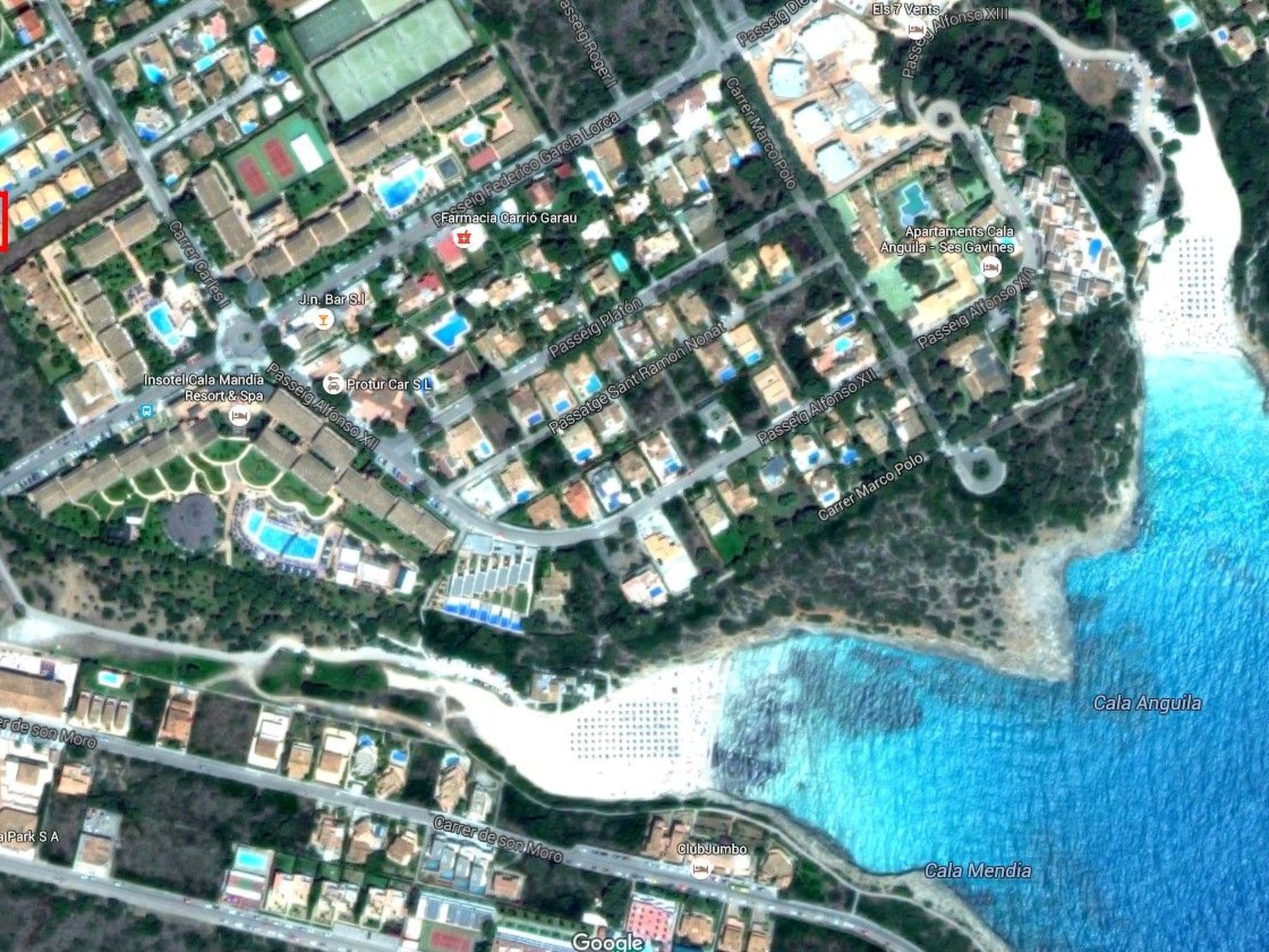 It is located close to Cala Mendia, so you can walk to the beach. Cala Mendia is a residential area with only one hotel so there is no overcrowding.