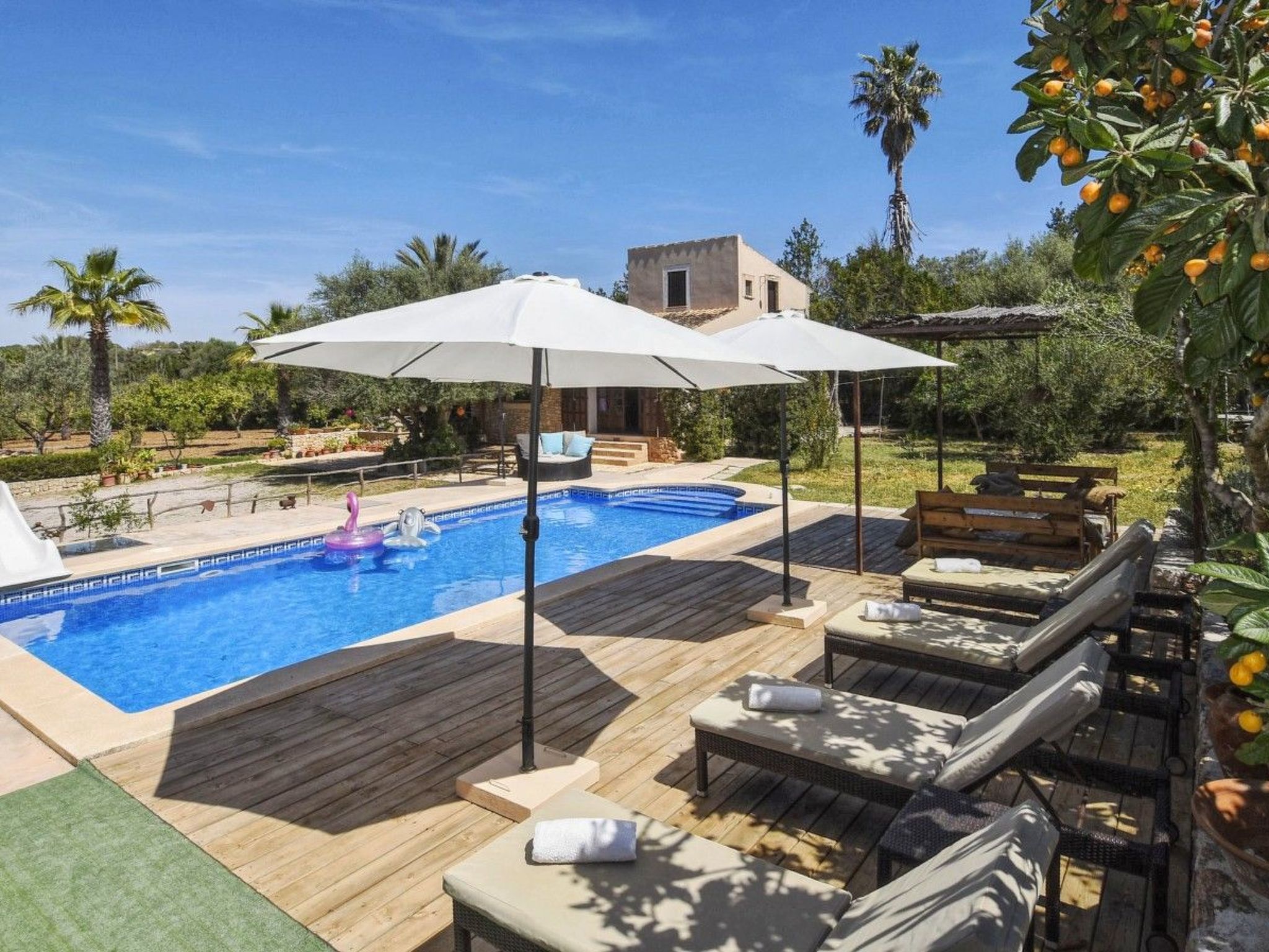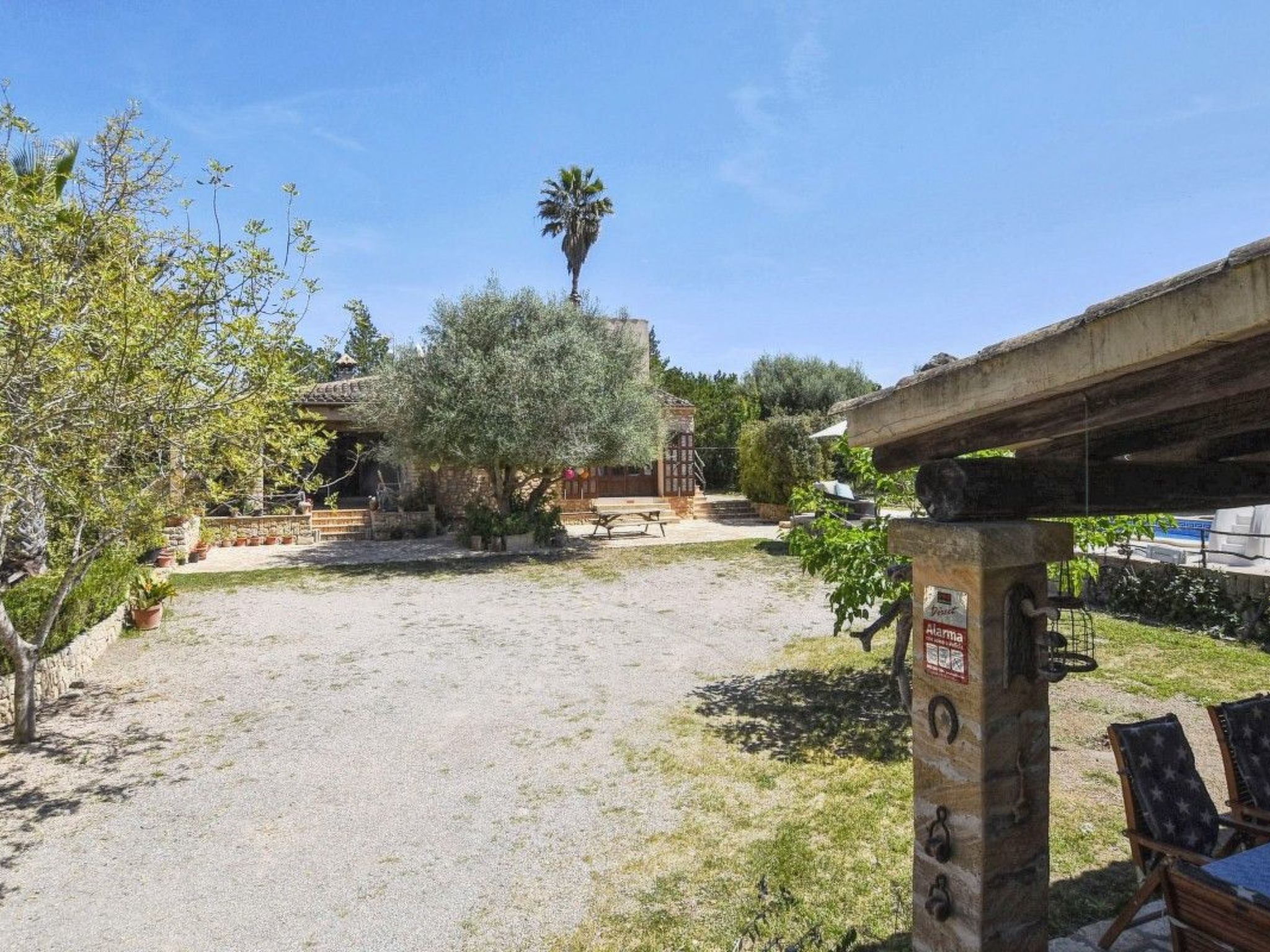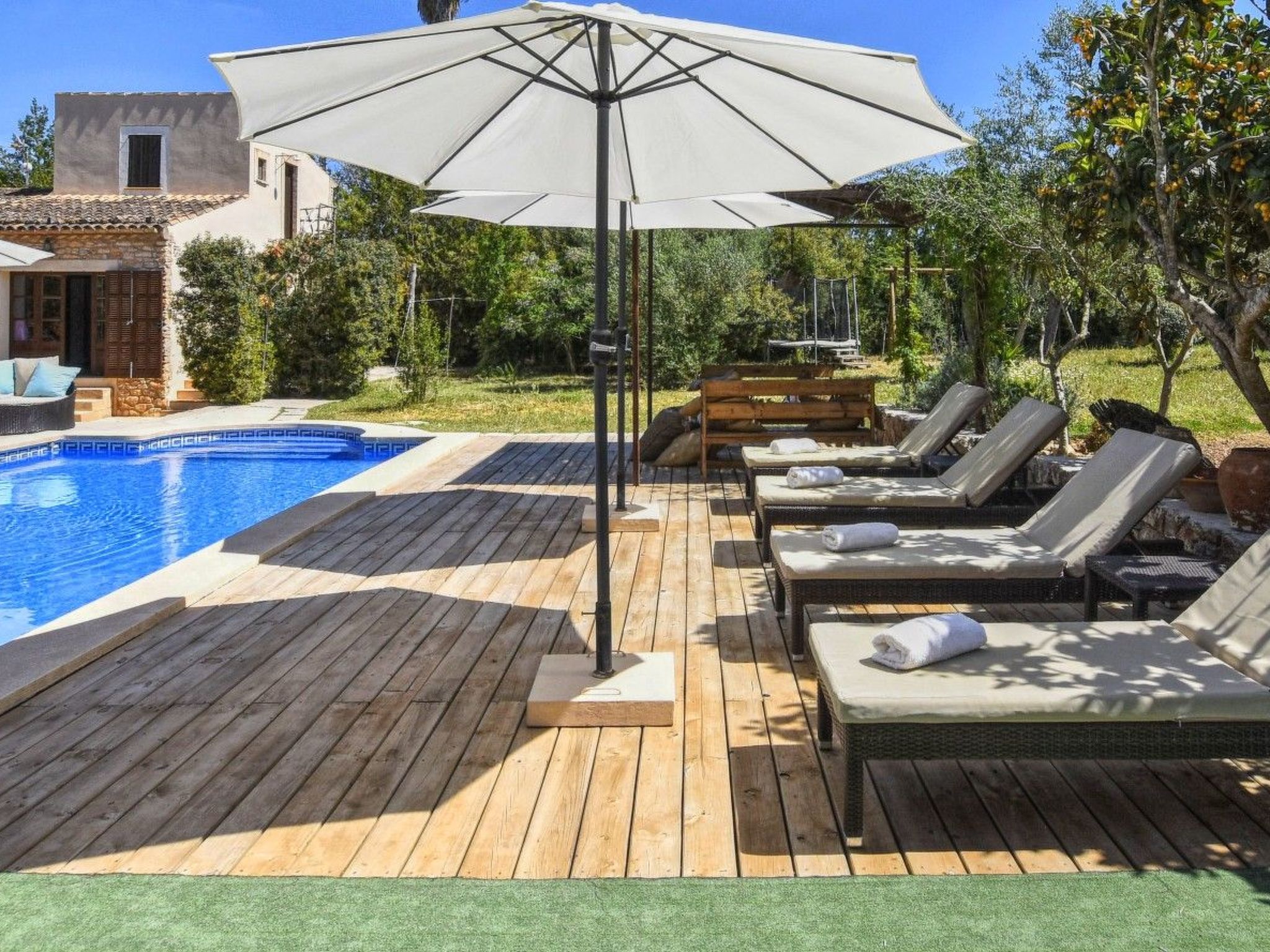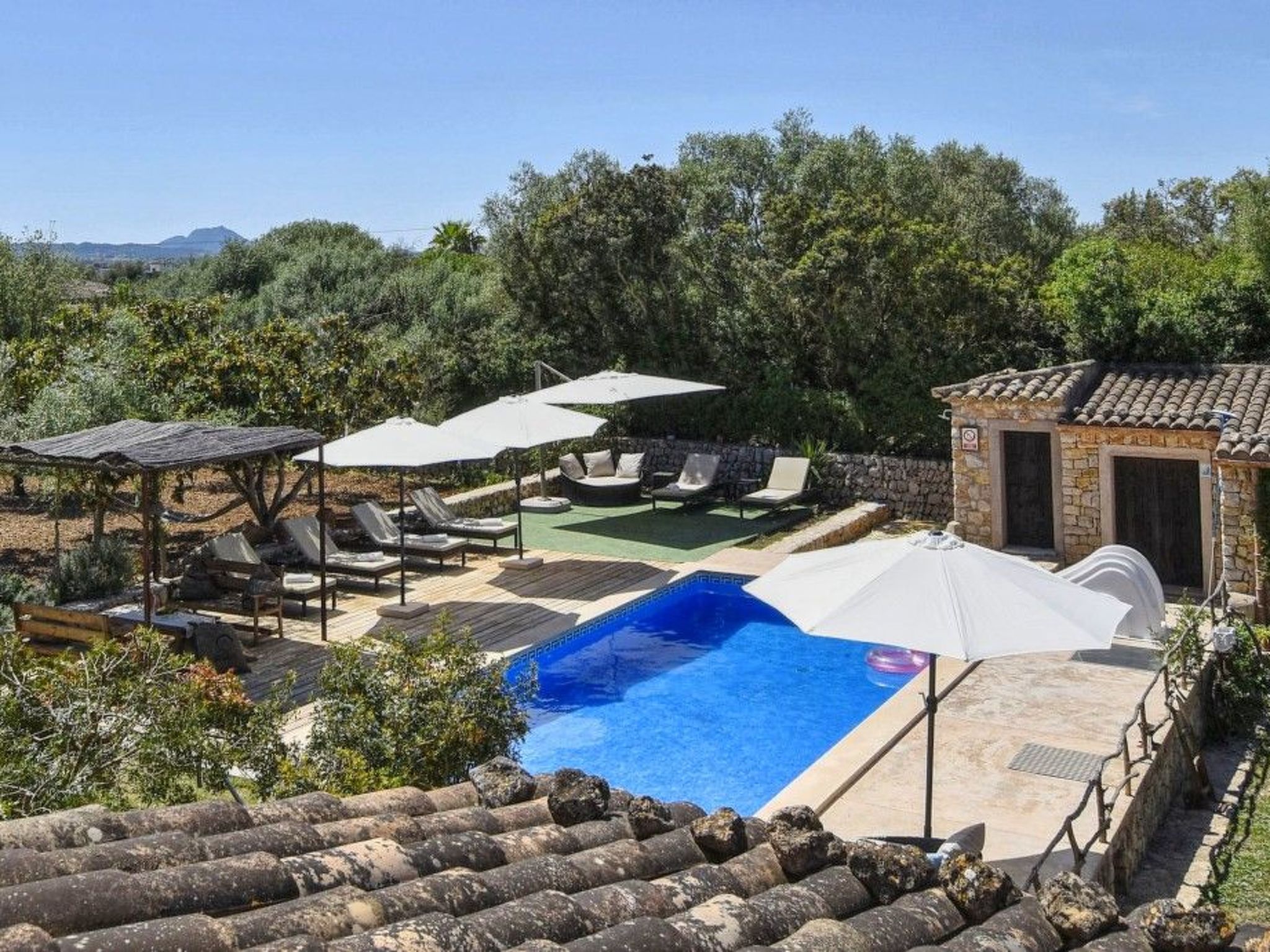 This pretty country estate is located in a wonderfully quiet location close to the town of Manacor, Mallorca's second largest city on the east coast. With a living area of ​​around 115 m², the house offers in total three air-conditioned double bedrooms (1 double bed, 2 single beds each) and two bathrooms with shower, so there is enough space for up to 6 people. The living room is equipped with WiFi Internet, satellite TV, an adjacent dining table and the open-plan kitchen is equipped with a ceramic hob, oven, refrigerator, microwave, coffee maker and dishwasher. Two of the bedrooms and a bathroom are located on the ground floor. The third bedroom is accessed via an external staircase to the upper floor, which has its own bathroom with shower. From the entrance of the property there are four steps that go down to the beautiful garden with a covered barbecue and dining table. From here you reach the highlight of the Finca, the adjacent terrace with a covered seating area made of wooden benches, many parasols, corner sofas and of course sun loungers. The private 9m x 4.5m pool (depth 0.90m x 1.90m) invites you to cool off and, behind the pool terrace, there is a hammock between the trees to relax in the shade. Next to the terrace there is also a guest toilet with sink and two outdoor showers. The surroundings of the estate offer plenty of peace and tranquility to relax and in and around the nearest town of Manacor there is a large sn of very good restaurants, golf courses, various shops and supermarkets. The nearest beaches are Mallorca's popular coves in and around Porto Cristo, and Sa Coma and Cala Millor are also just a 10-15 minute drive away. Simply a great and beautiful property for a perfect vacation