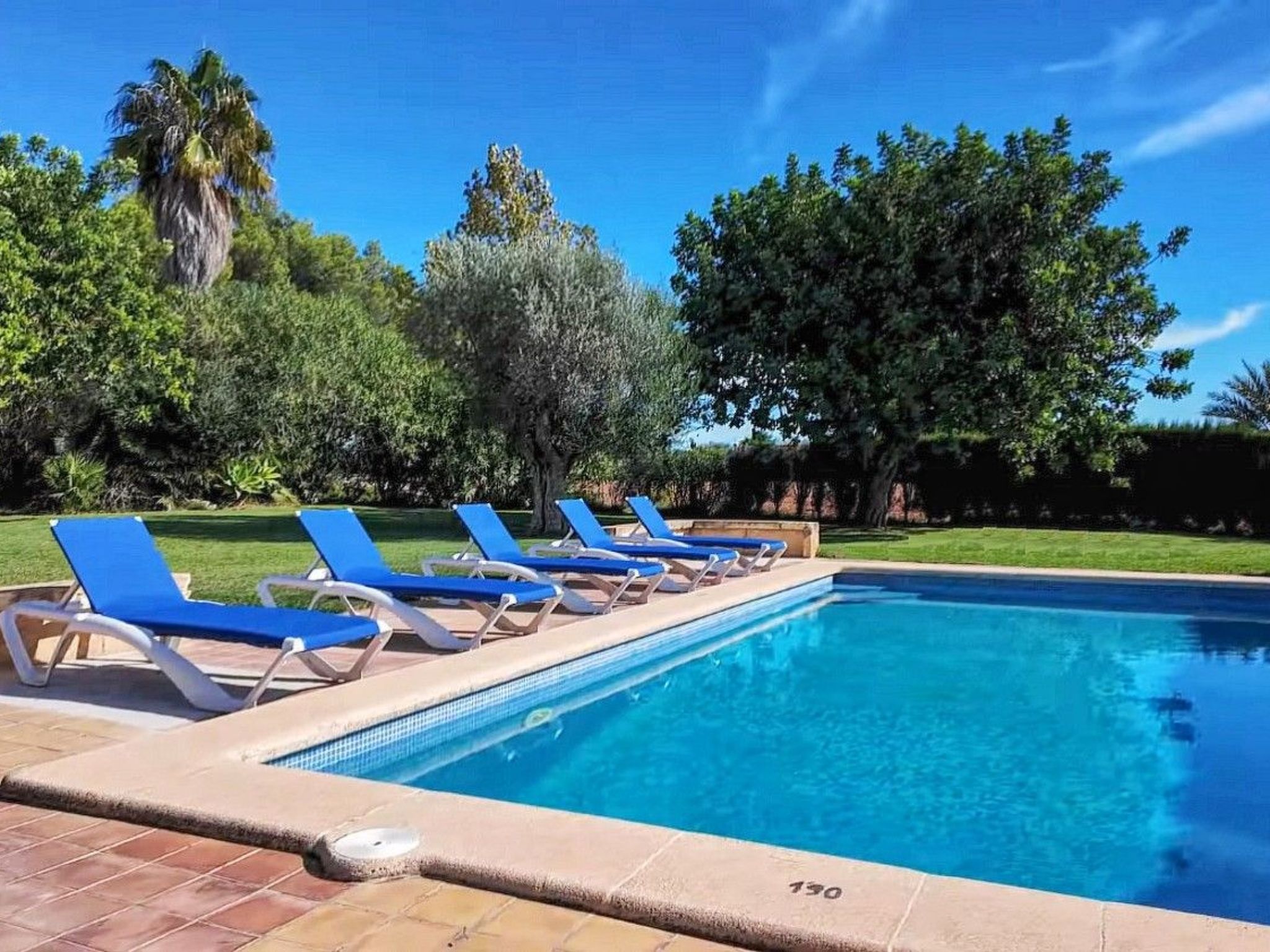 The house, which can accommodate 8 persons, offers approximately 280 m² of living space on two floors, a living-dining room, a fully equipped kitchen with dishwasher, four spacious bedrooms ( 2x double bed, 2x single bed ) and a total of three bathrooms ( 1x ensuite bathroom ). Two bedrooms are on the upper floor. All bedrooms and the living room have their own air conditioning. Next to the pool there is also a covered terrace equipped with barbecue, sofas and dining table.