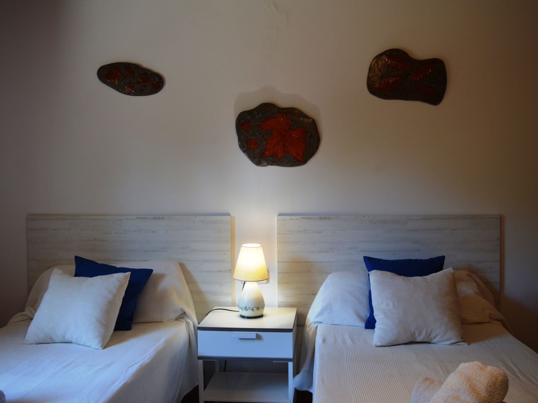 One of the bedrooms has a double bed of 1,50 m and the other two have two single beds of 0,90 m each.