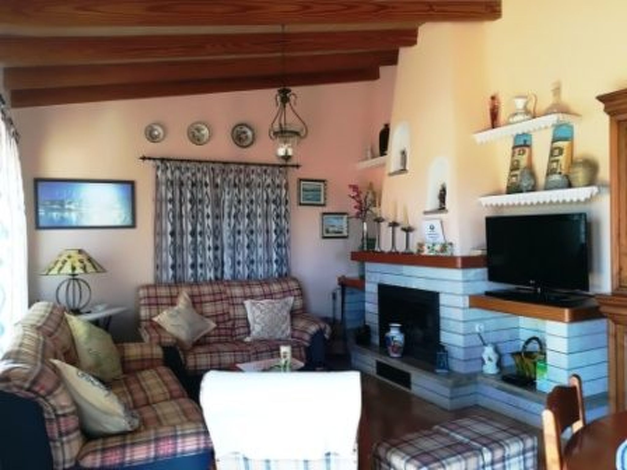 On the floor there is a living-dining room with fireplace, a kitchenette, a bathroom with bathtub and two bedrooms.