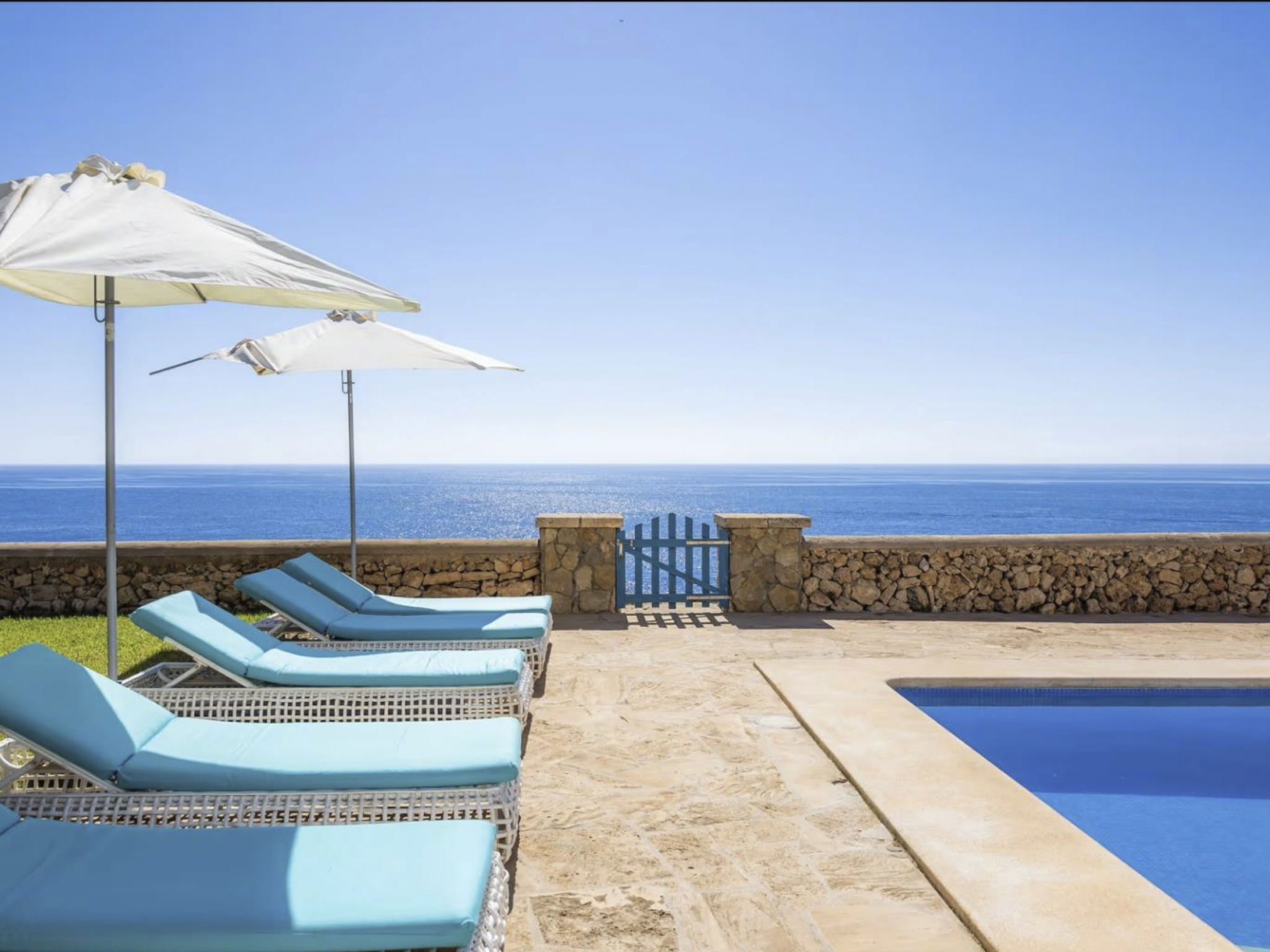 Casa Villa Turquesa located directly by the sea with pool, garden and with the best views, own rock access, 2 km to the sandy beach or the harbour.
