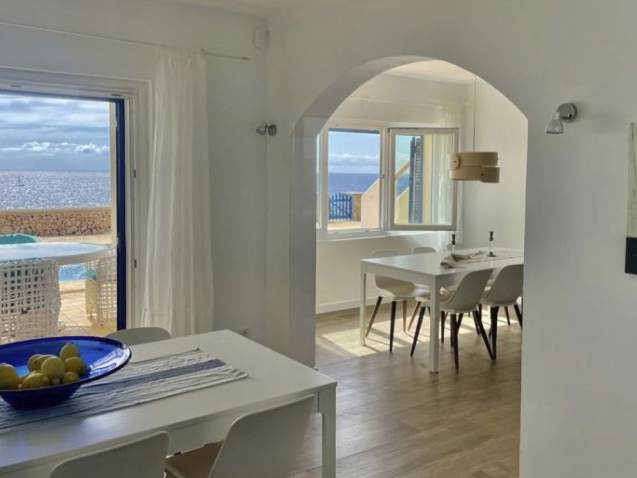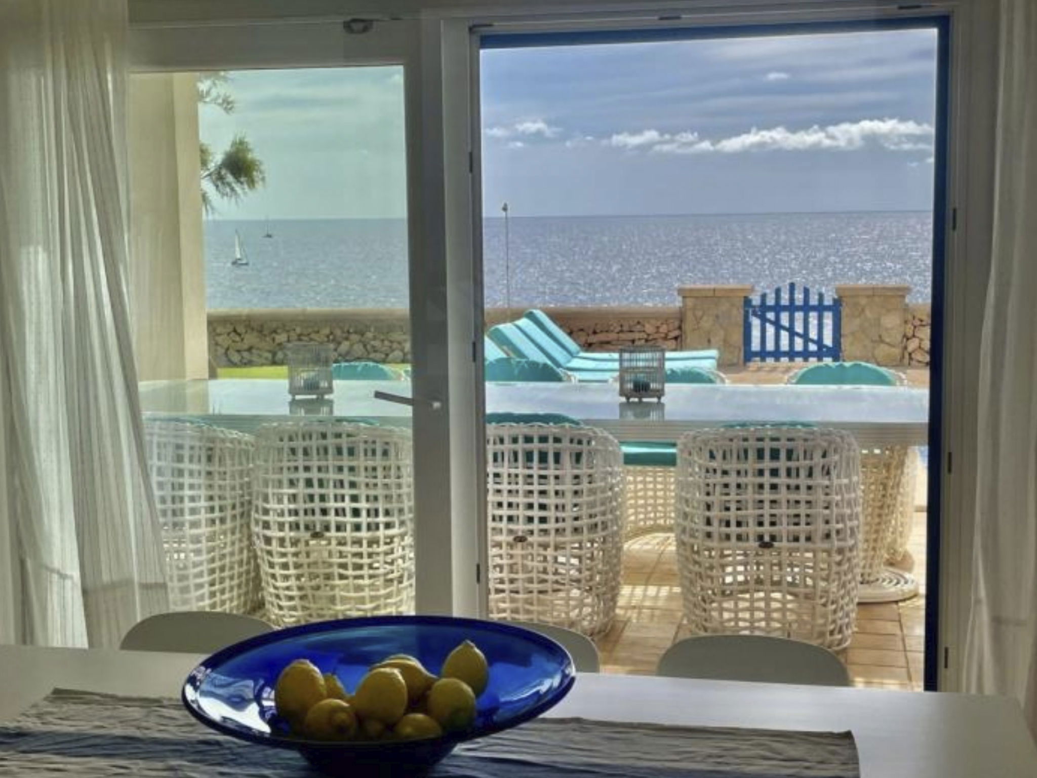 Villa Turquesa - a dream home by the sea in Portocolom for 14 people. Spectacular views and distant vistas. The exclusive location makes this seven-bedroom holiday home an exceptional accommodation in Portocolom. The spacious living area, consisting of a lounge with fireplace and various seating areas, dining area and a kitchen with dining area, offers breathtaking views over the pool terrace and to the sea.