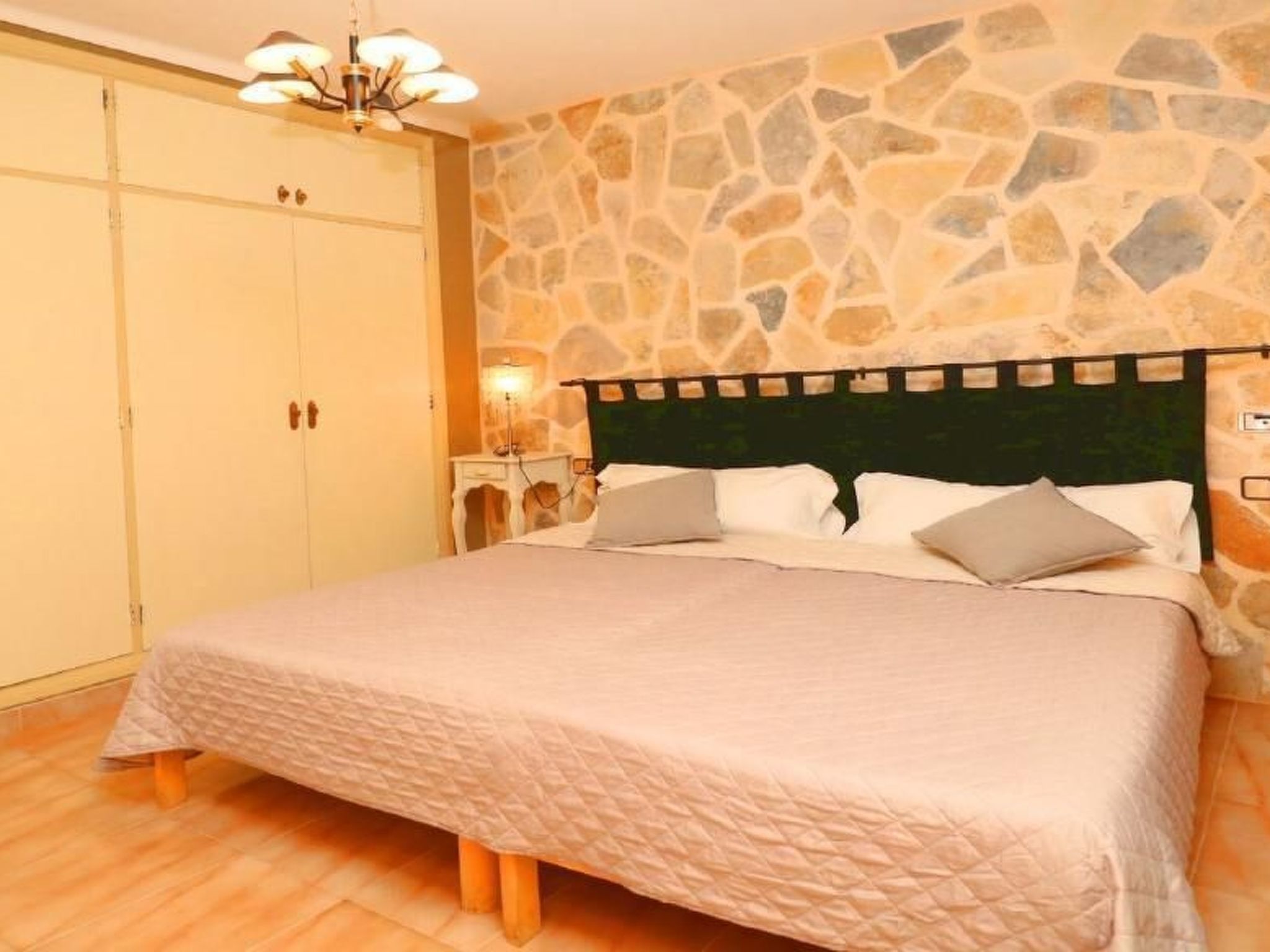 Finca Esmaeralda - situated in the countryside near Campos, is the ideal holiday home if you need a lot of space. The residential buildings consist of a main house and a casita and offer space for up to 9 people. There are two separate flats in the main house, which can be separated if required to create two self-sufficient accommodation units. one of the flats in the main house of Finca Esmeralda consists of a bathroom and two bedrooms, one of which is equipped with a bunk bed and the other with a double bed (150x200). This flat also has a kitchen and a spacious living and dining area with TV/SAT and fireplace, while the other flat has two bathrooms and three bedrooms, one of which has an extra single bed and the other two have double beds. This flat also has a kitchen with an adjoining living area with SAT TV. In the grounds of Finca Esmeralda there is a pool with terrace and sun loungers. A special highlight of Finca Esmeralda is the covered outdoor kitchen, which has a brick barbecue and a cooking area. A dishwasher and fridge are also included, making it the ideal place for extended barbecues.