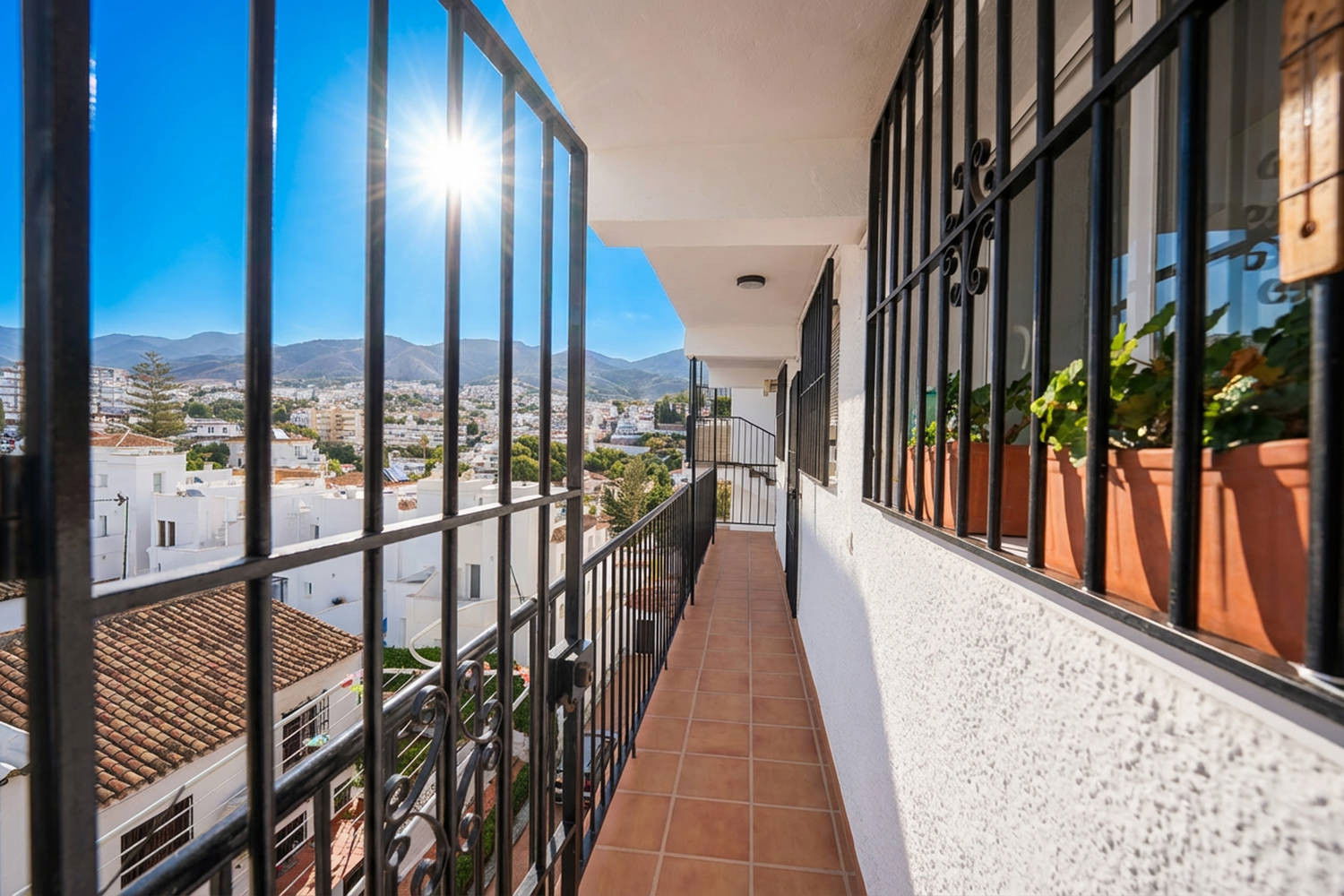 Indoor and outdoor living: The property stands out for its glazed terrace, one of the most pleasant spaces in the flat. From here you can enjoy open views of the typical houses of Nerja and the sea, in a peaceful setting ideal for breakfast, reading or relaxing at the end of the day.
