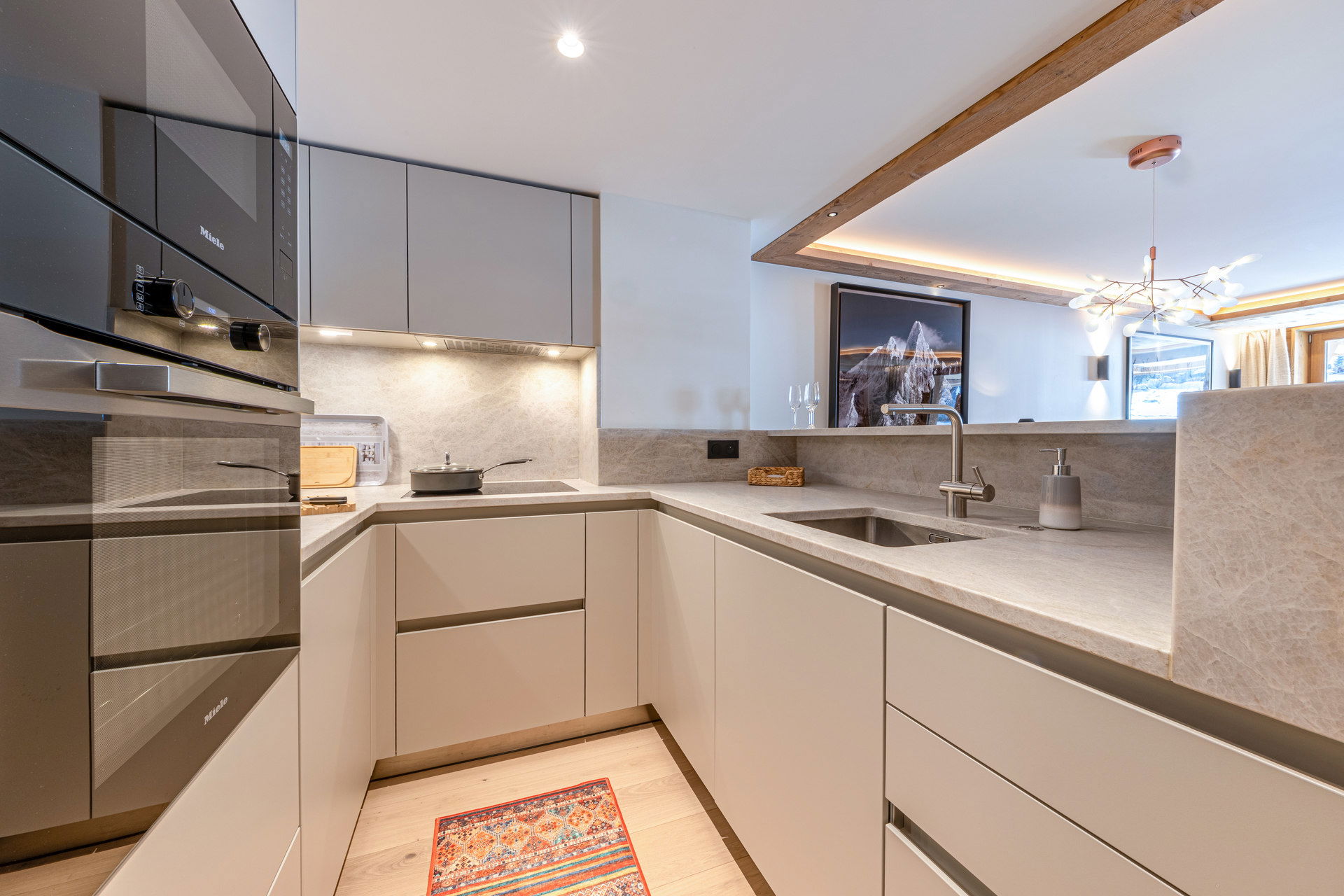 Equipped with a dishwasher, oven, induction hob, extractor hood, microwave, refrigerator with freezer.
