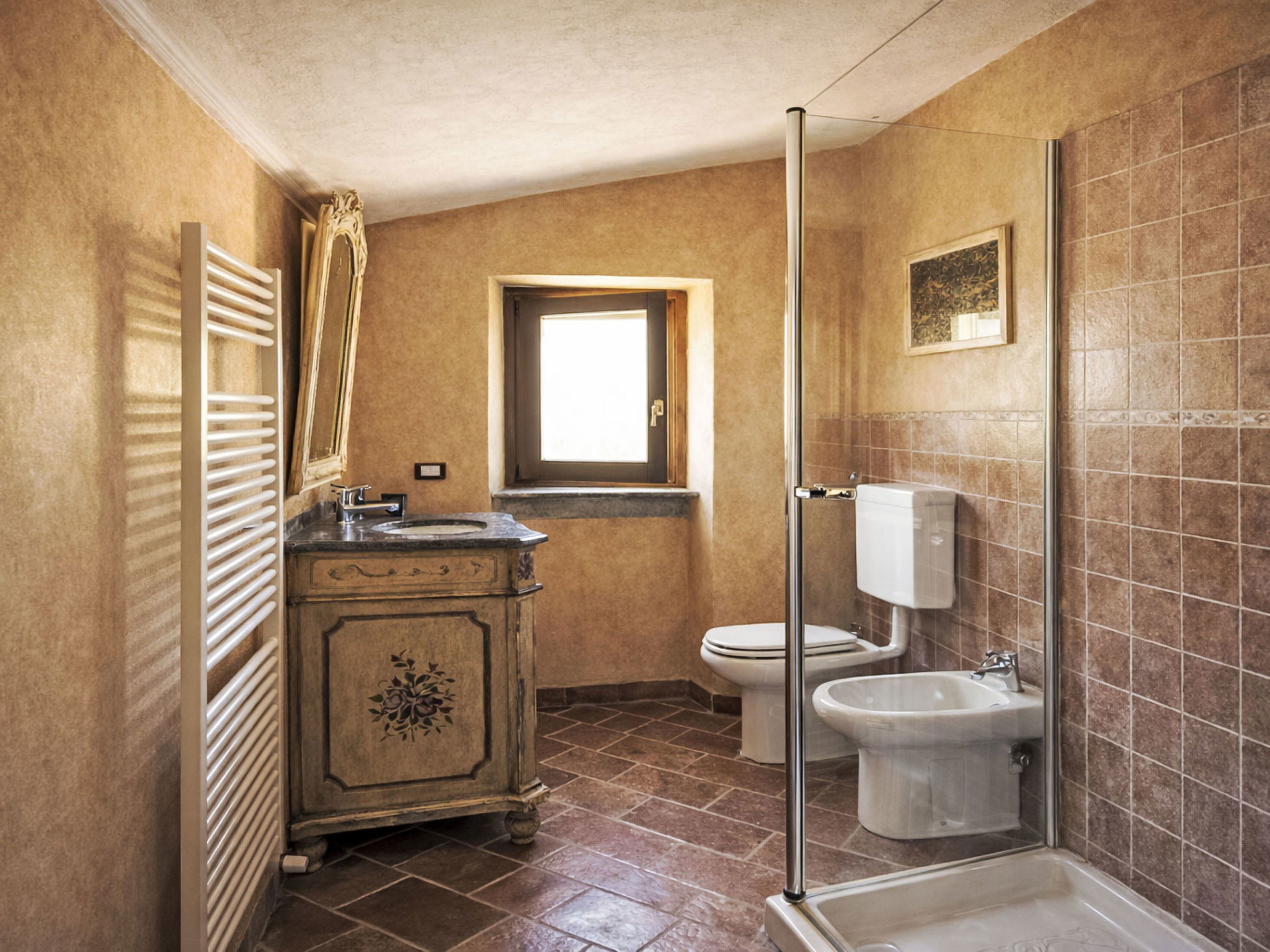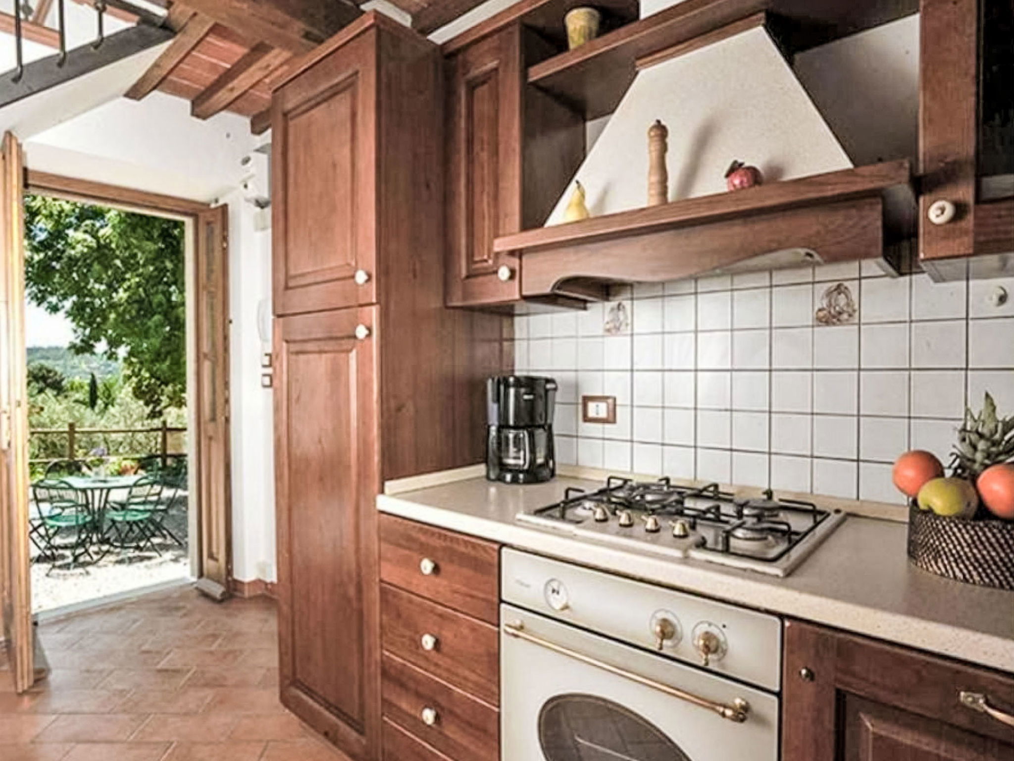 "Il Cottage Roccaio", 4-room house 150 m2 on 2 levels. Comfortable and cosy furnishings: living/dining room with 1 double sofabed and open-hearth fireplace (only for decoration), dining table and TV. Exit to the patio. 1 room with 1 double bed (160 cm, length 190 cm), air conditioning and forced-air heating. Large kitchen in the entrance (oven, dishwasher, Gas stove, 4 gas rings, kettle, electric coffee machine). Upper floor: 1 room with 2 beds, air conditioning and forced-air heating. 1 room with 1 double bed (160 cm, length 190 cm), air conditioning and forced-air heating. 3 showers/bidet/WC. Heating available only from 15.10. to 15.04. Patio roofed. Barbecue, sitting area. View of the swimming pool. Facilities: washing machine, iron. Internet (WiFi, free). Parking. Maximum 1 pet/ dog allowed. The pool mentioned in the description is for private use. IT051012B5XTM2TE5Q