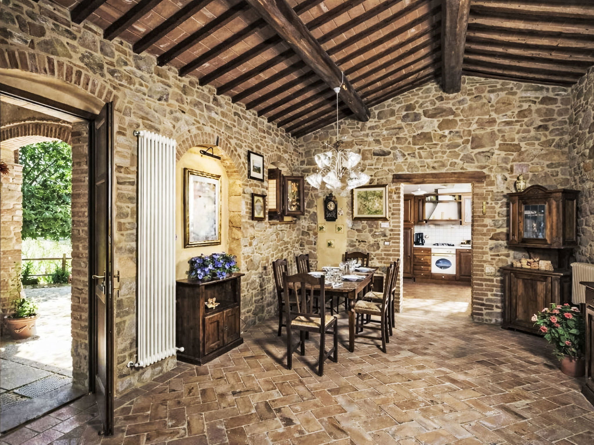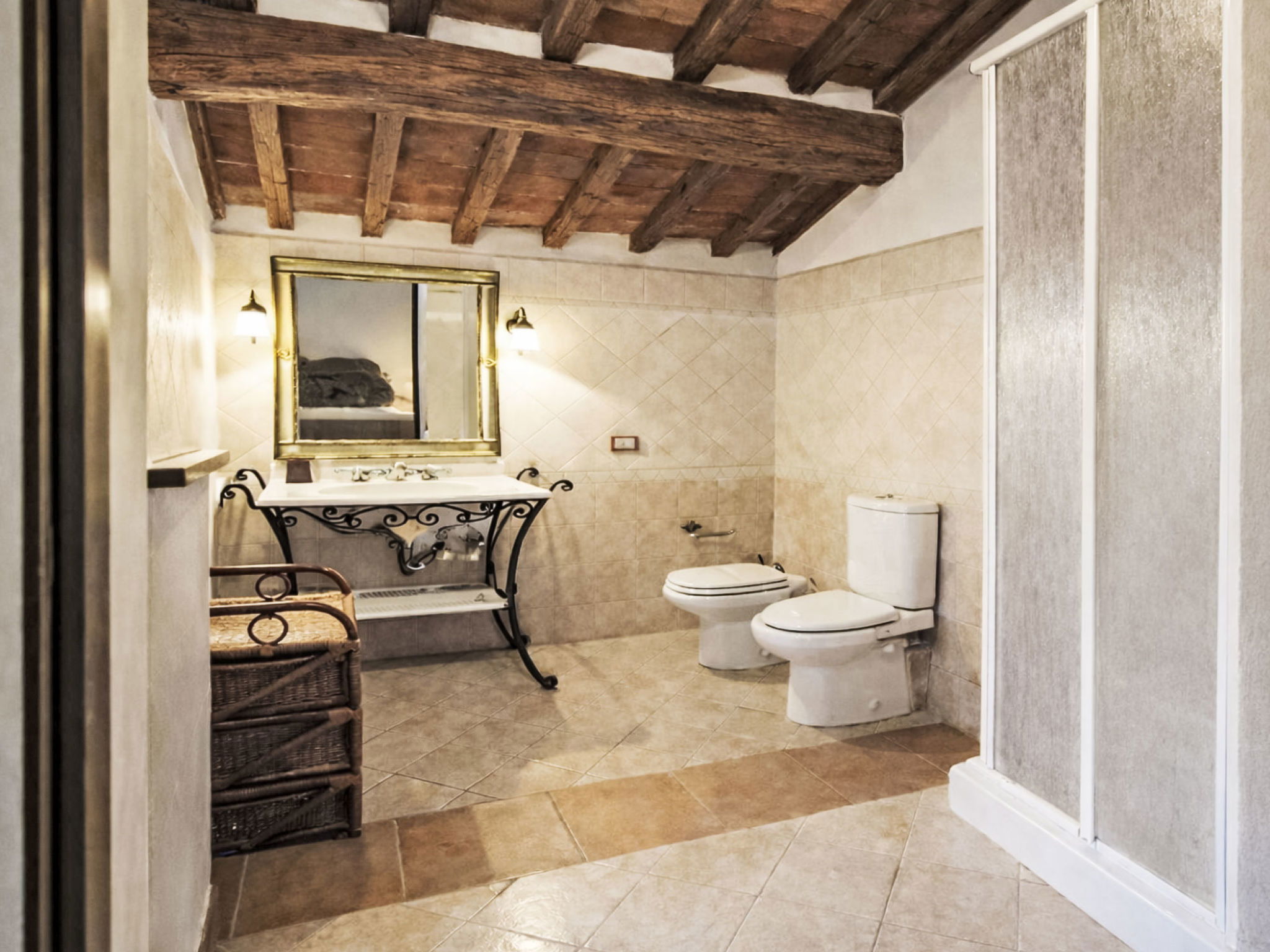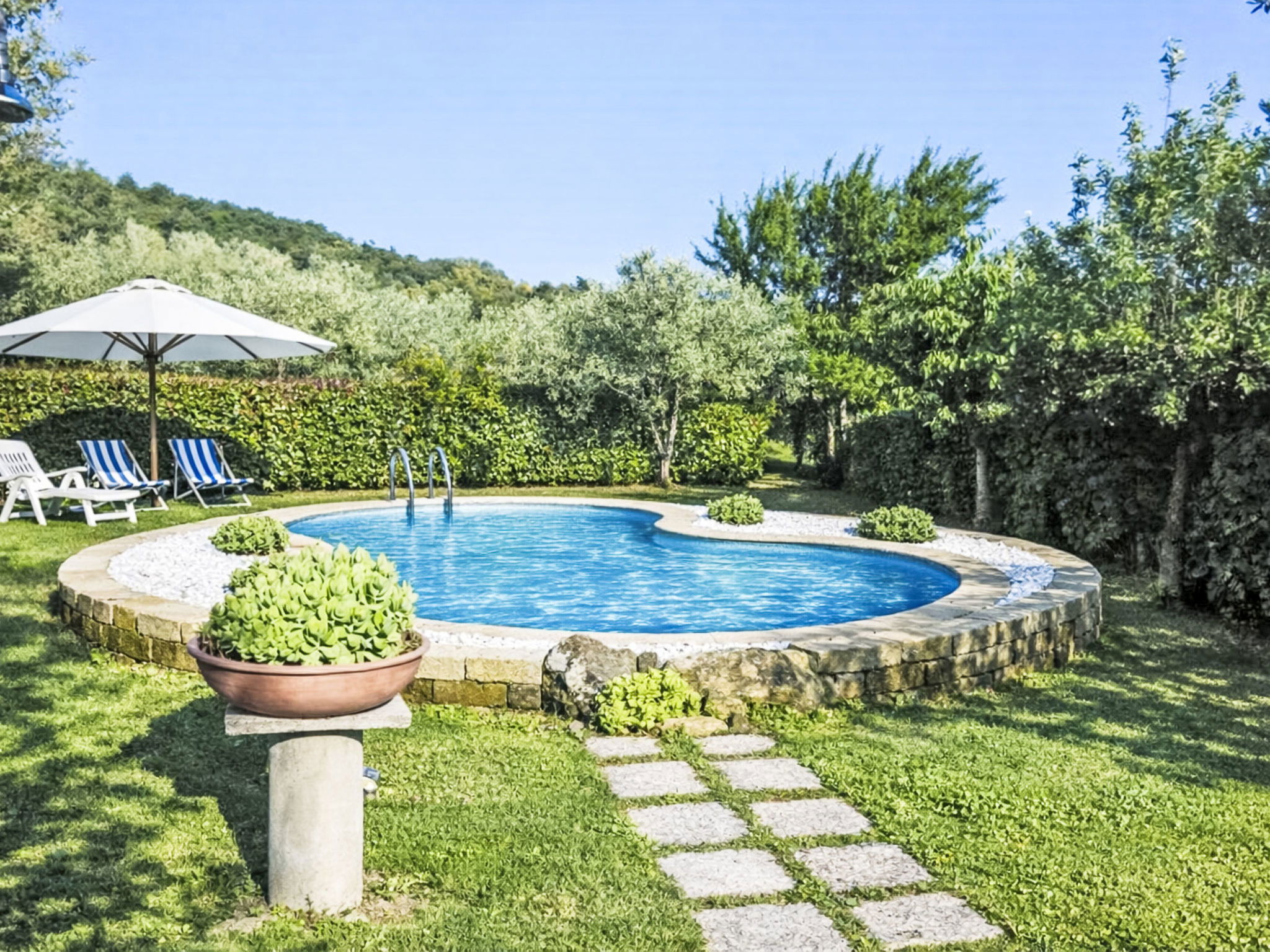 Cosy, rustic, comfortable semi-detached house "Cottage Roccaio", 2 storeys, surrounded by fields and vineyards. 3 km from the centre of Castiglion Fiorentino, in a secluded, quiet position. Private: well-kept garden (fenced), swimming pool (8 x 4 m, depth 150 cm, seasonal availability: 01.May. - 30.Oct.) with salt water. Pool maintenance by the owner/gardener. In the house: laundry, washing machine. Motor access to the house (600 m via unmade road). Parking on the premises. Grocery 2 km, supermarket 4 km, restaurant 3 km, bus stop 3 km. Nearby attractions: Cortona 11 km, Arezzo 22 km, Montepulciano 38 km, Firenze 100 km. Well-known lakes can easily be reached: Lago Trasimeno 29 km. Please note: car recommended. The owner lives on the same property. The owner has a dog.
