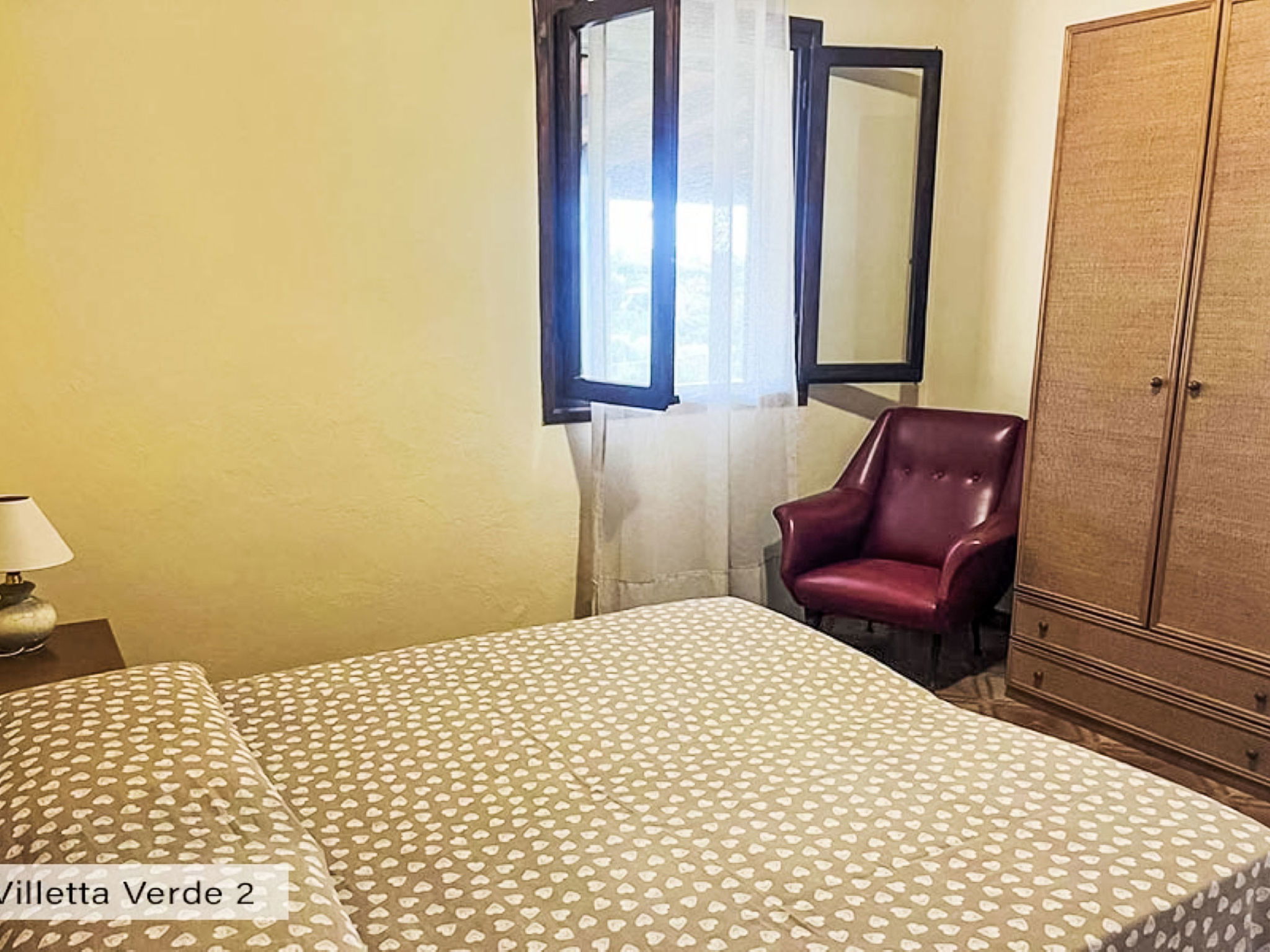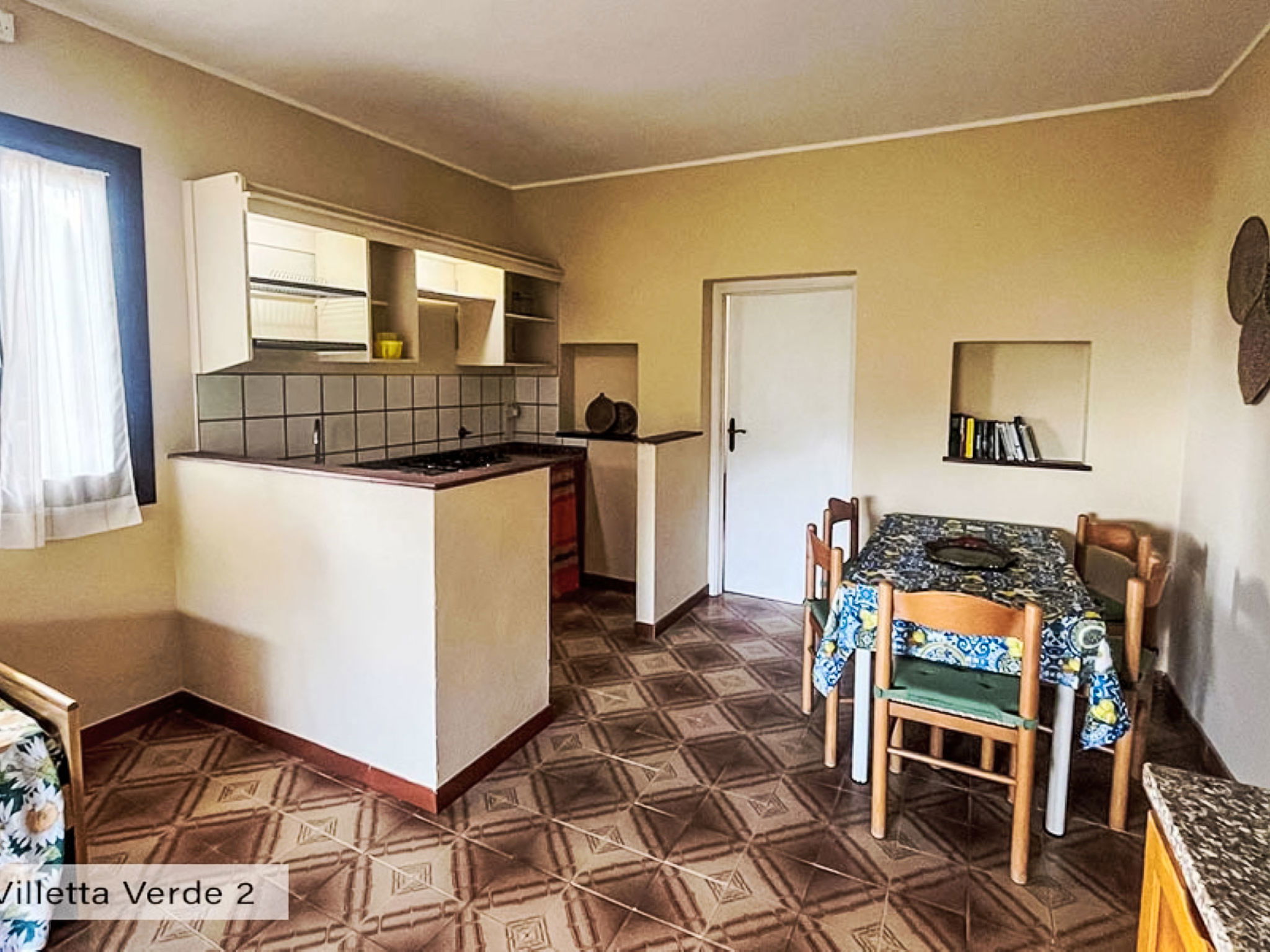 "Villetta Verde 2", 3-room semi-detached house 60 m2, on the ground floor. Practical furnishings: living/sleeping room with 1 double sofabed, dining table, kitchen corner and TV. Exit to the terrace. 1 double bedroom with air conditioning. 1 room with 2 beds " 300 m. Nearby attractions: Madonna delle Grazie (beach) 800 m, Porto Azzurro 8 km, Straccoligno - Naregno 6 km, Barabarca 5 km. Please note: car recommended.
