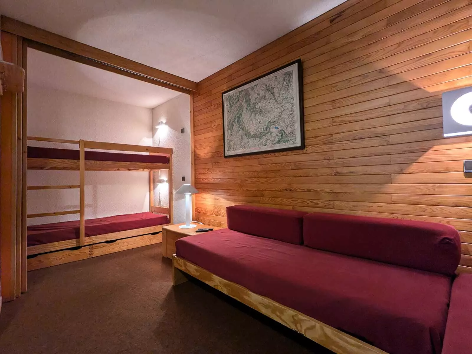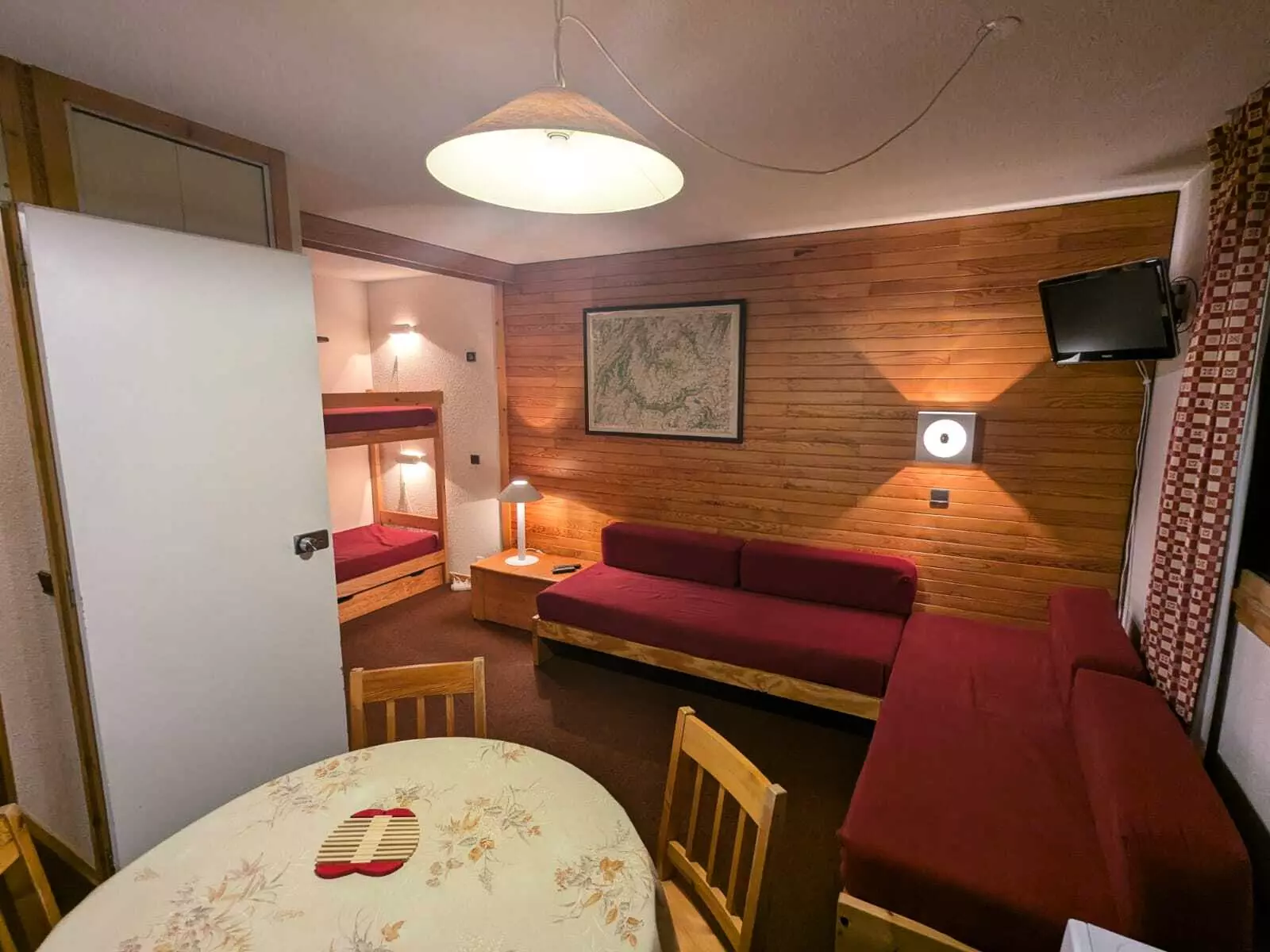 Living room: 2 sofa beds + bunk beds (4 beds in total)