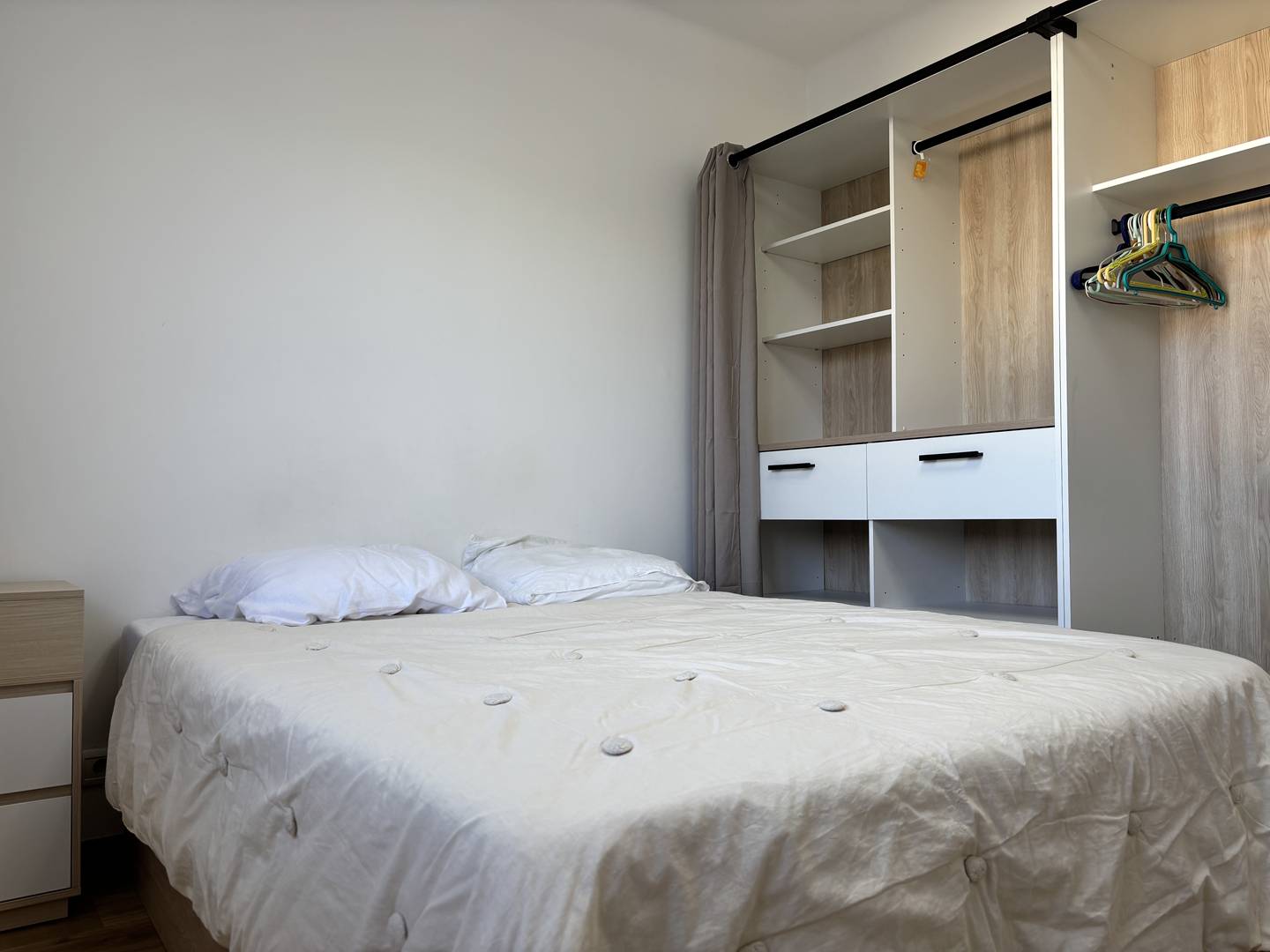This 3-room located in a secure residence with collective parking, is composed of an entrance hall with storage leading to a nice living room with a double bed, its separate fitted and equipped kitchen (oven, hob, hood), a bedroom with a double bed, a bathroom, a separate toilet. a balcony.