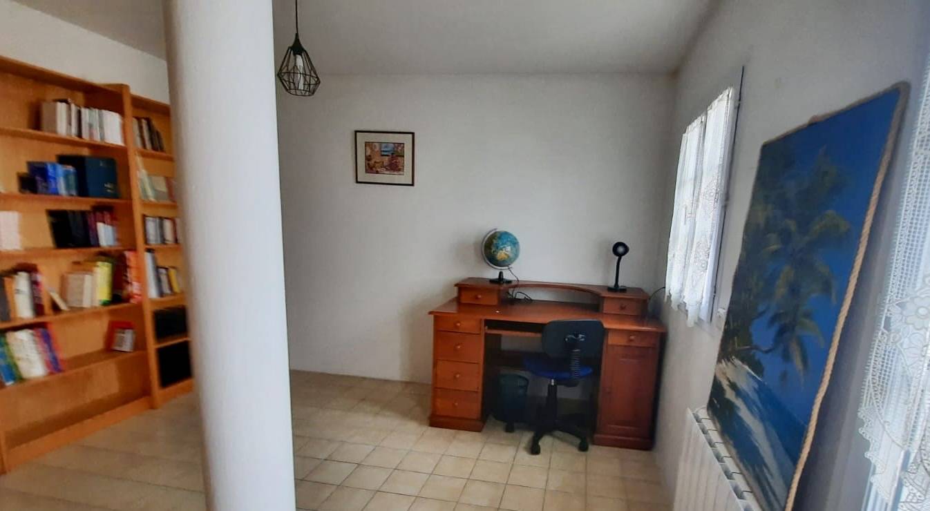 Family house with enclosed garden that can accommodate up to 8 people, comprising on the ground floor a living room with TV, a fitted kitchen with dining area, a shower room, a separate WC, a hallway with the stairwell, a games room or office, a second small shower room as well as two bedrooms, one with a double bed in 140 and the other with two single beds in 90, a WC; upstairs, two additional bedrooms each equipped with a double bed in 140 with wardrobe.