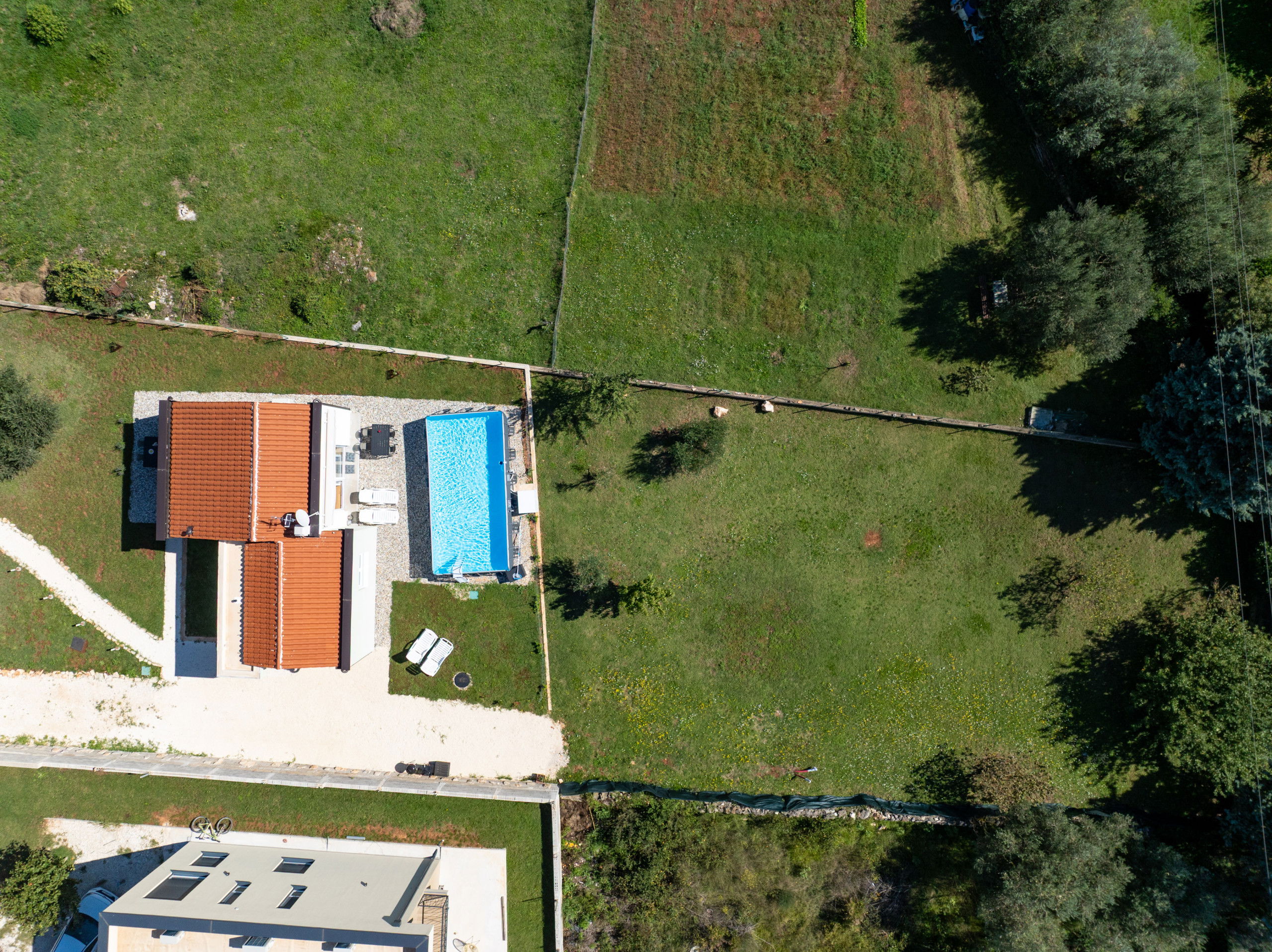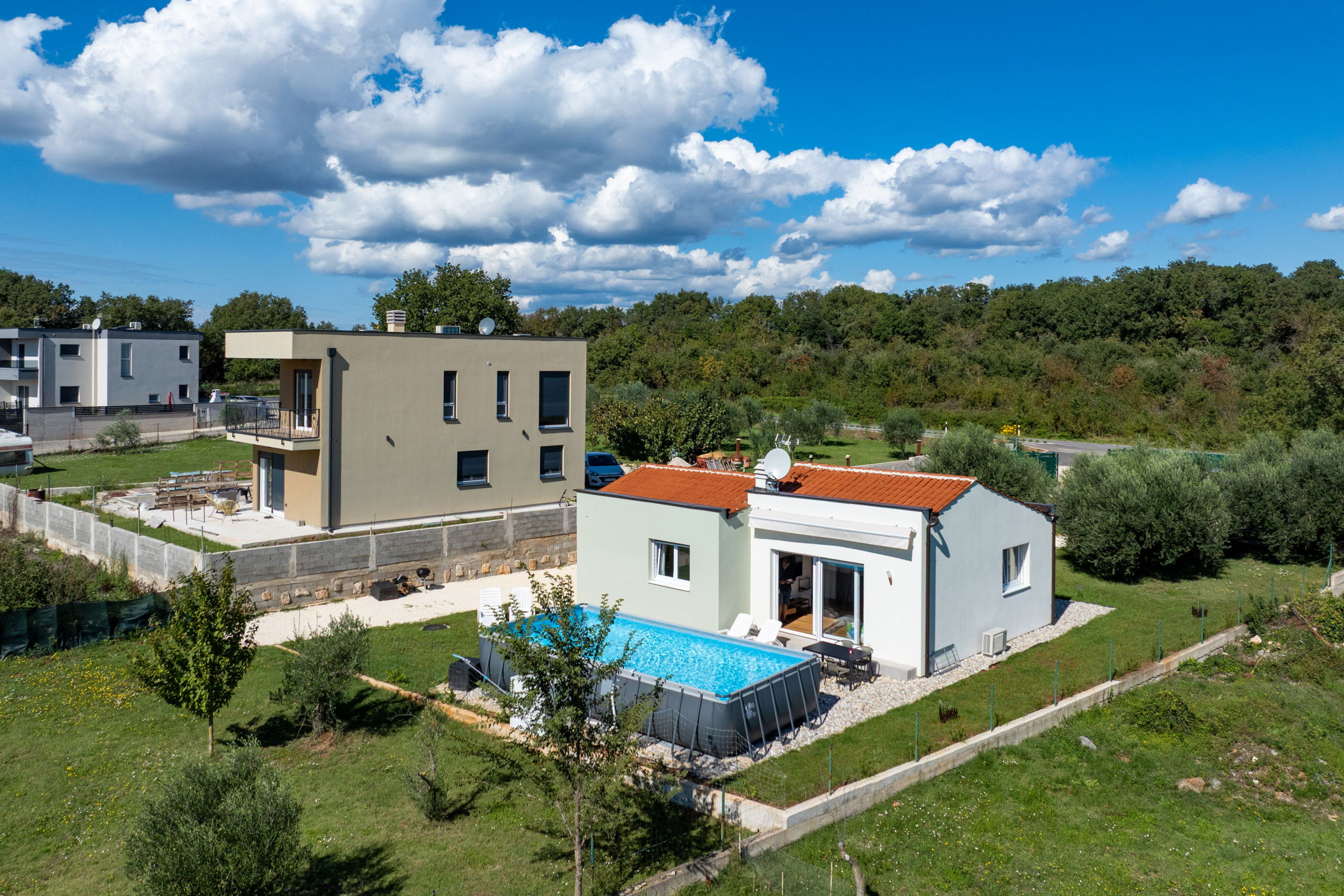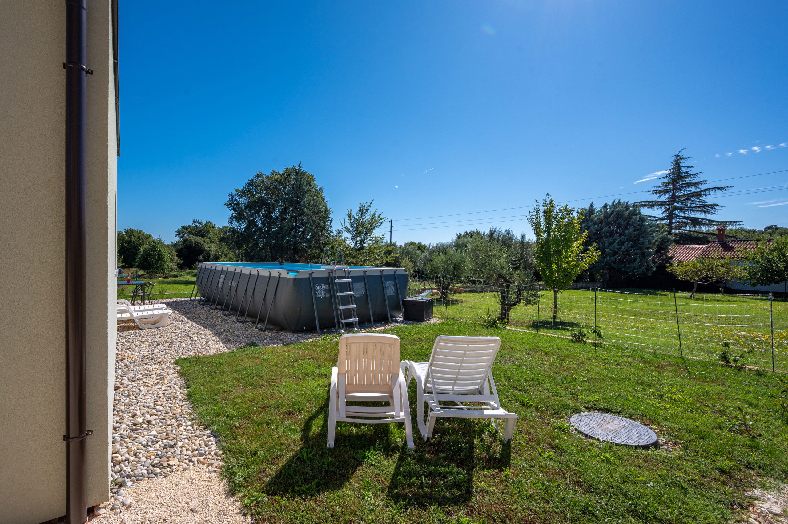 A private pool and shaded terrace offer the perfect space to relax during warm days and pleasant summer evenings.