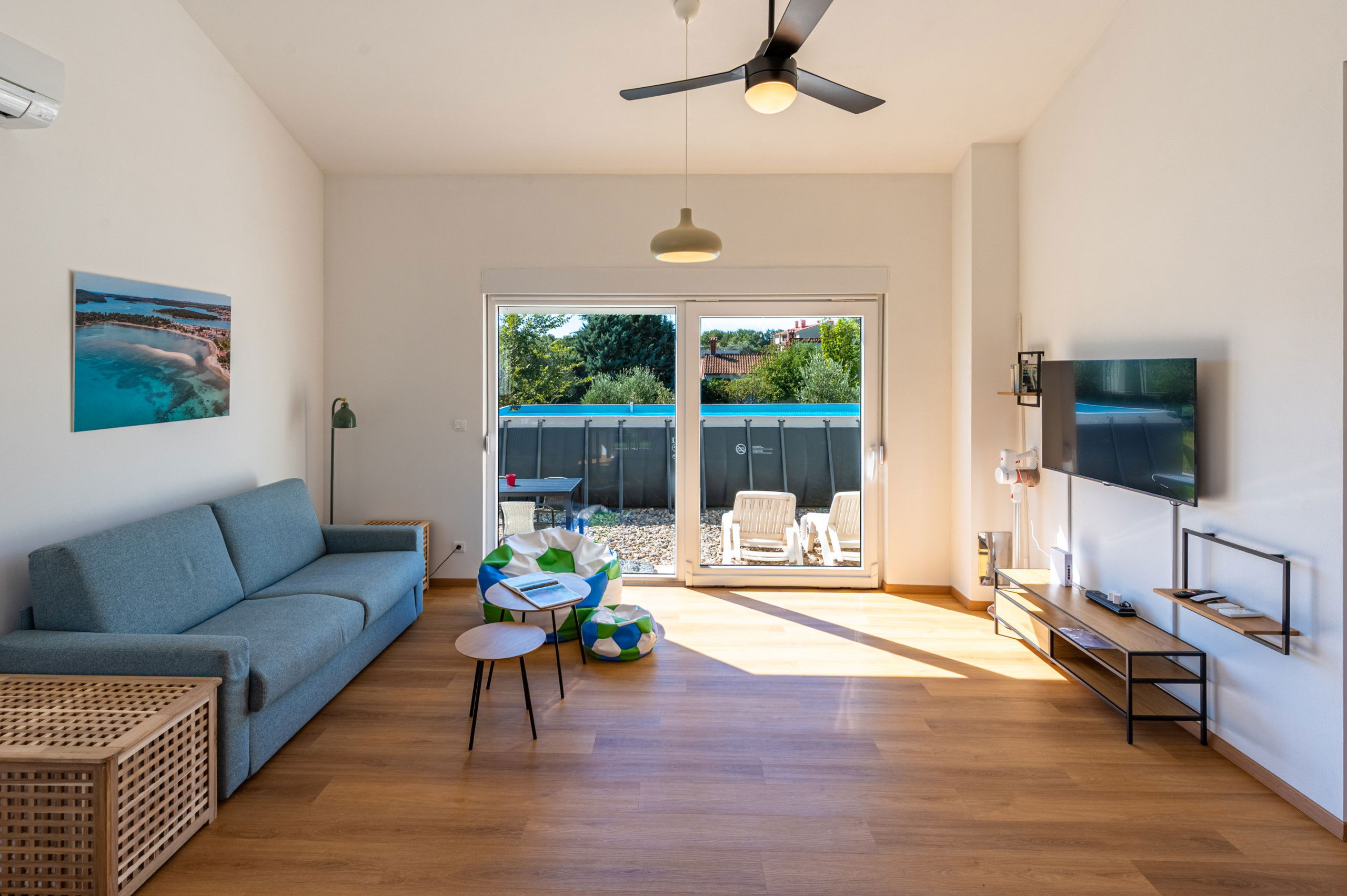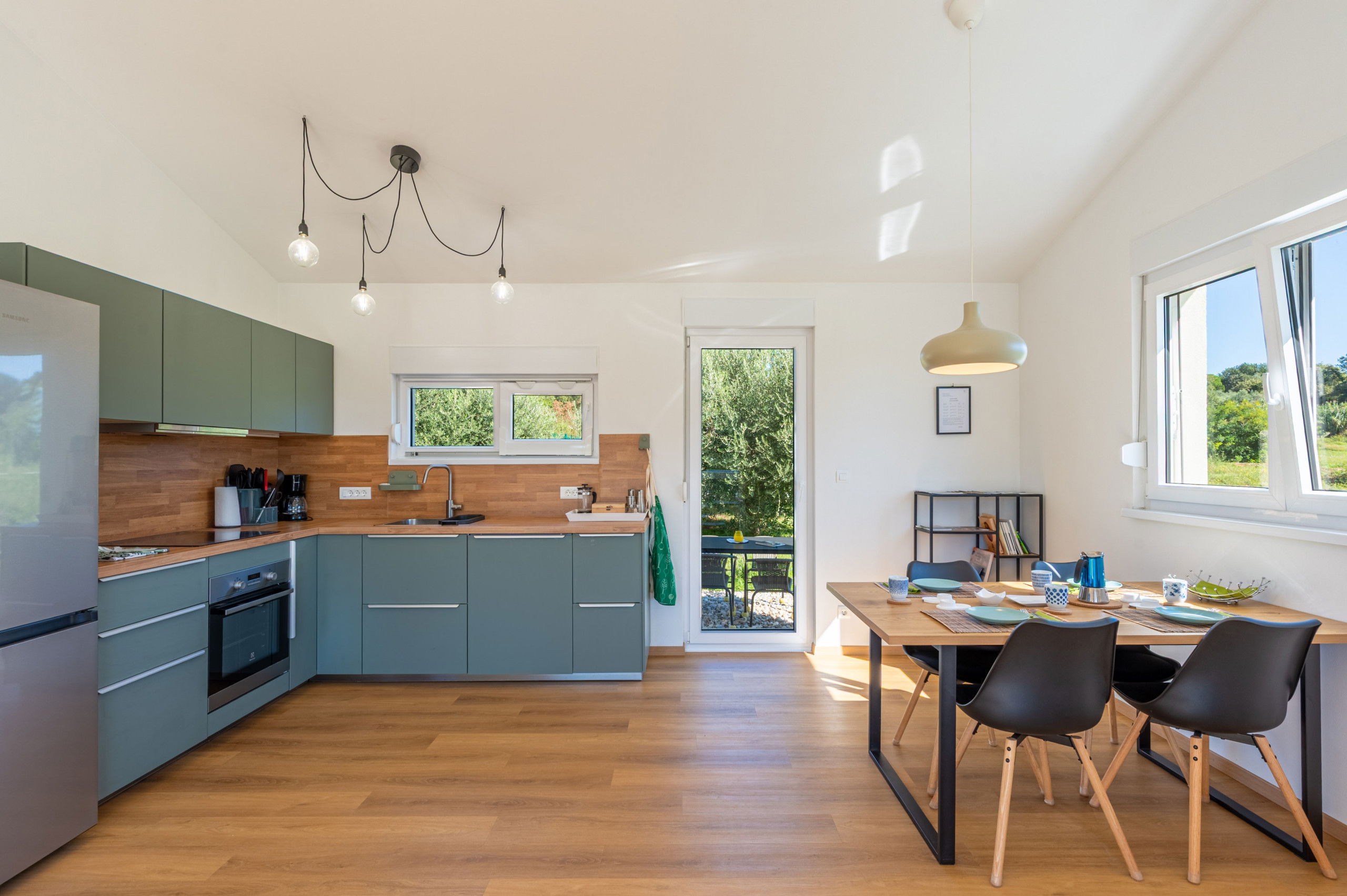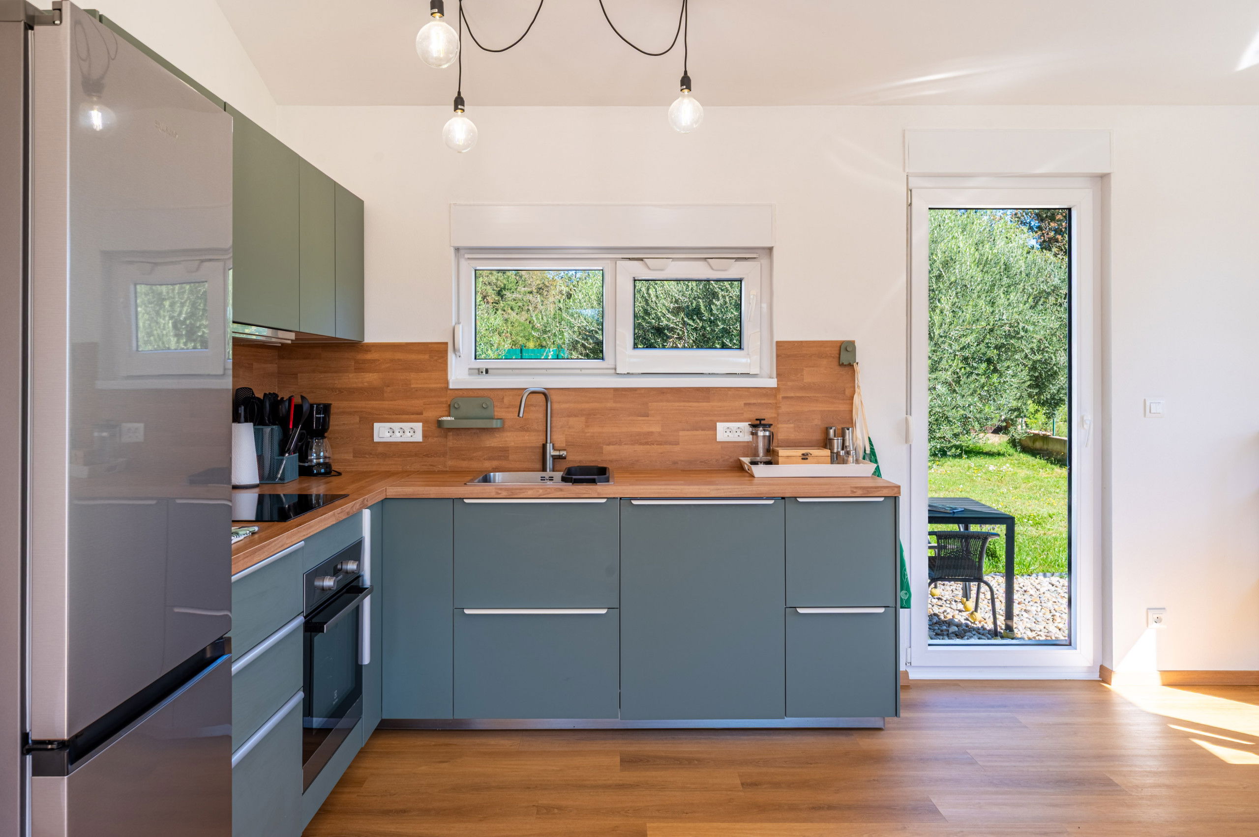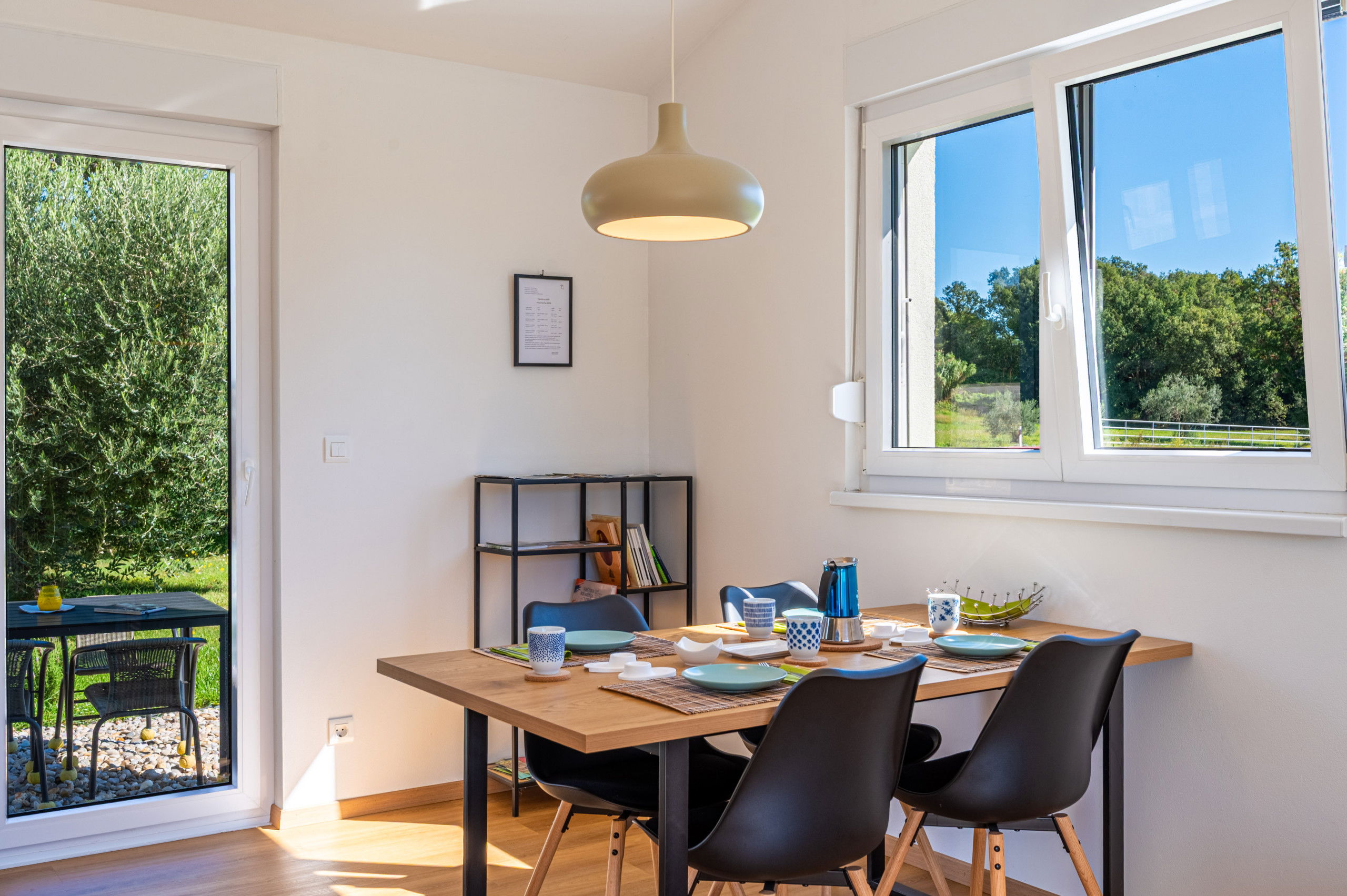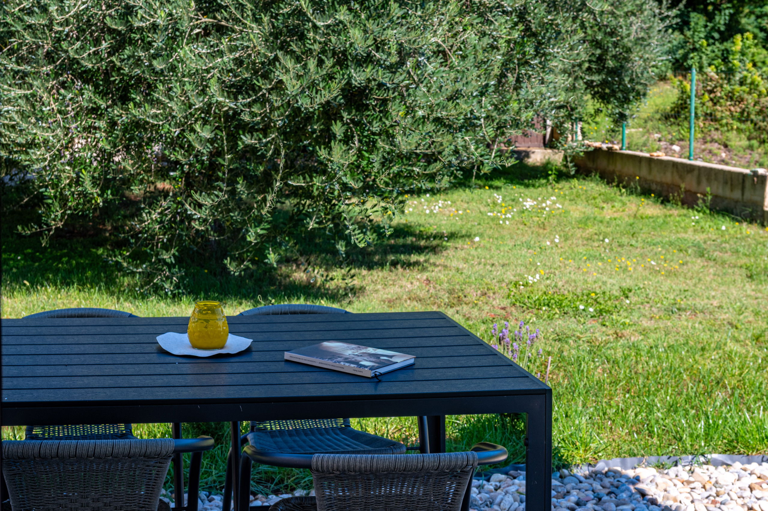 The fully fenced property covers 900 m², ensuring a safe stay for your pets, and up to two four-legged friends are welcome. Pet fee is paid in cash upon arrival (10 EUR per night per pet).