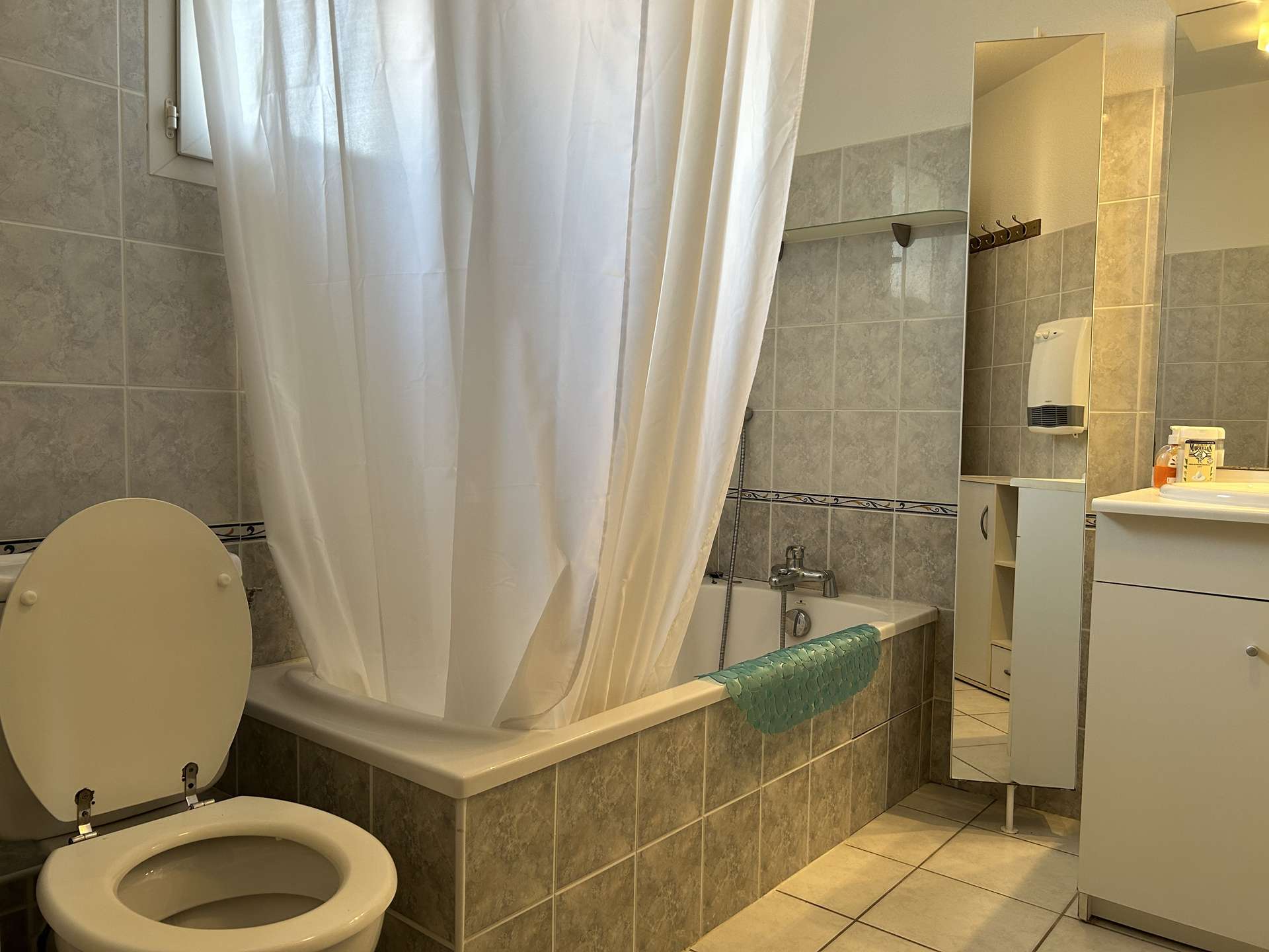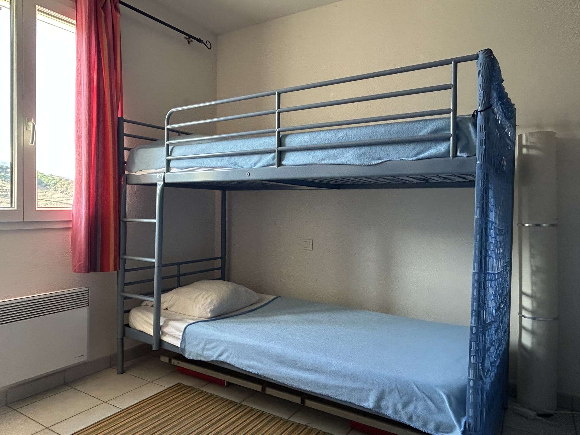Dans le quartier paisible du Puig del Mas, à seulement trois minutes du centre-ville et de la plage en voiture, cette belle maison familiale de trois niveaux séduit par son confort et ses prestations. Au rez-de-chaussée, elle dispose d’une chambre avec lit double, d’une salle d’eau avec WC ainsi que d’un espace garage-buanderie. Le premier étage accueille une cuisine indépendante entièrement équipée et un salon-séjour lumineux qui s’ouvre sur deux terrasses, complété par un WC séparé. Enfin, à l’étage supérieur, vous trouverez une chambre avec un lit double (160x200 cm), une seconde chambre équipée de lits superposés adaptés aux enfants, ainsi qu’une salle de bain avec WC. Animaux non autorisés. Le ménage de fin de séjour est inclus dans la location, tandis que les draps et serviettes restent à réserver auprès de l’agence au moins dix jours avant votre arrivée. Nichée dans un quartier calme, cette maison offre un cadre idéal pour un séjour en famille, avec en prime une jolie vue sur les montagnes et les vignobles environnants.
